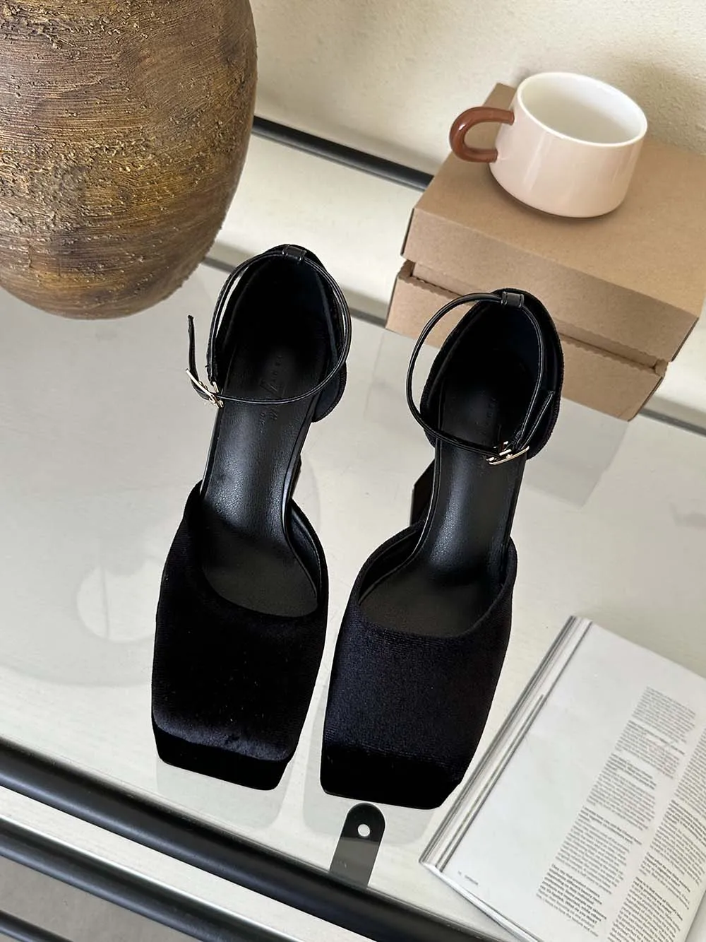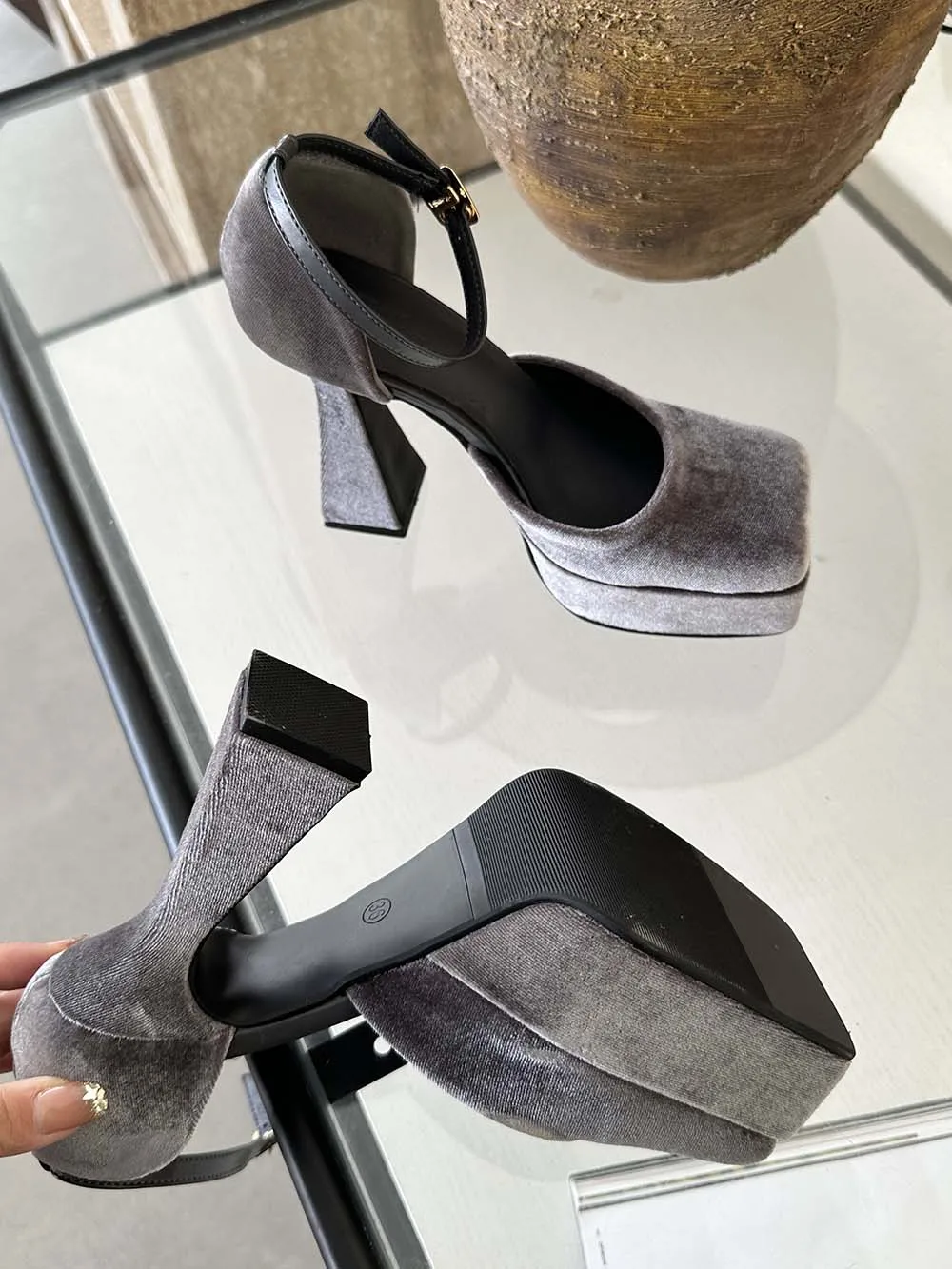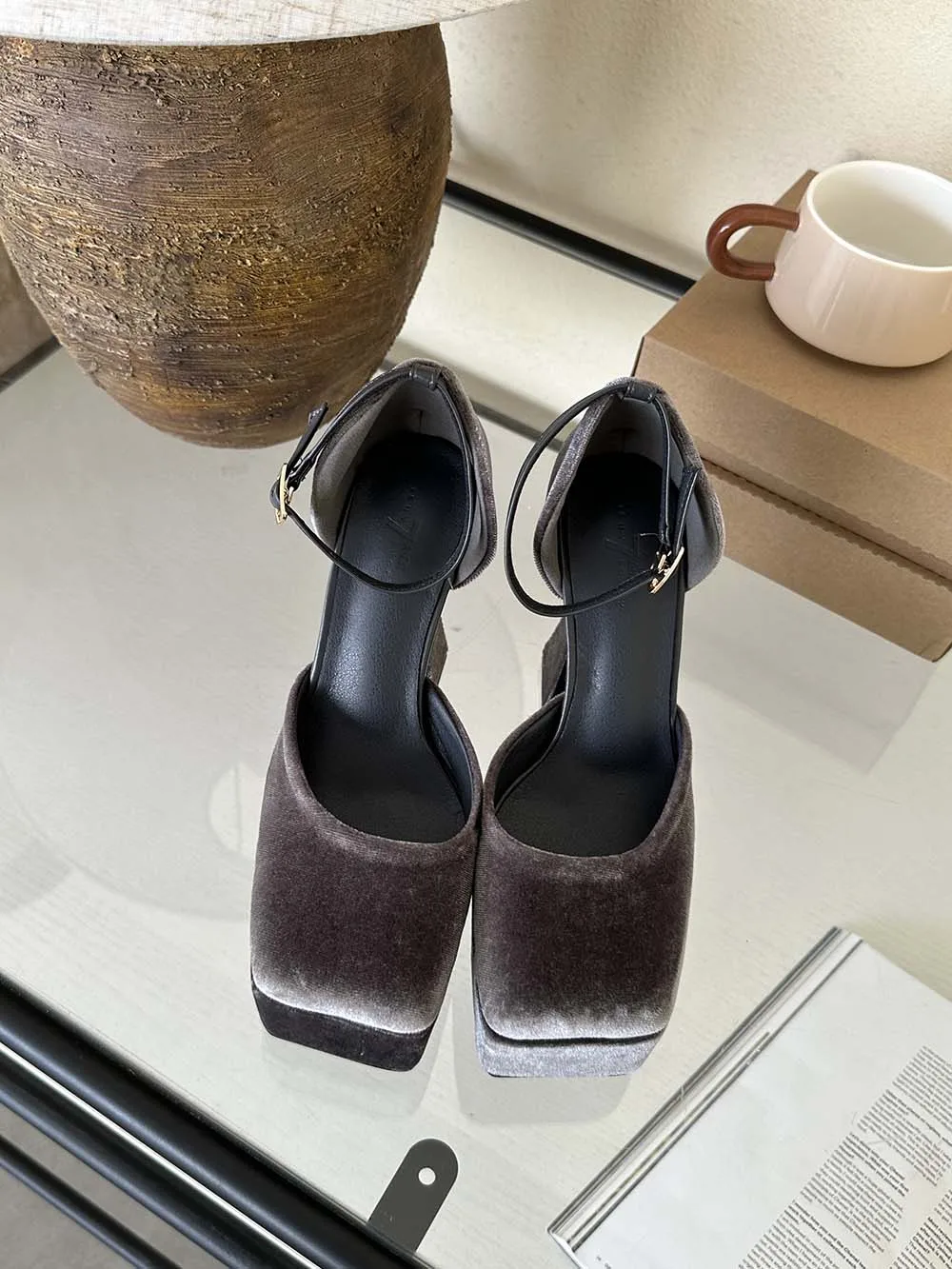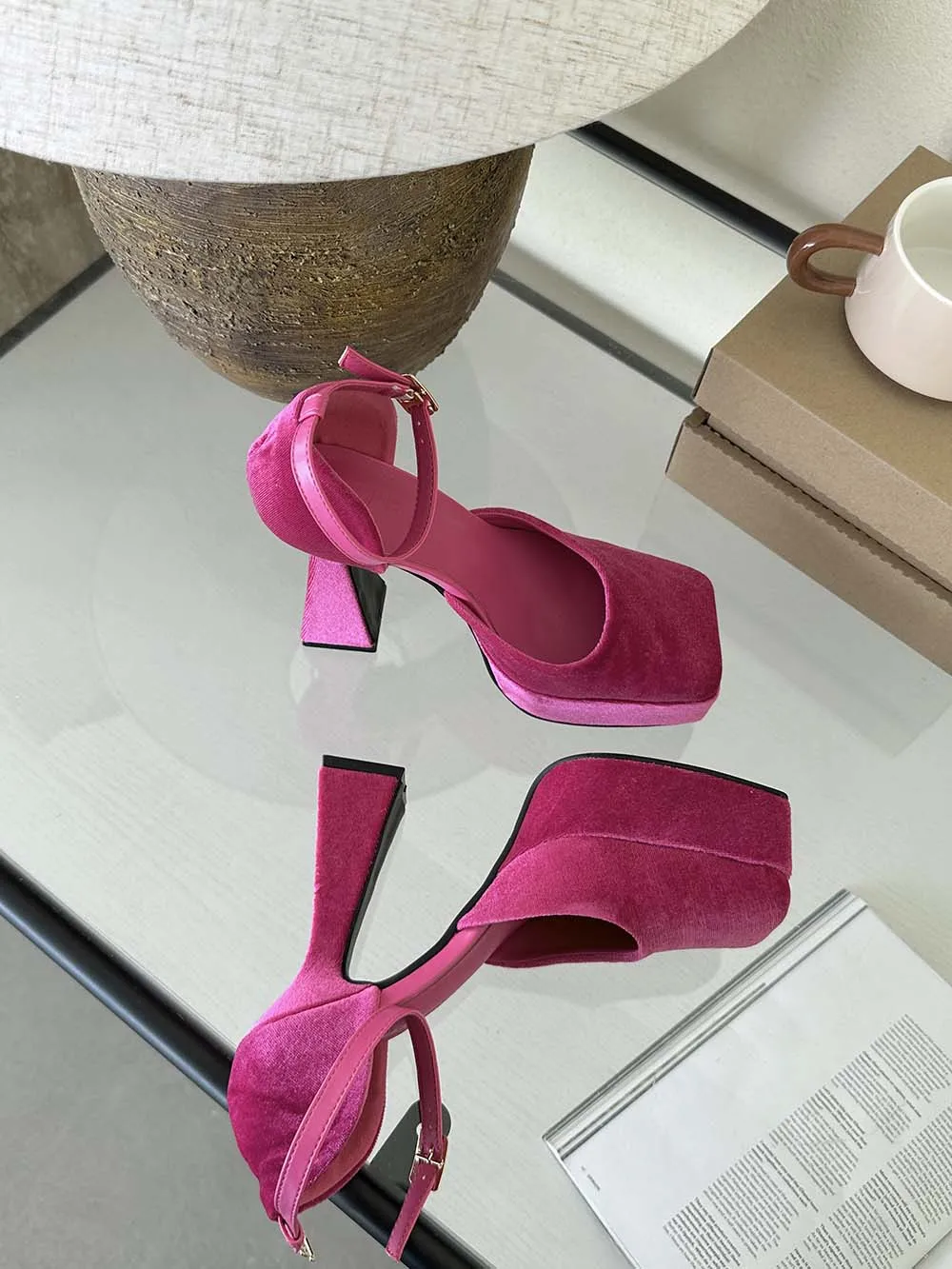 LBSFY - Square Toe Women Sandals Satin Summer Dress Shoes Wedding Pumps Thick High Heels Black Rose Grey Ankle Strap Party Pumps 35-39