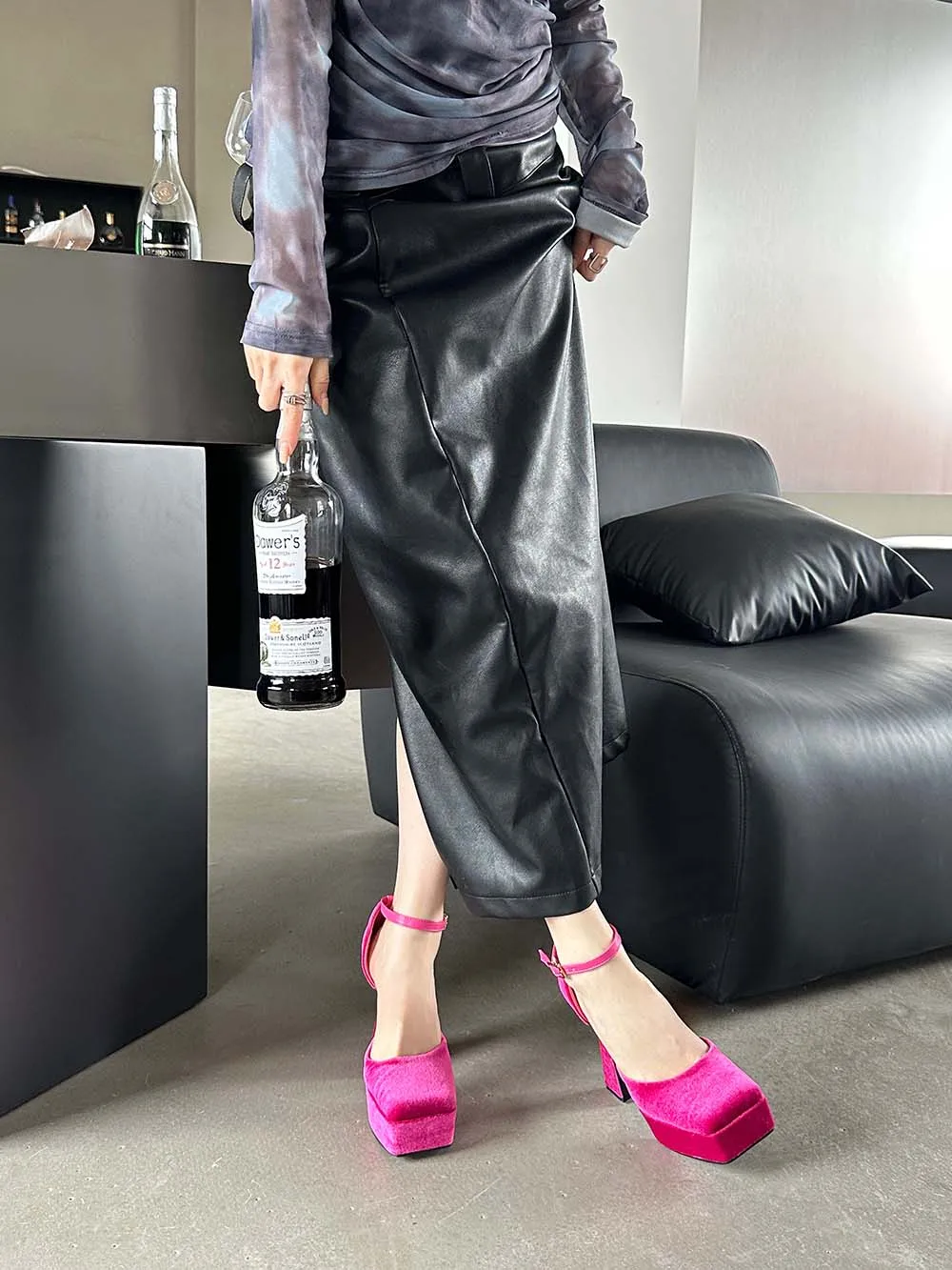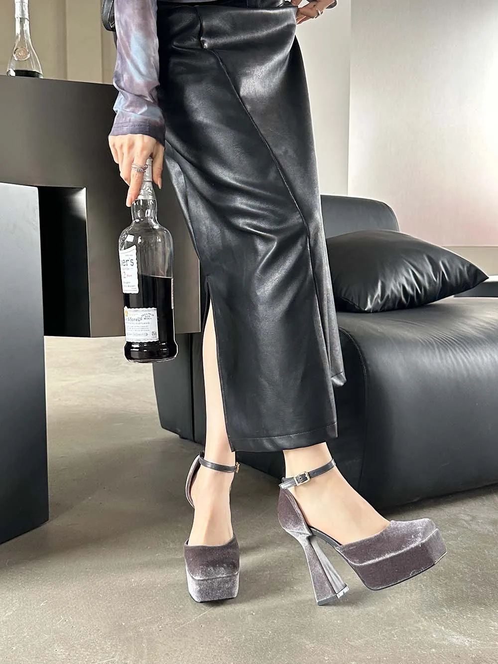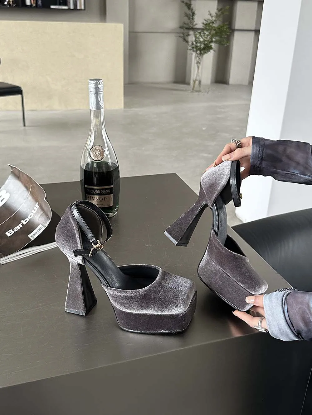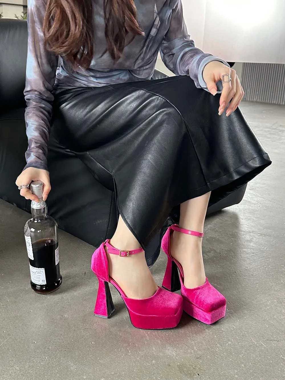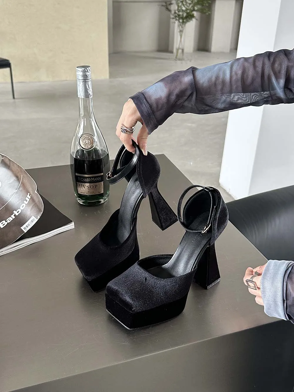 LBSFY - Square Toe Women Sandals Satin Summer Dress Shoes Wedding Pumps Thick High Heels Black Rose Grey Ankle Strap Party Pumps 35-39