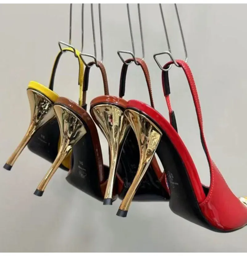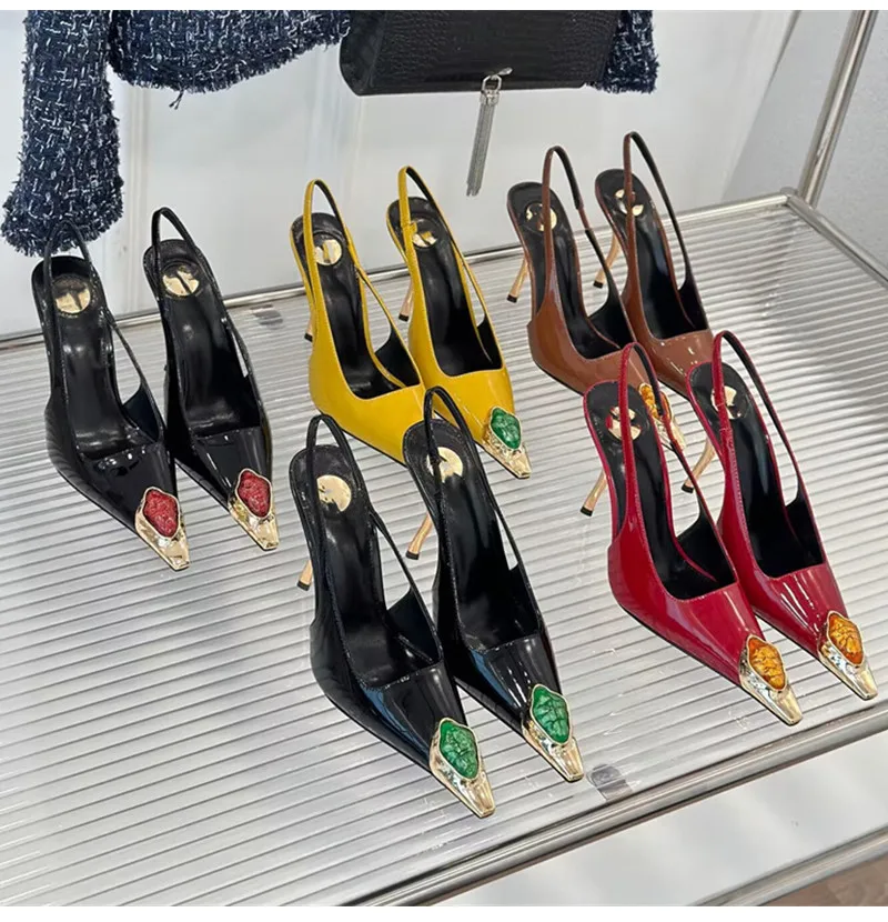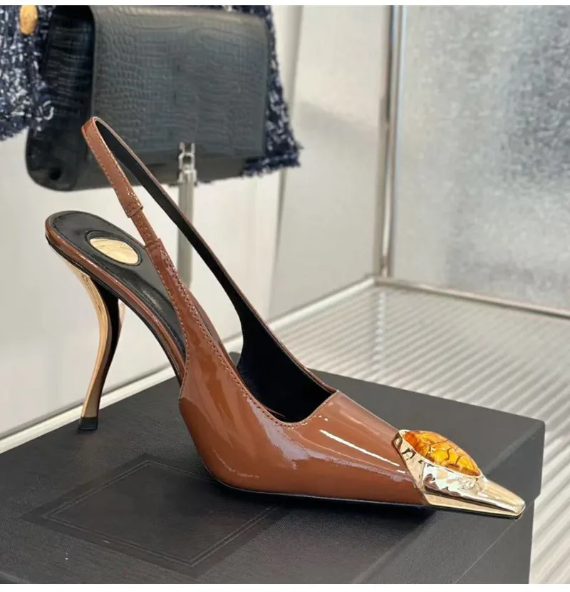 LBSFY - Star style Gemstone Metal Toe Patent Leather Women Pumps Fashion Stiletto High heels Spring Autumn Slingbacks Party Dress Shoes