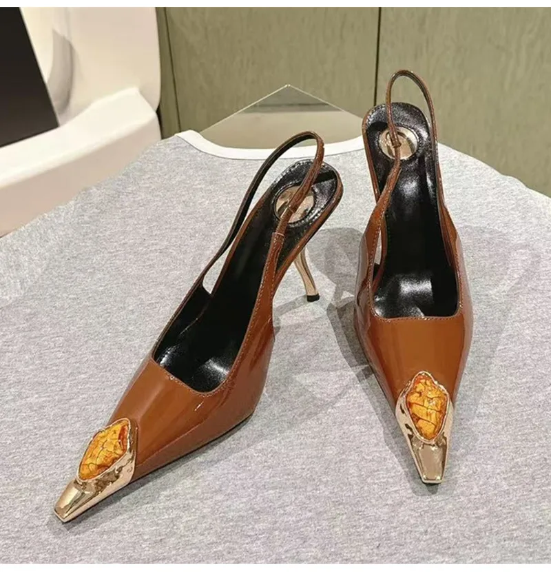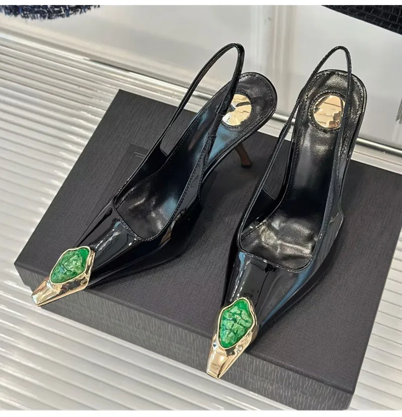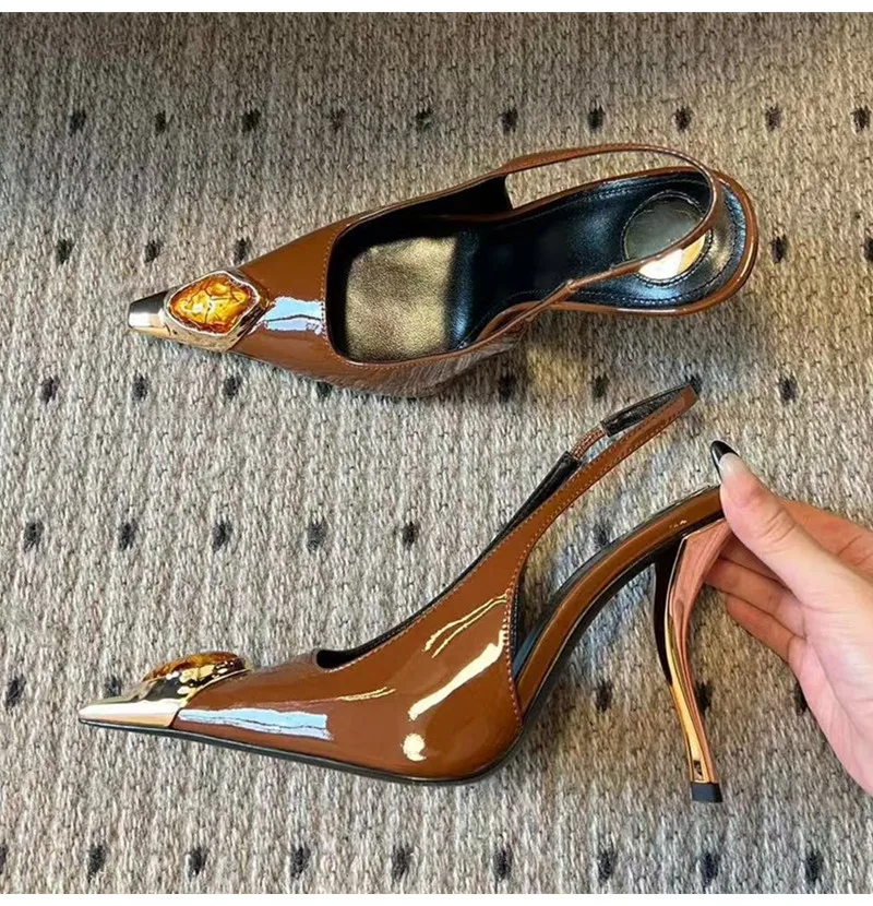 LBSFY  -  Star style Gemstone Metal Toe Patent Leather Women Pumps Fashion Stiletto High heels Spring Autumn Slingbacks Party Dress Shoes