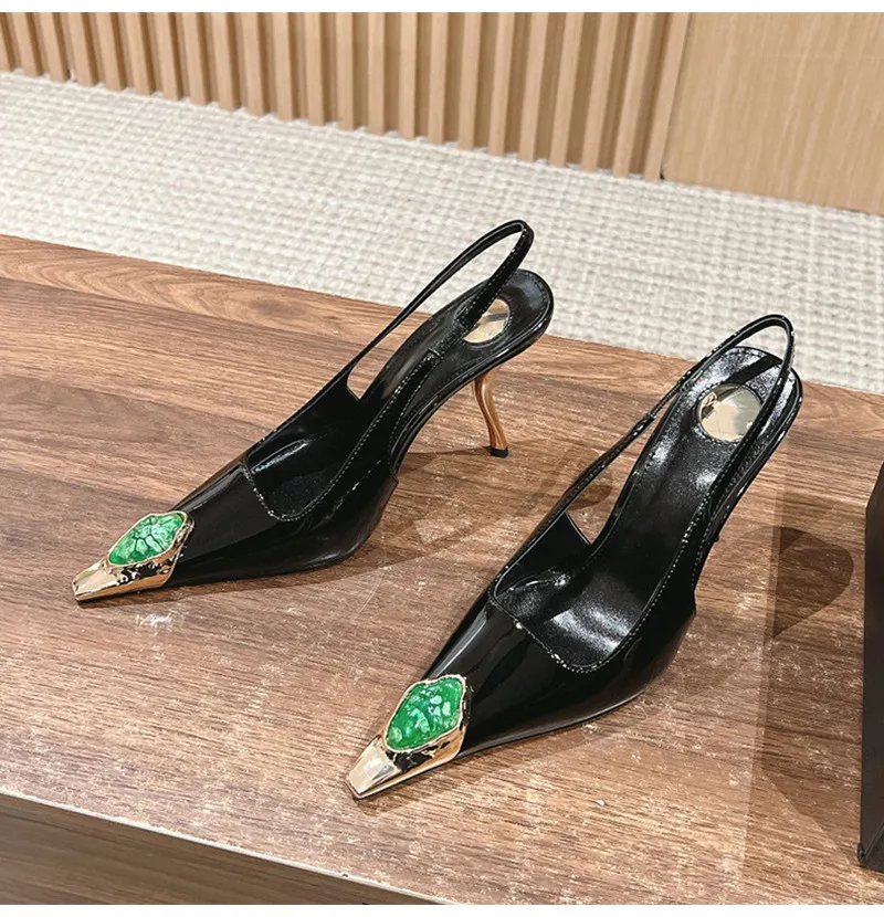 LBSFY  -  Star style Gemstone Metal Toe Patent Leather Women Pumps Fashion Stiletto High heels Spring Autumn Slingbacks Party Dress Shoes
