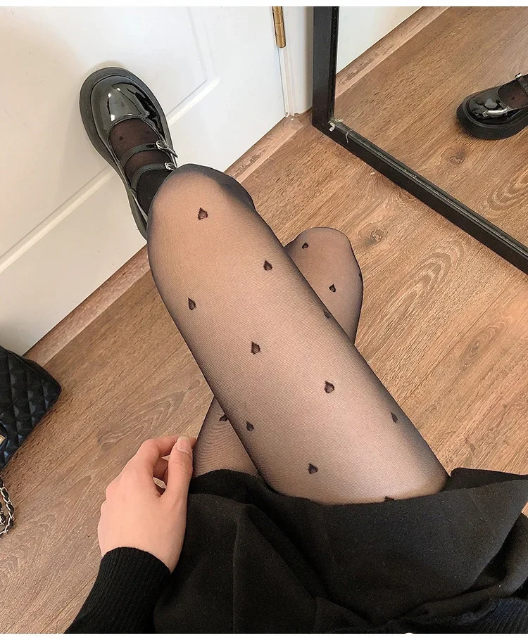 Lbsfy Stockings Woman Spring/Summer Thin Lolita Pantyhose Tights Black Love Dot Sexy Lingeries for Woman
