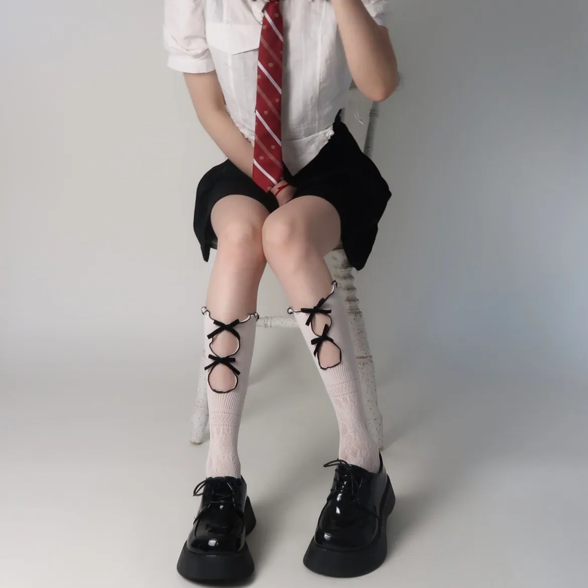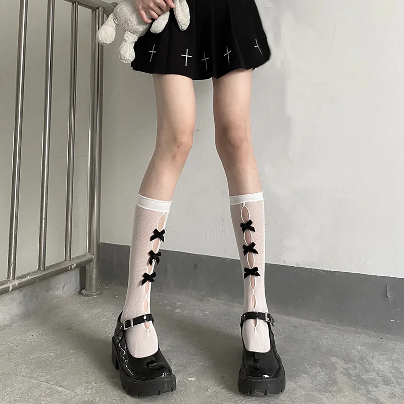 Lbsfy Stockings Woman Summer Bowknot Hollow Cute Lolita Socks Medium Length Black/White Stockings Women Lingerie