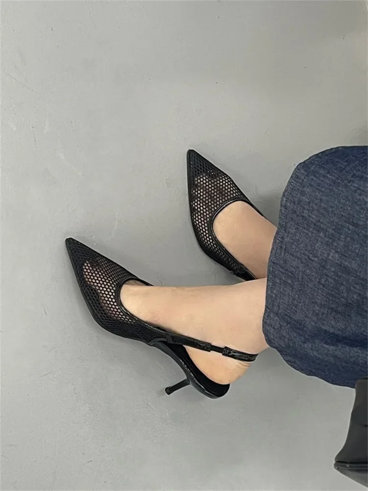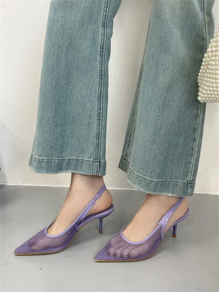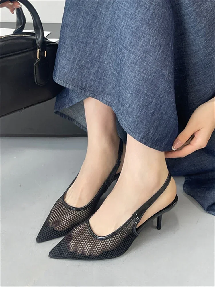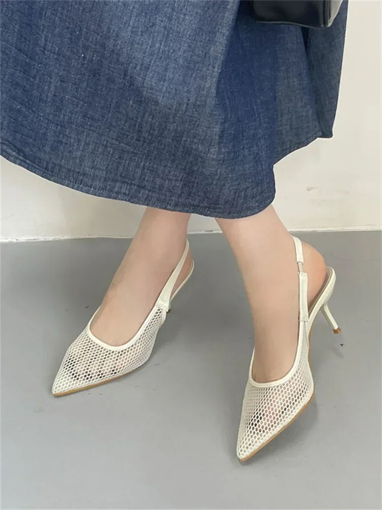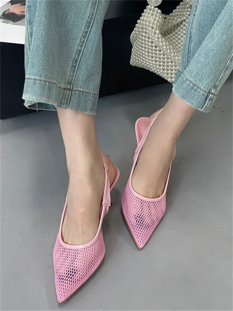 LBSFY -Summer Breathable Mesh Pointed Toe Women Pumps Elegant Slingbacks Thin Low Heels Party Dress Shoes BIG SZIE 43