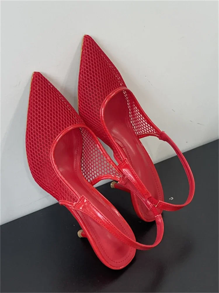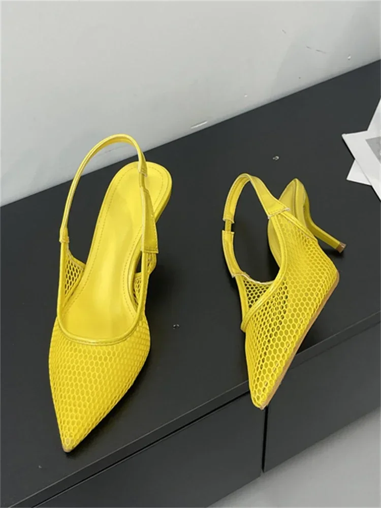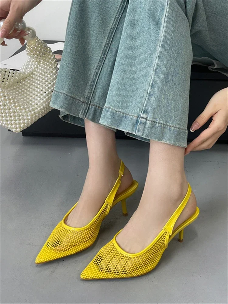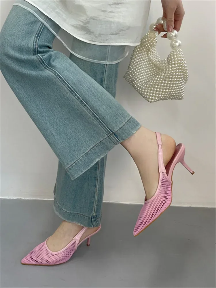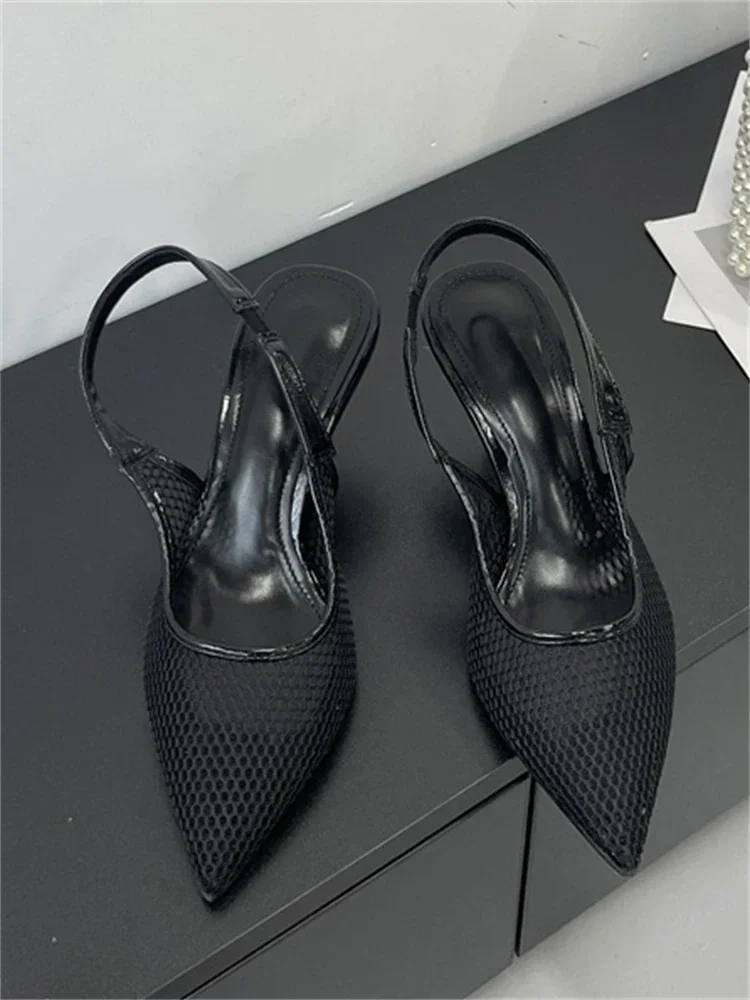 LBSFY -Summer Breathable Mesh Pointed Toe Women Pumps Elegant Slingbacks Thin Low Heels Party Dress Shoes BIG SZIE 43