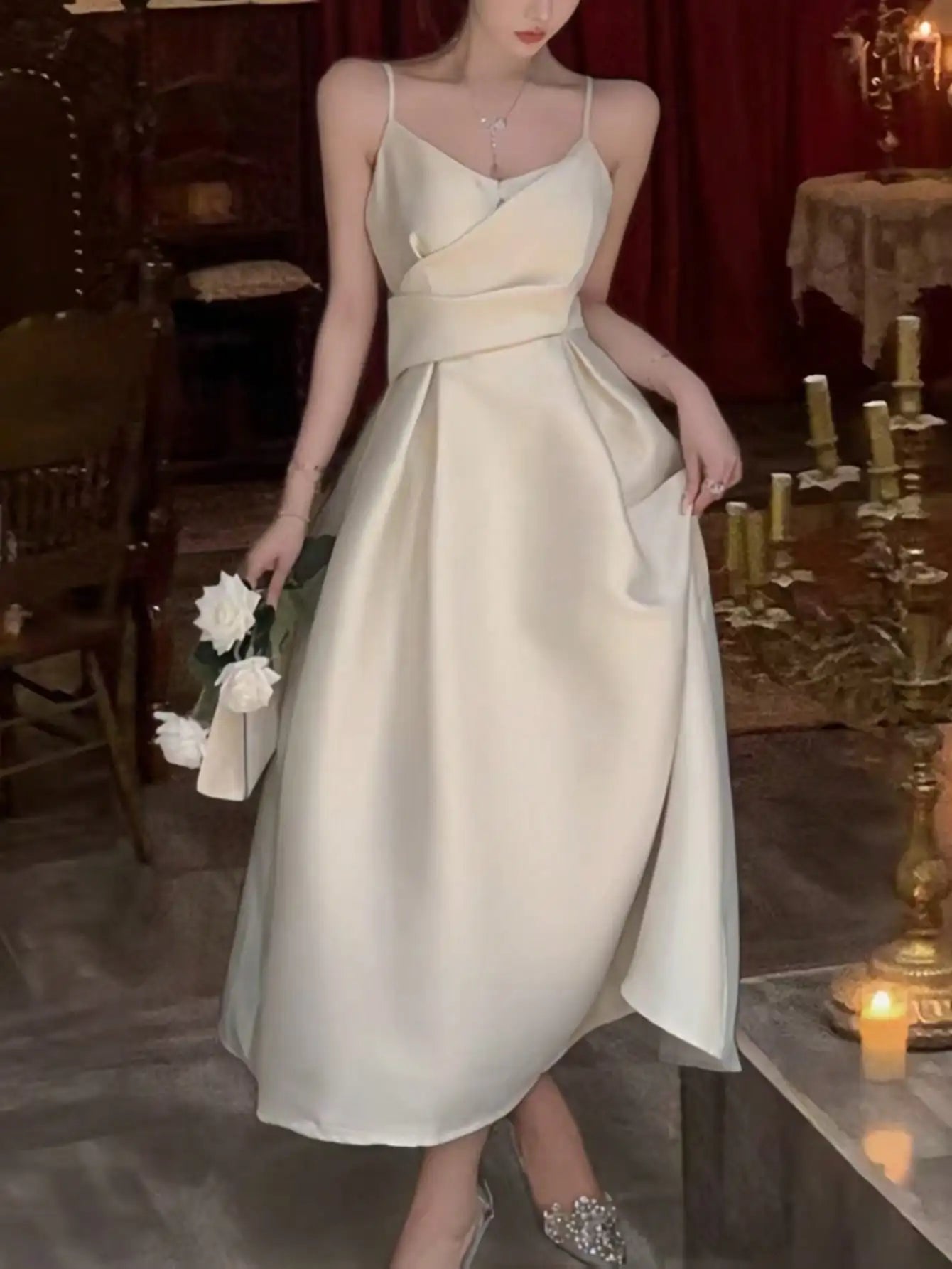 LBSFY -Summer Chic Solid Folds Elegant French Evening Party Dress Women Strap Corset Wedding Graduation Dresses 2025 Backless Vestidos