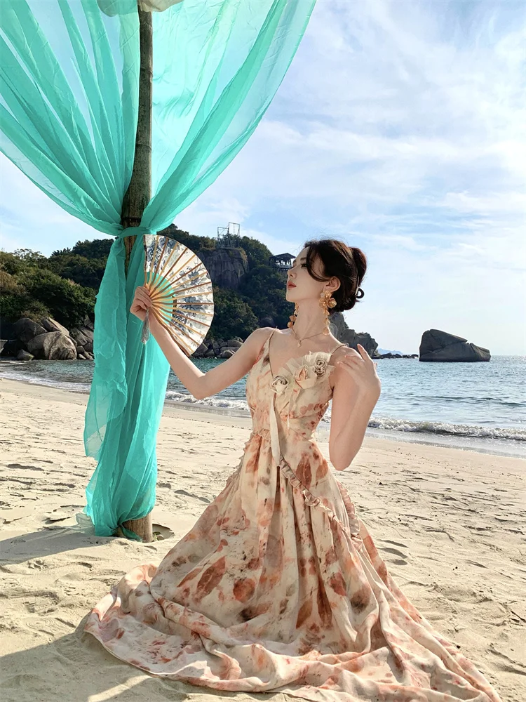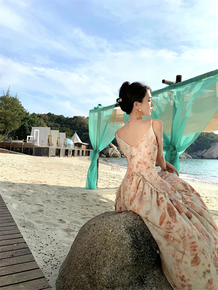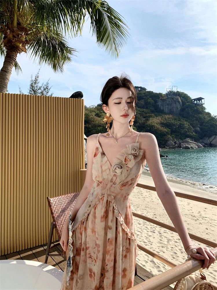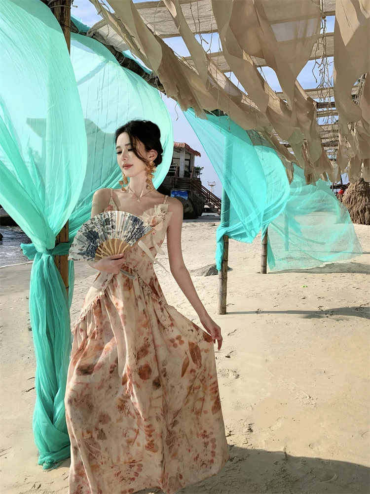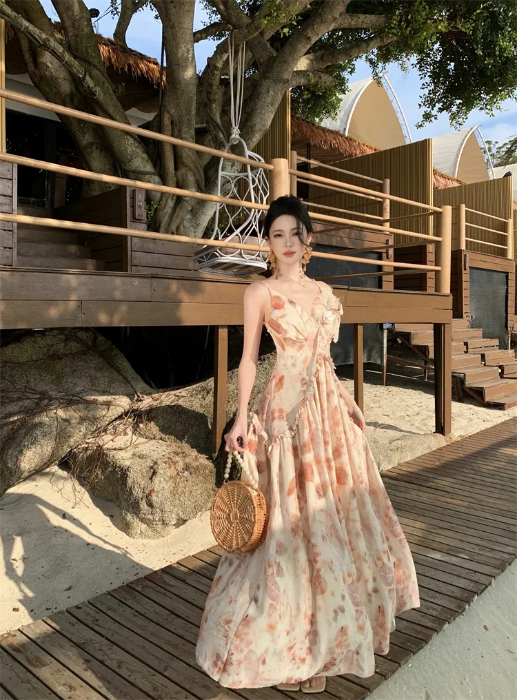 LBSFY -Summer Elegant Vintage Fashion Print Long Women's Dresses 2025 New French Party V-Neck Dress Casual Holiday Beach Fairy Vestidos