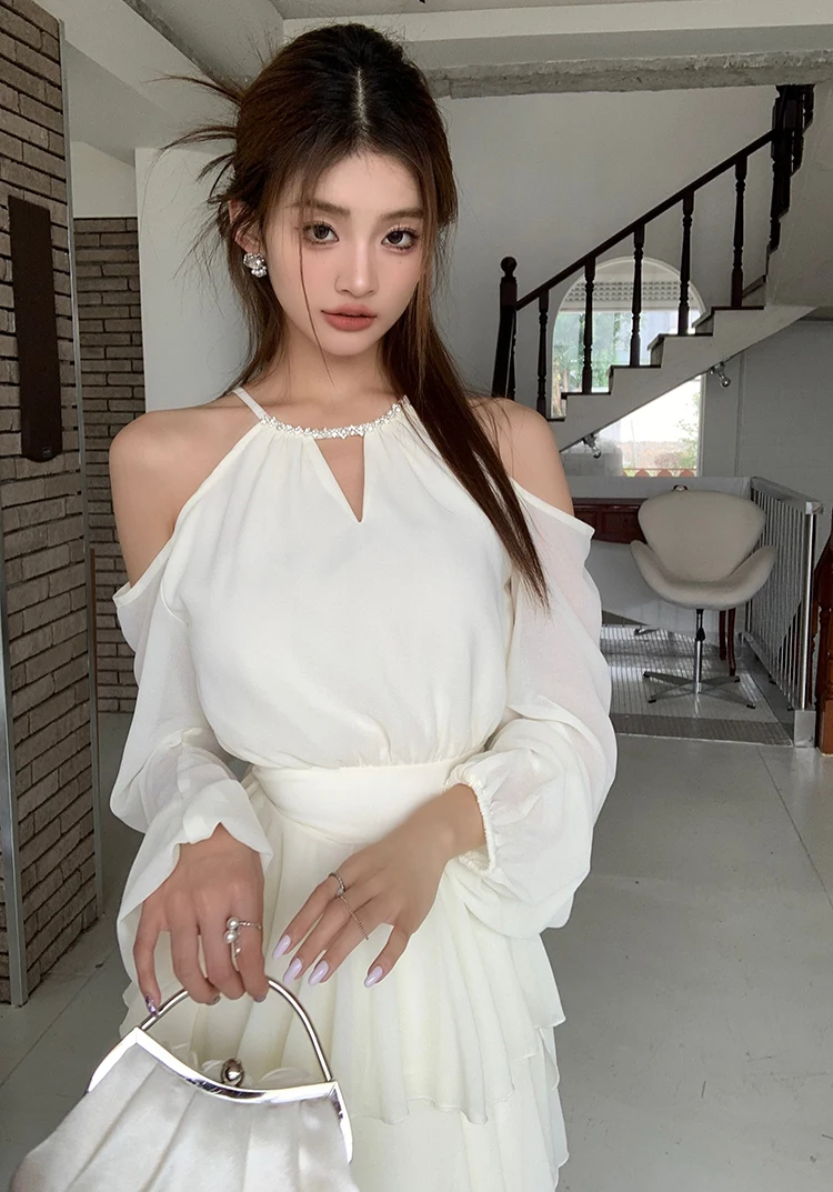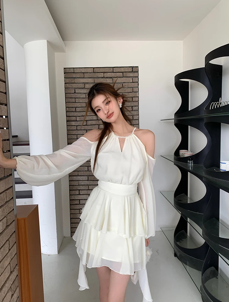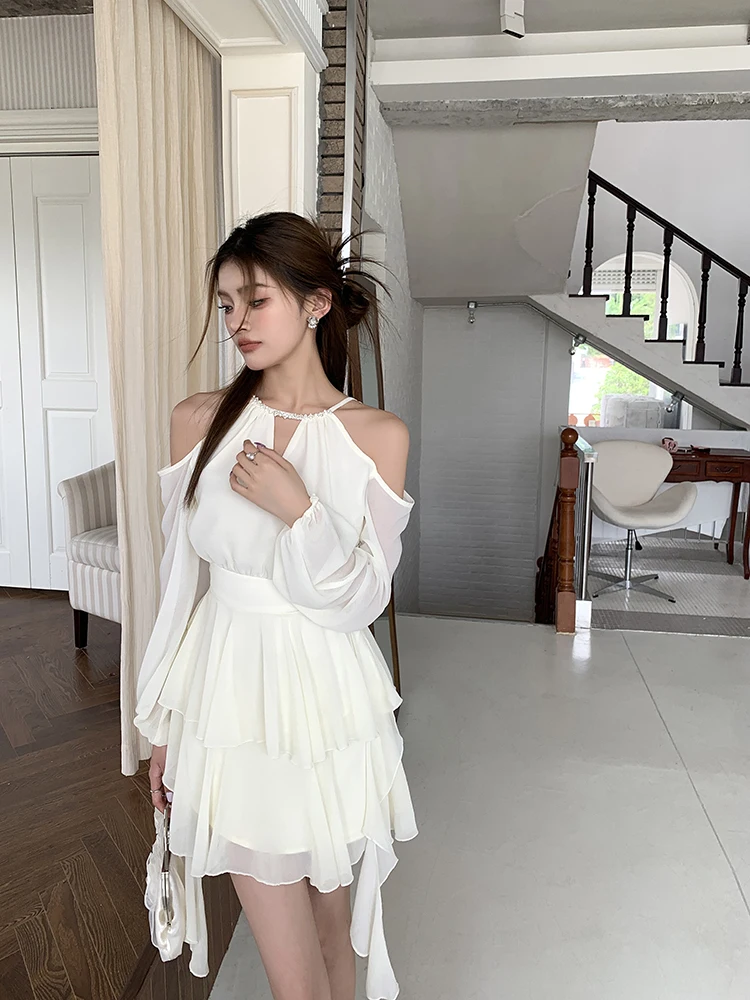 LBSFY -Summer Fairy Elegant Fashion Mini Dresses For Woman New Off Shoulder Sling Halter Tassel Party Dress French Hollow Vestidos