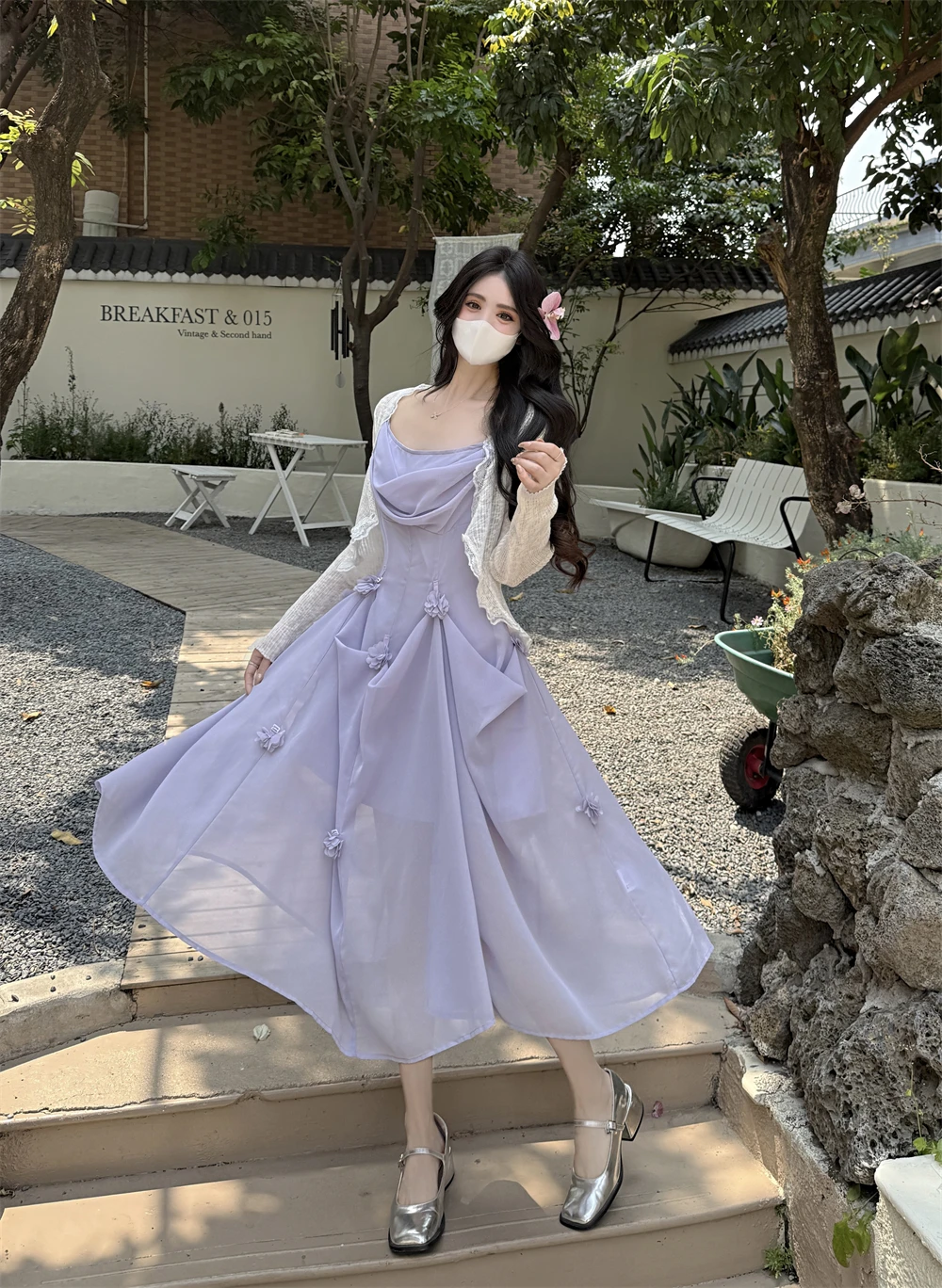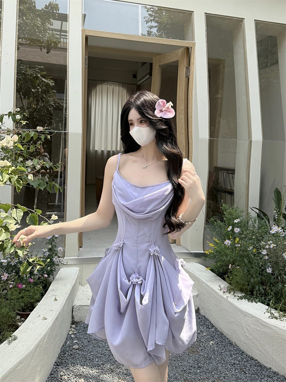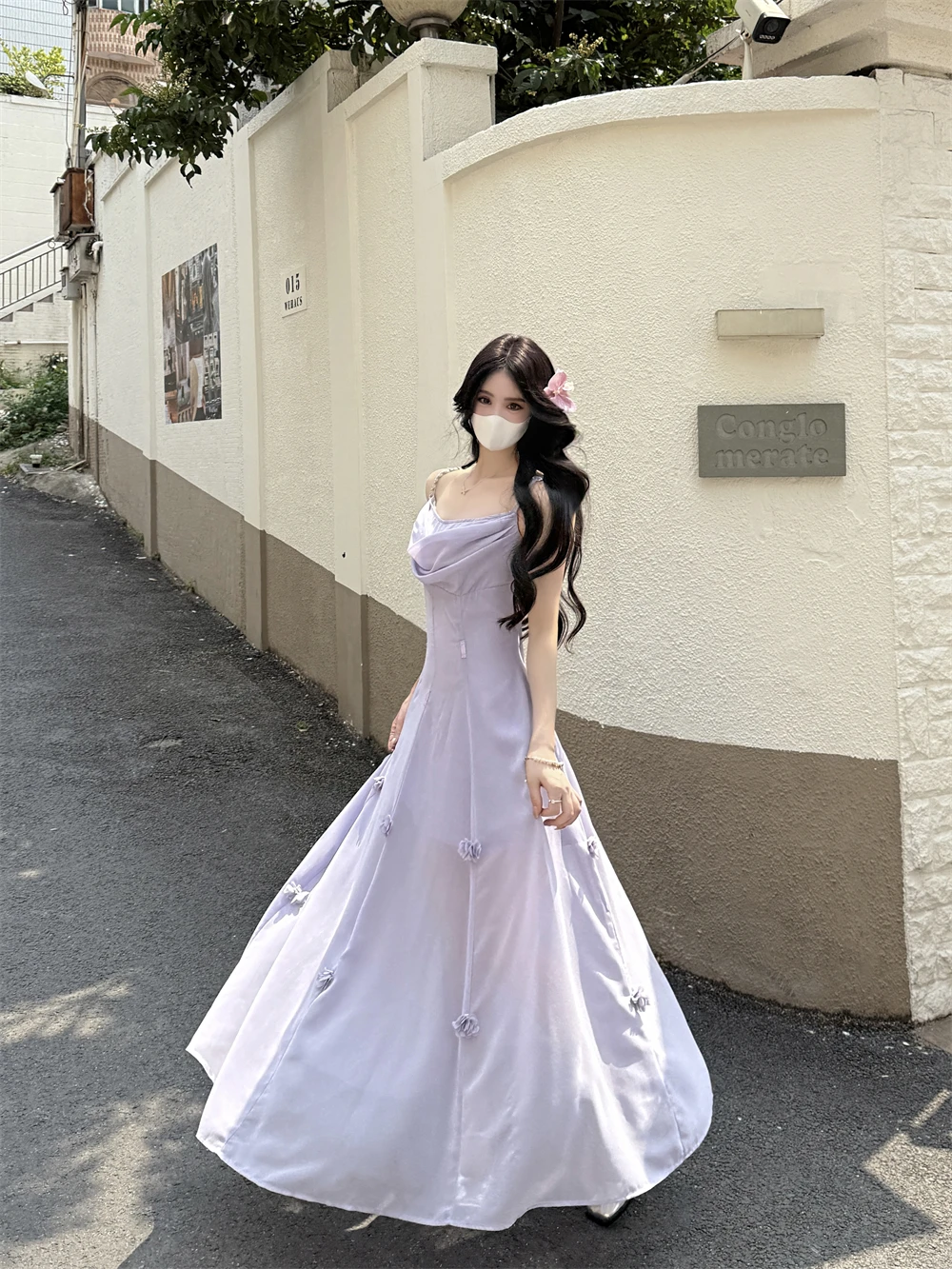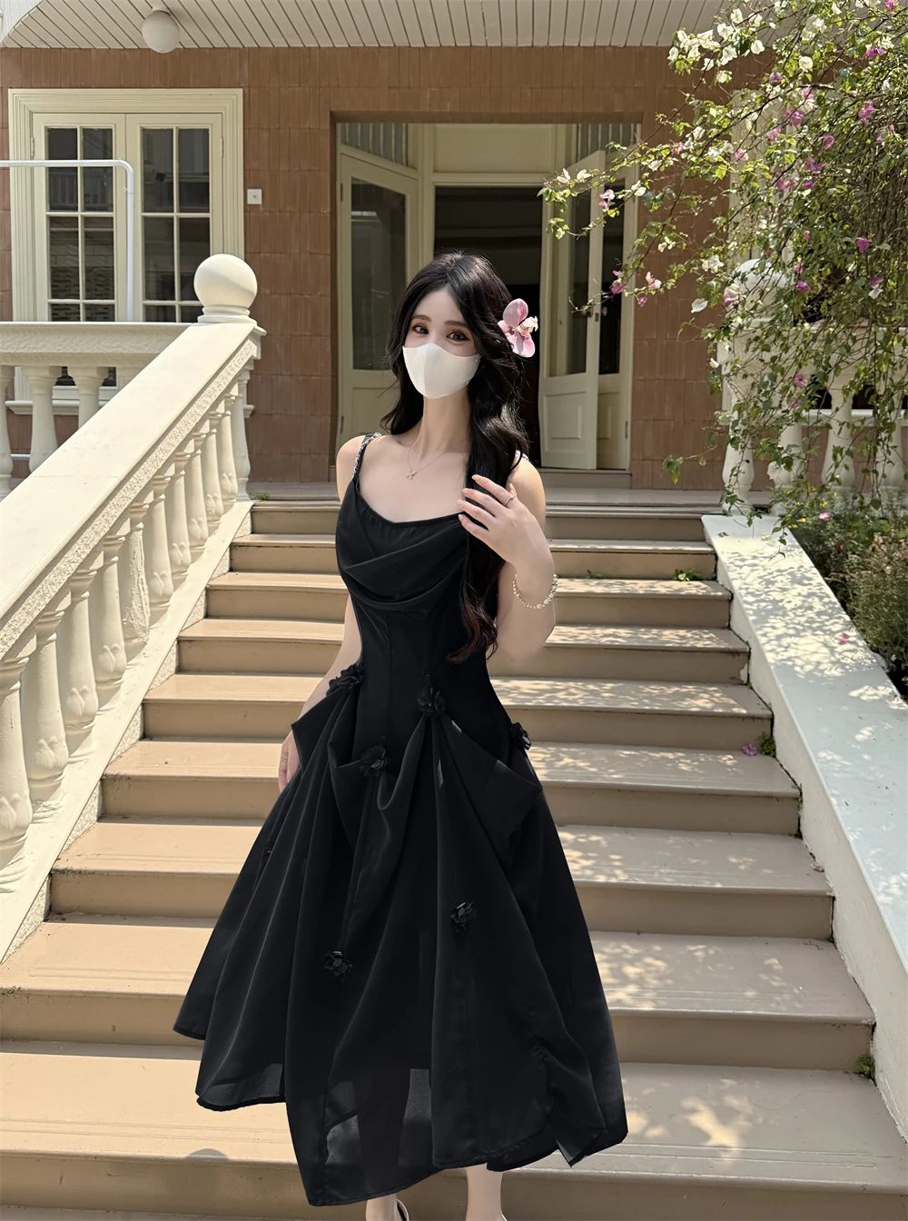 LBSFY -Summer Fairycon Korean Floral Long Womens Dresses New Fashion Slim Waist Spaghetti Strap Party Dress 2025 Holiday Vacation Robe