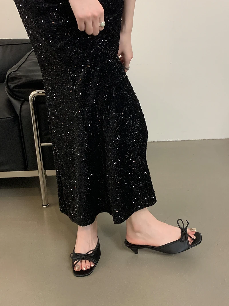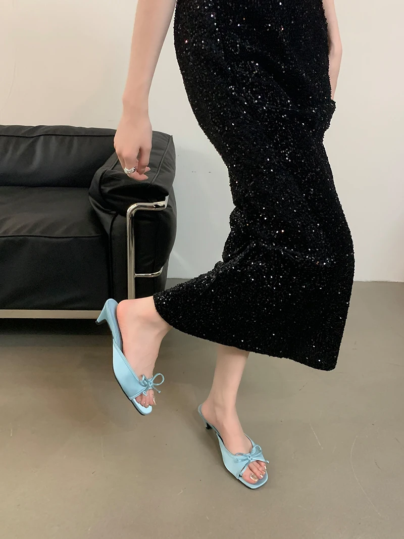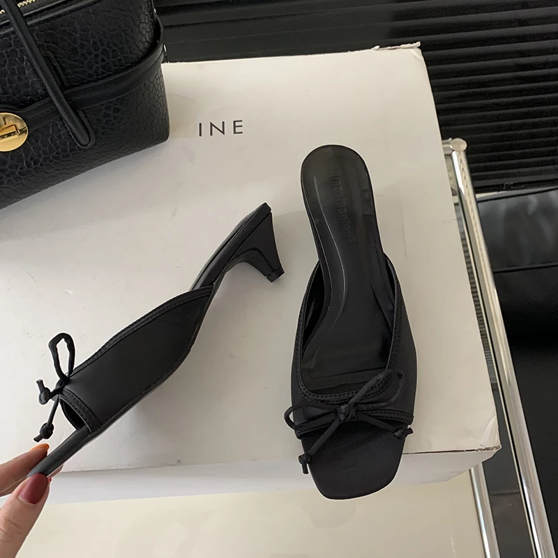 LBSFY -Summer Fashion Butterfly-knot Women Slipper Slip On Ladies Sandal Thin High Heel Outdoor Dress Slides Shoes Flip Flop