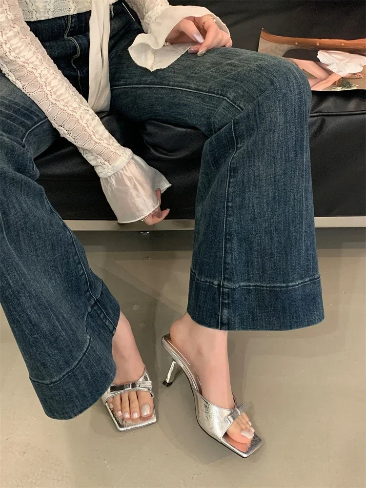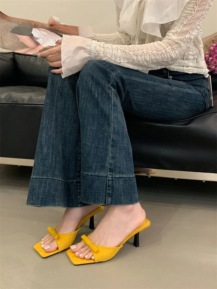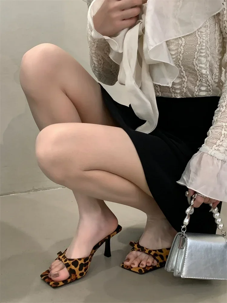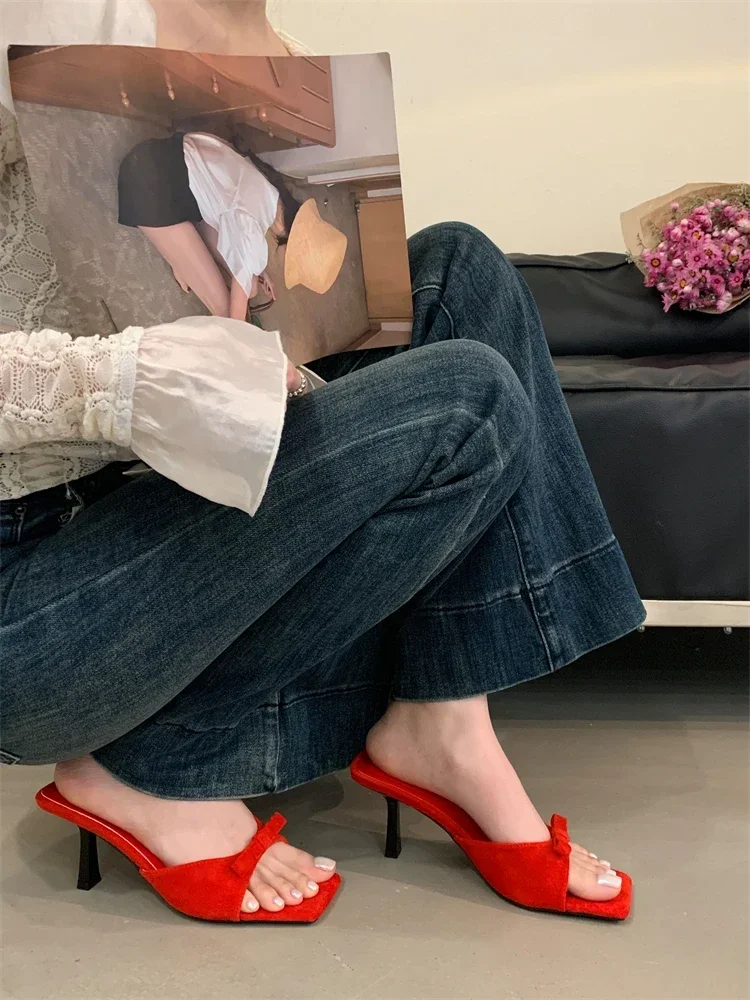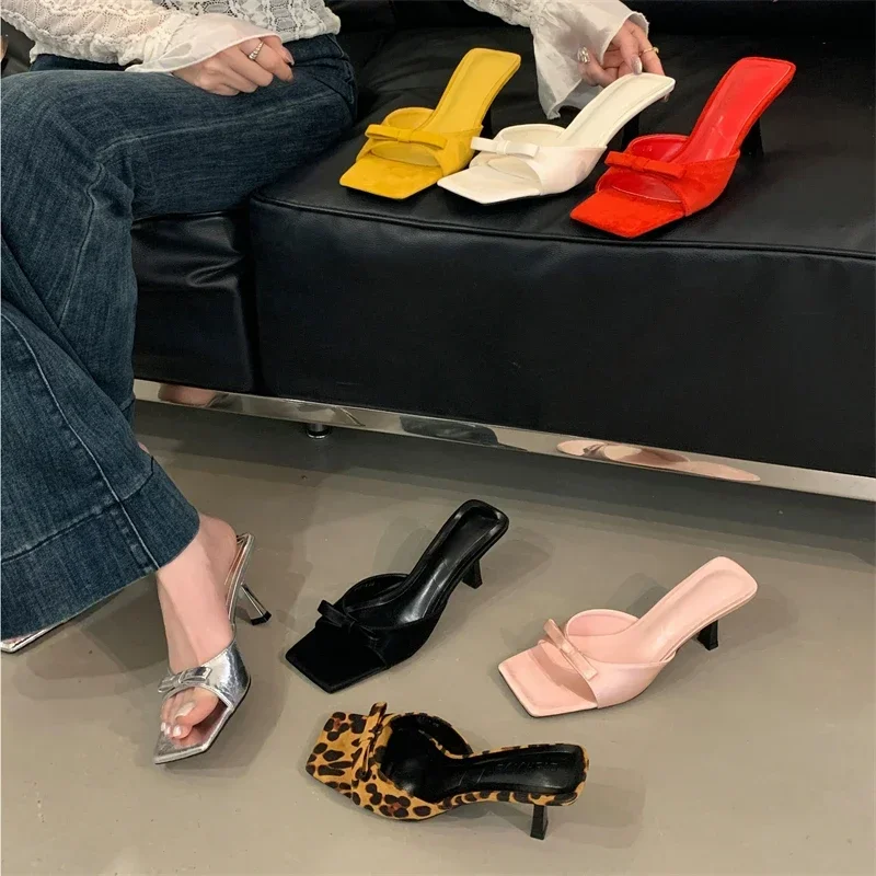 LBSFY -Summer Fashion Butterfly-kont Women Slippers Square Toe Thin Low Heels Banquet Slides Female Shoes Zapatos De Mujer