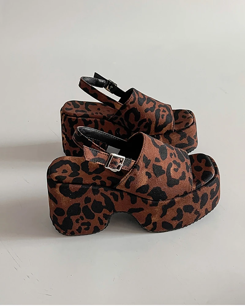 LBSFY -Summer Fashion Leopard Print Open Toe Sandals Women Punk Style Platform Wedges Heels Party Shoes