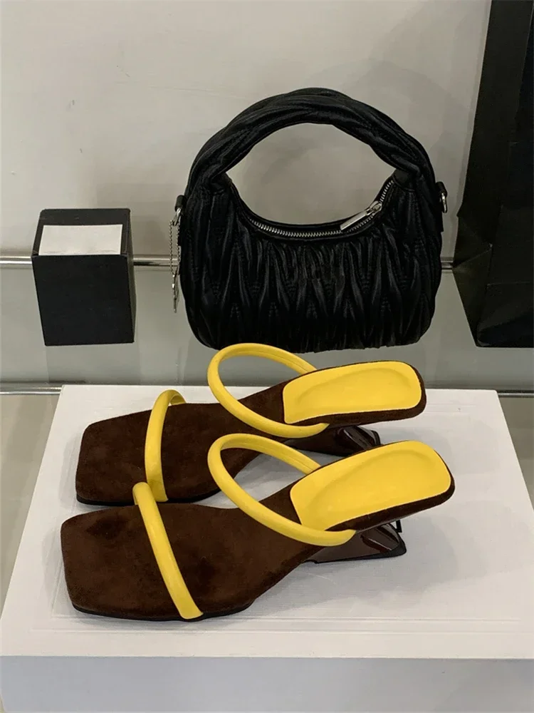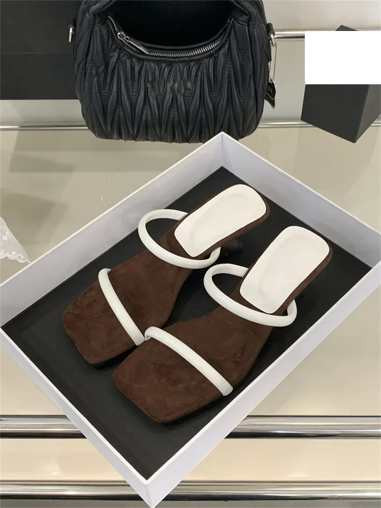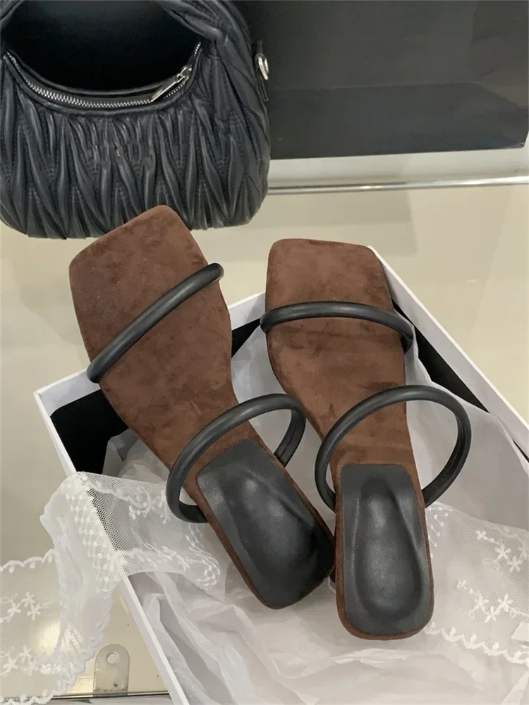 LBSFY -Summer Fashion Square Toe Woman Slippers Pumps Design Narrow Band Strange Low Heels Female Shoes Zapatos De Mujer