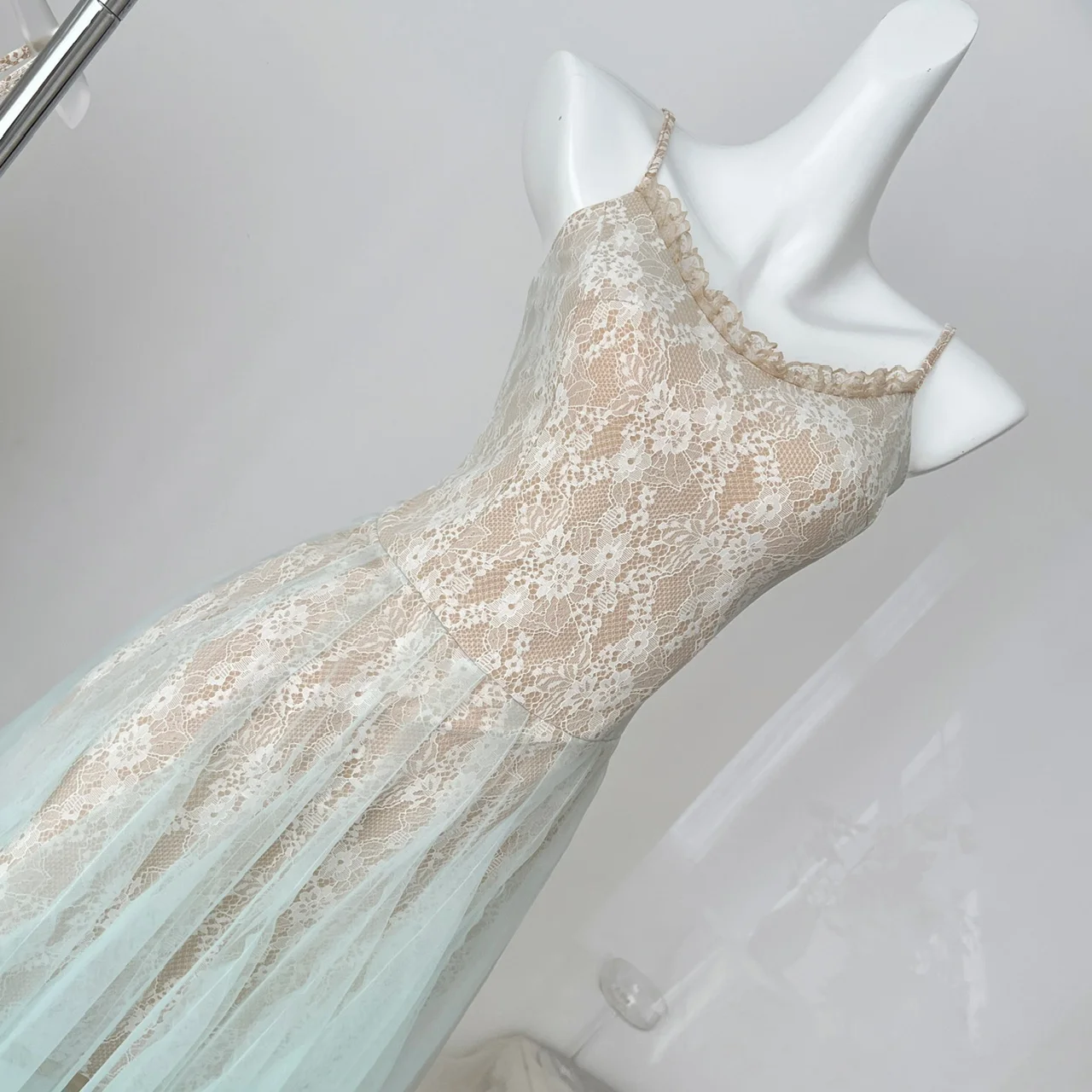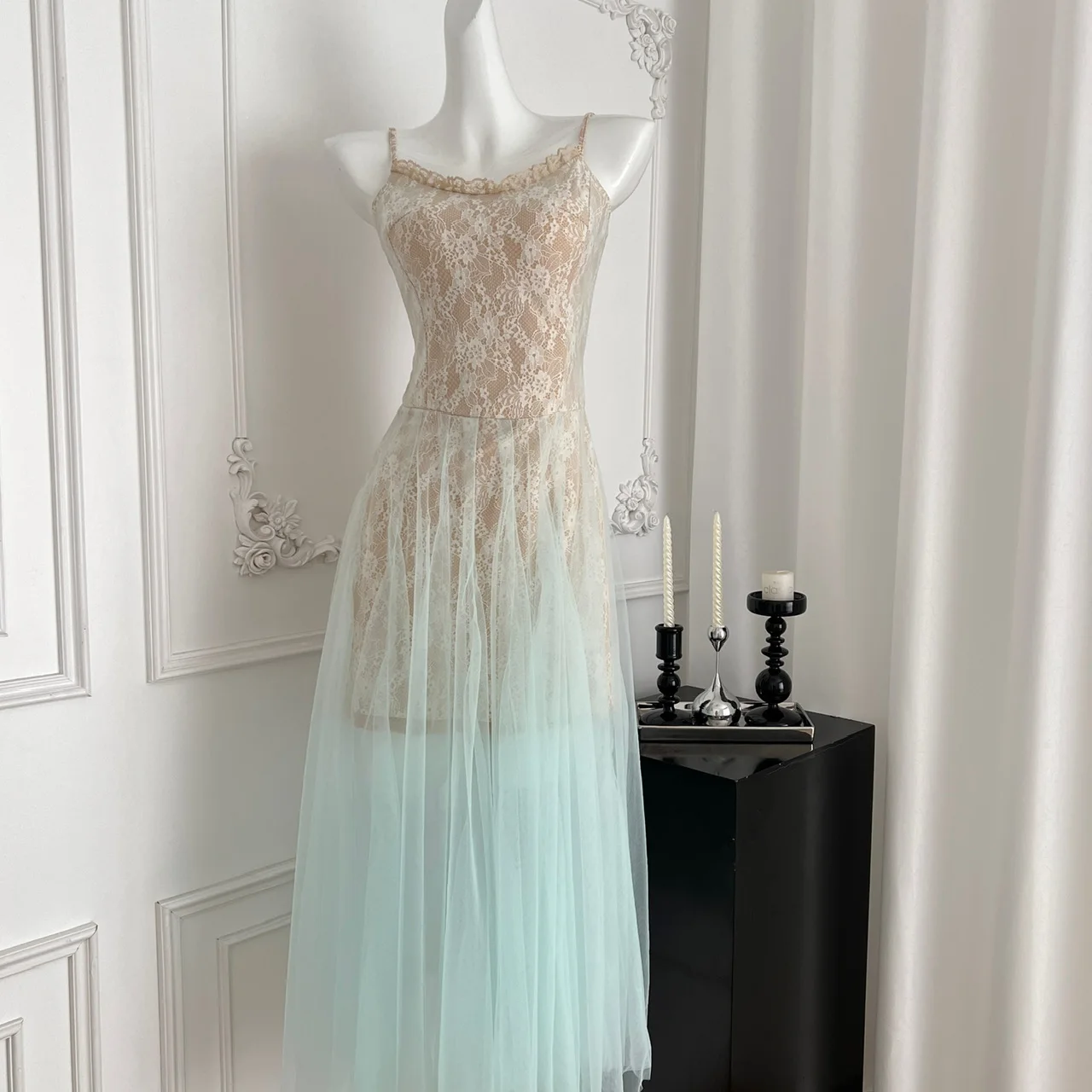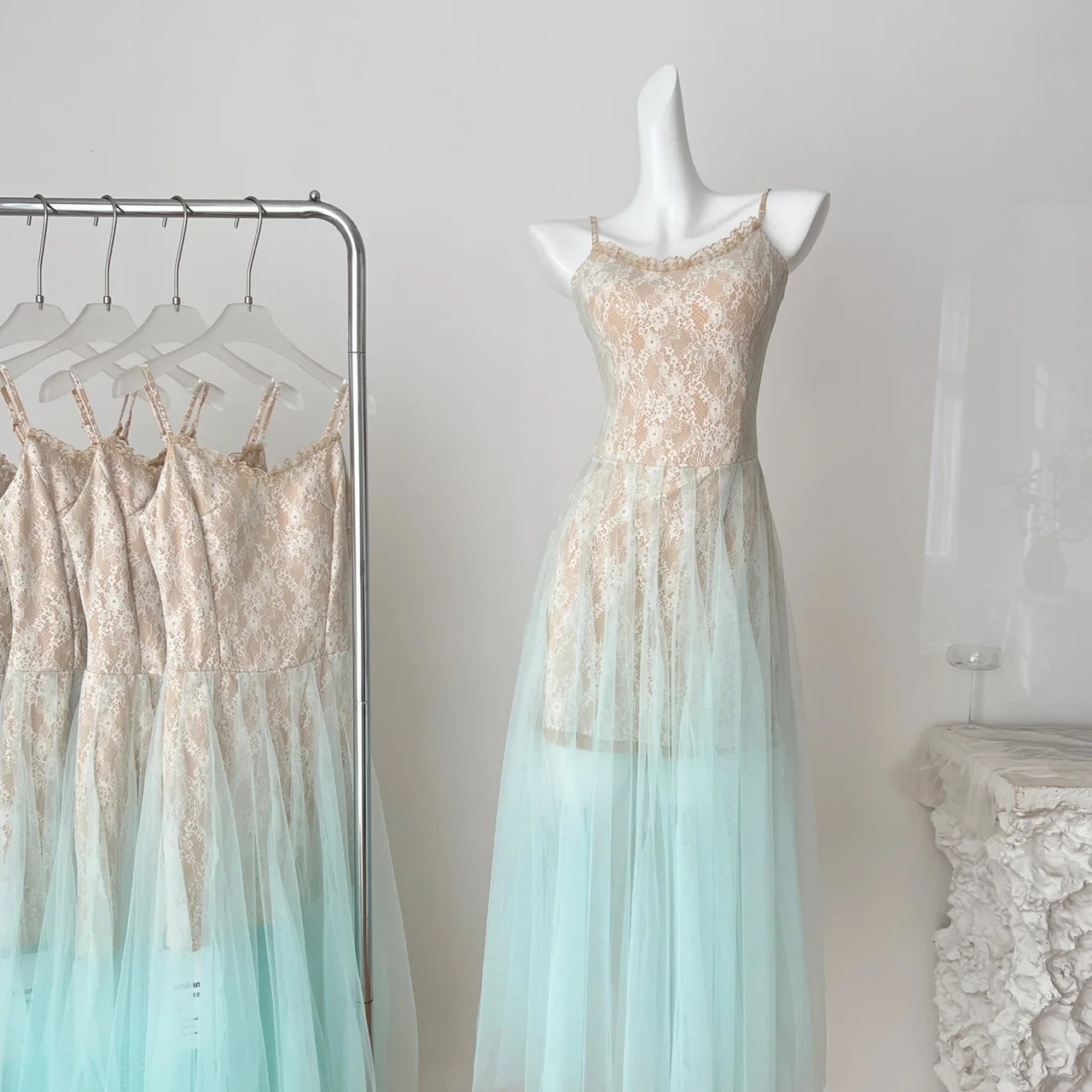 LBSFY -Summer Lace Mesh Elegant Spliced Sling Dresses For Woman 2025 Sexy Zipper New Fashion Evening Party Prom Long Dress 2025 Vestido