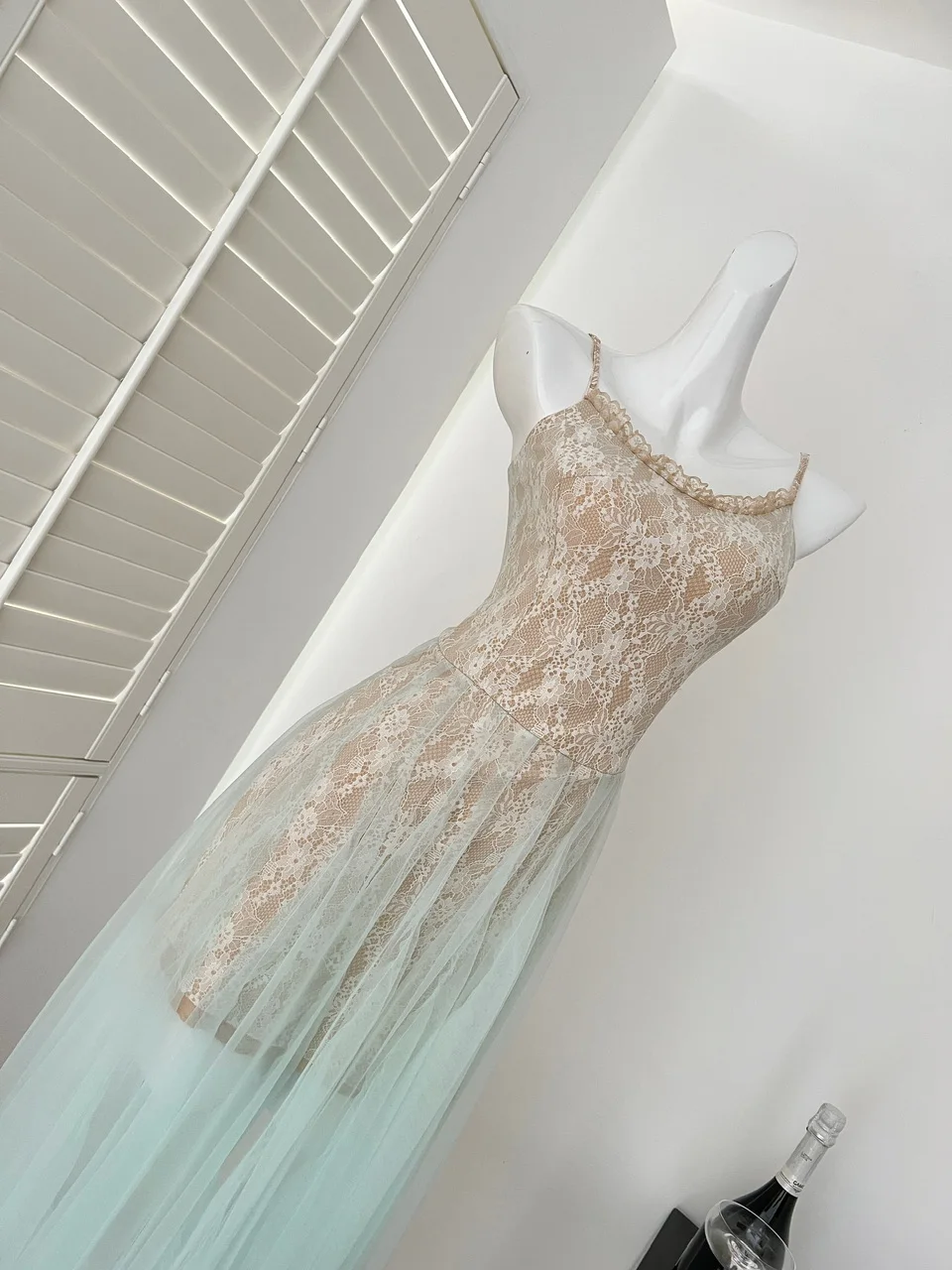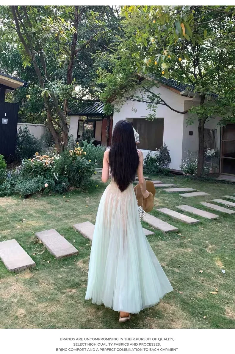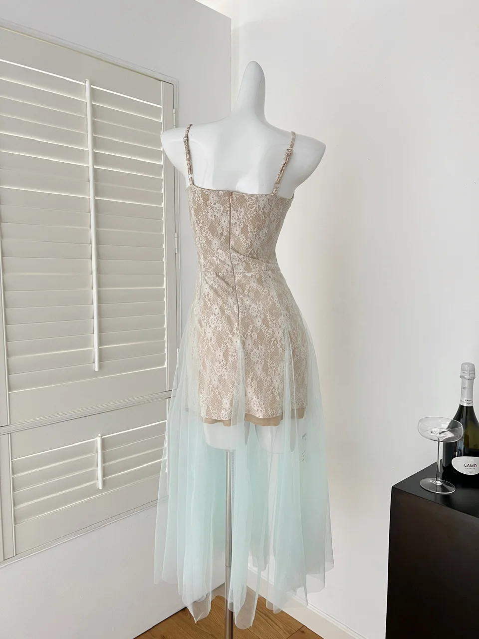 LBSFY -Summer Lace Mesh Elegant Spliced Sling Dresses For Woman 2025 Sexy Zipper New Fashion Evening Party Prom Long Dress 2025 Vestido