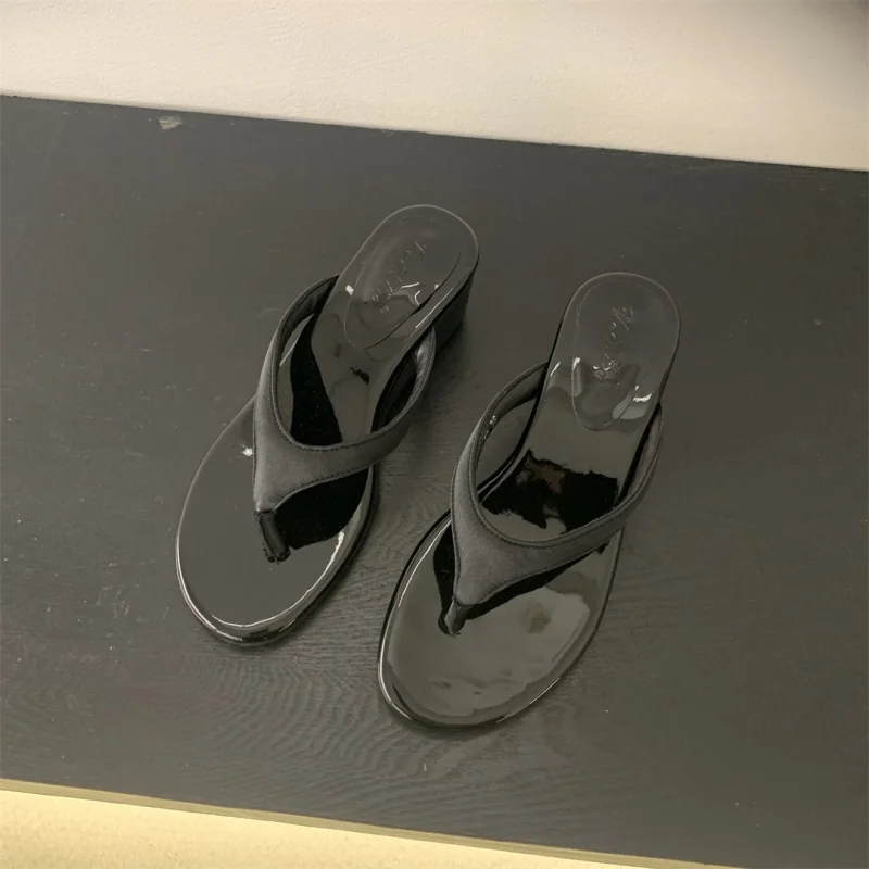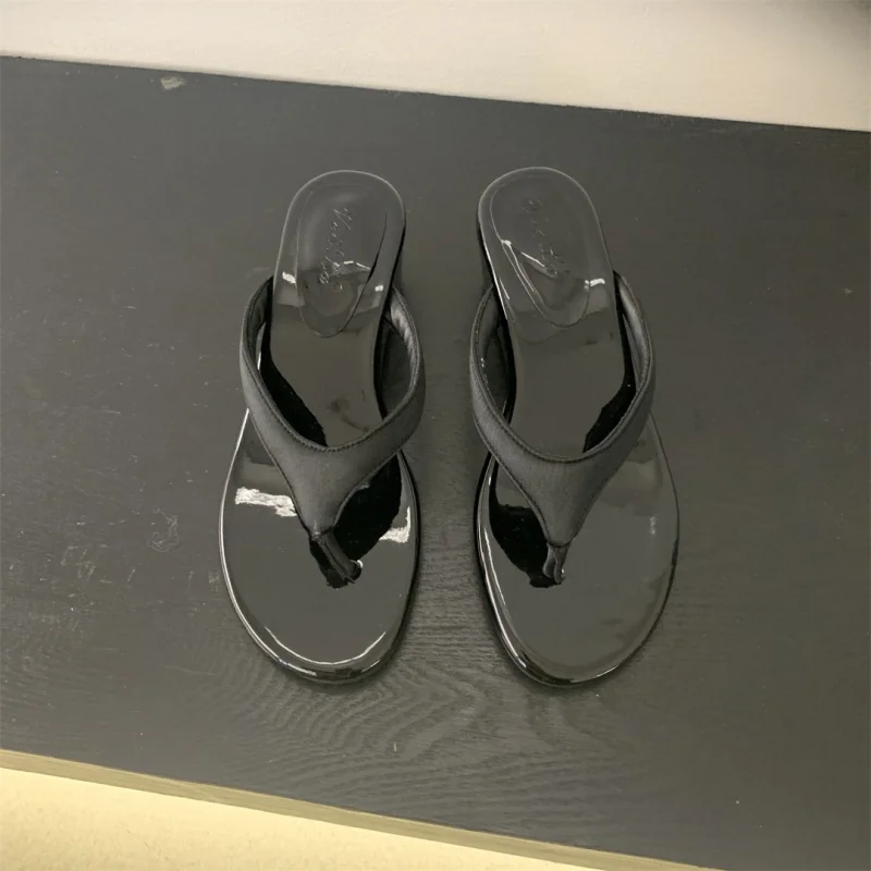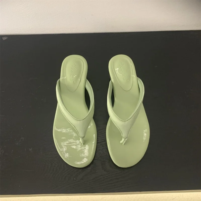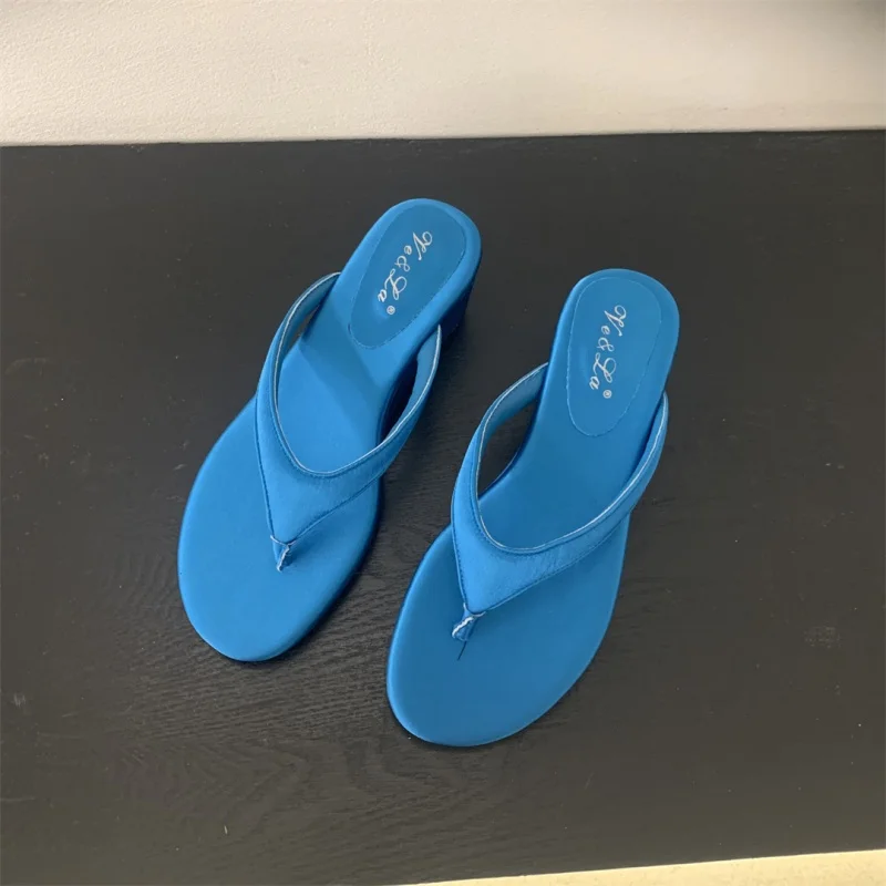 LBSFY -Summer New Brand Women Slipper Fashion Low Weadge Heel Sandal Narrow Band Outdoor Vaction Beach Slides Shoes