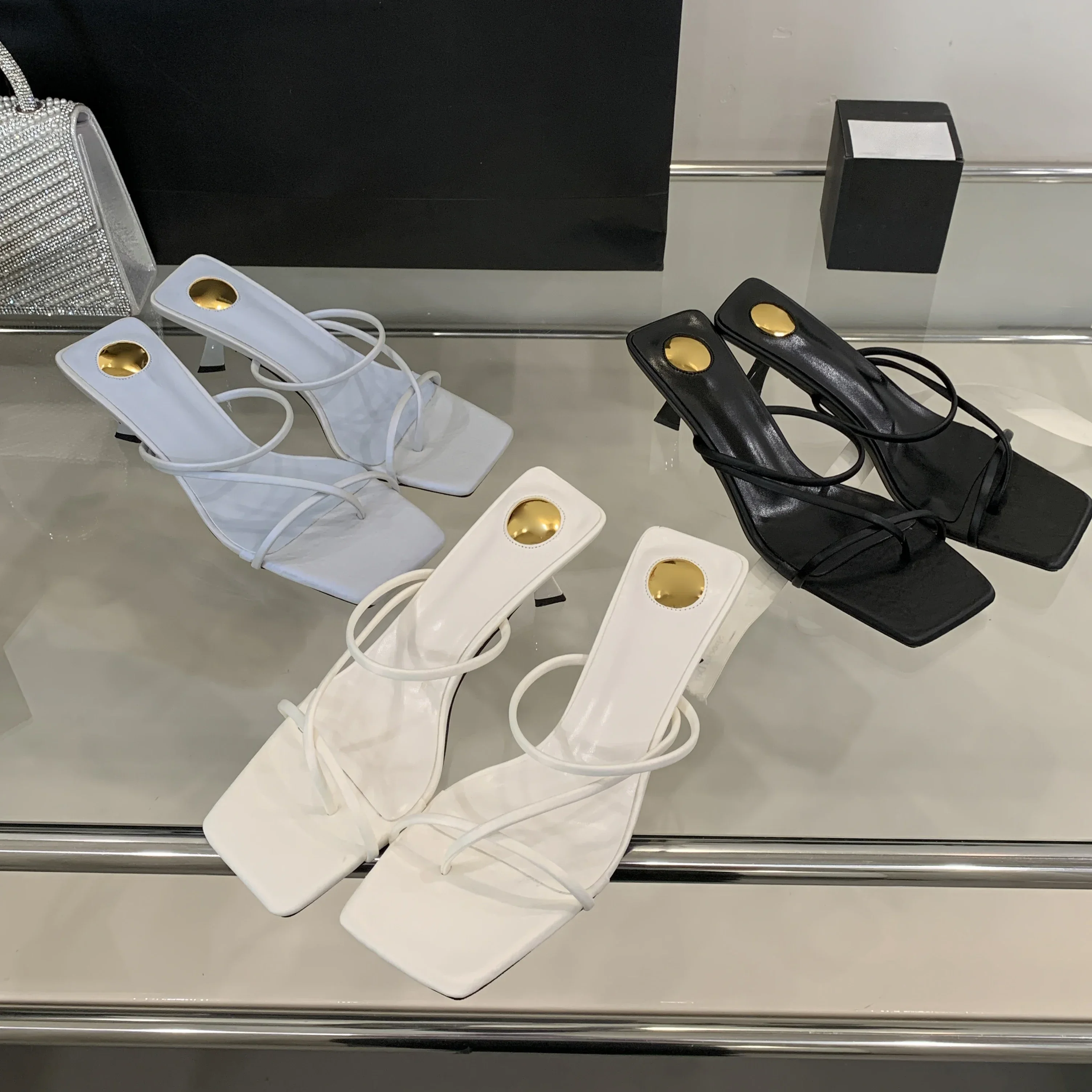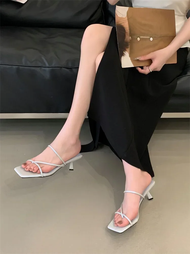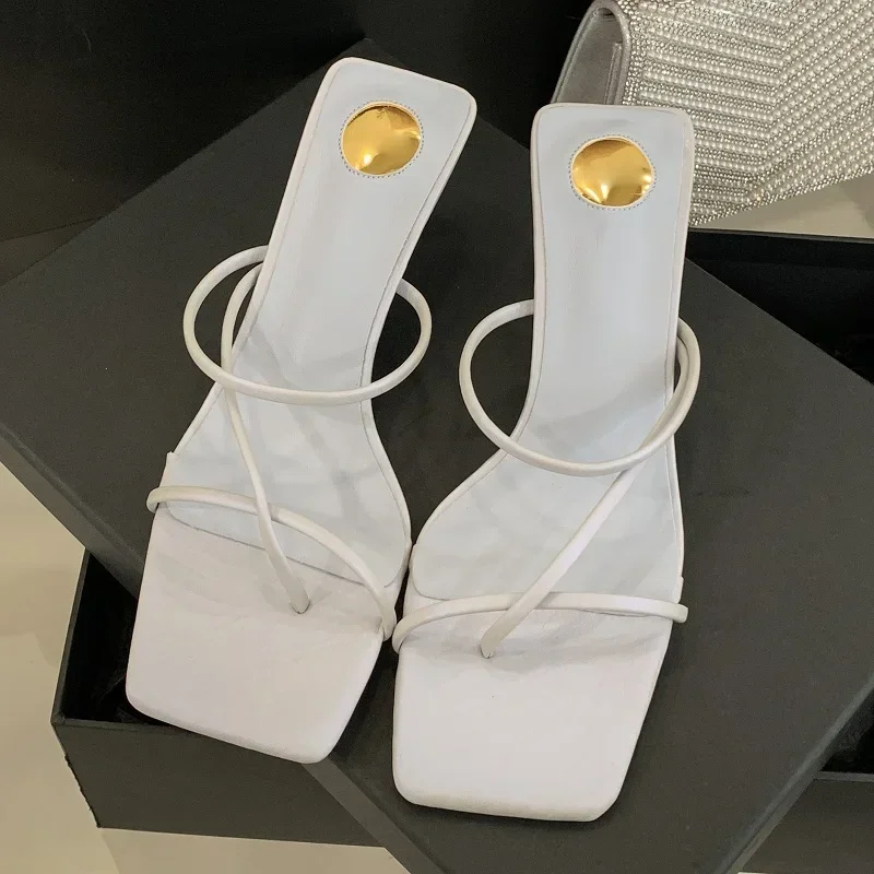 LBSFY -Summer New Fashion Narrow Band Hollow Out Slippers Women Square Toe Thin Low Heels Party Ladies Shoes