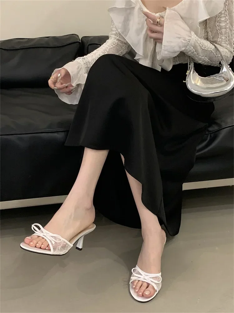 LBSFY -Summer New Fashion Thin Low Heels Women Slippers Breathable Mesh Banquet Sandals Slides Shoes Zapatos De Mujer