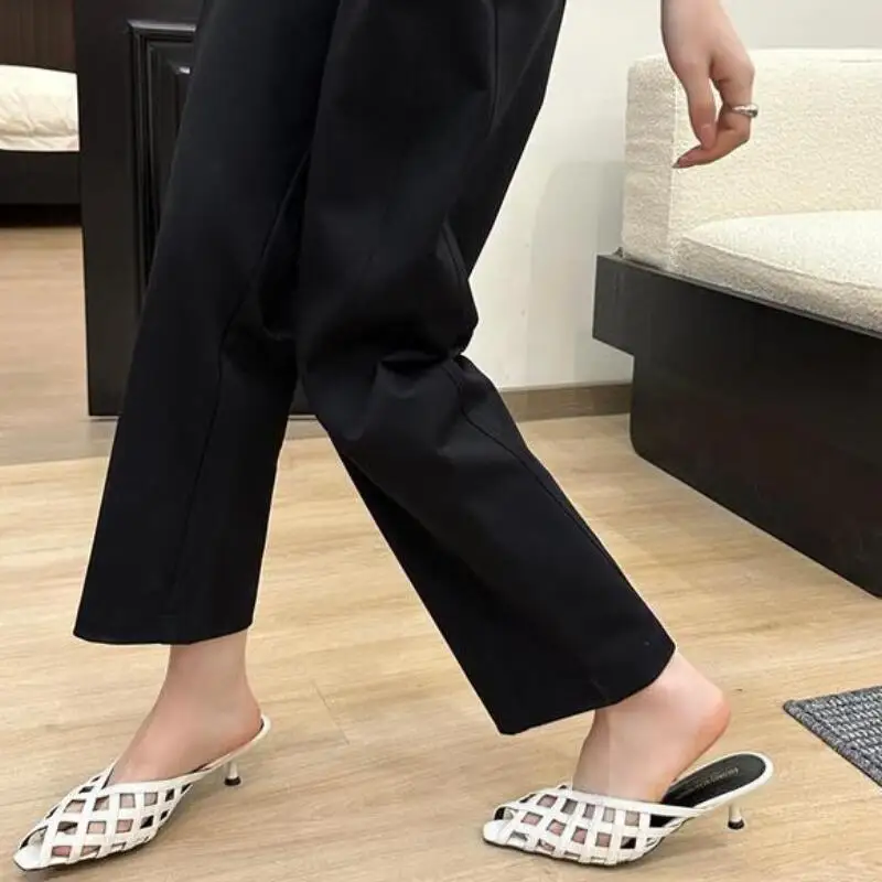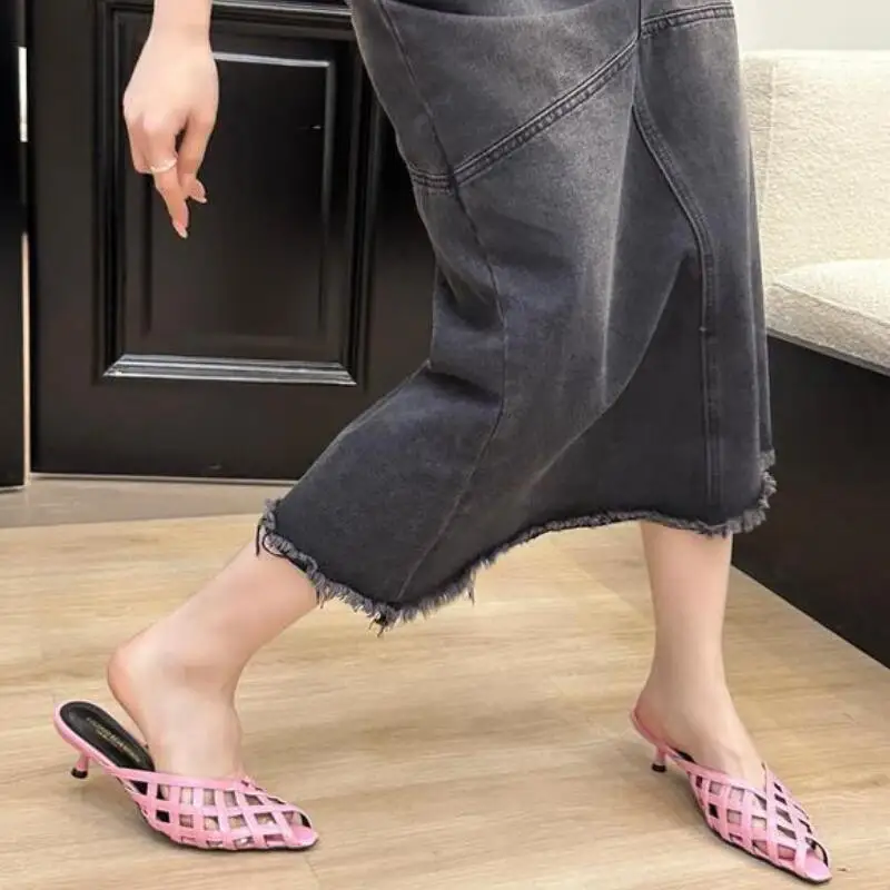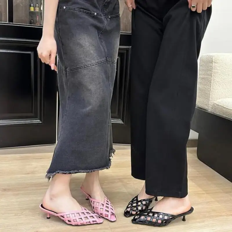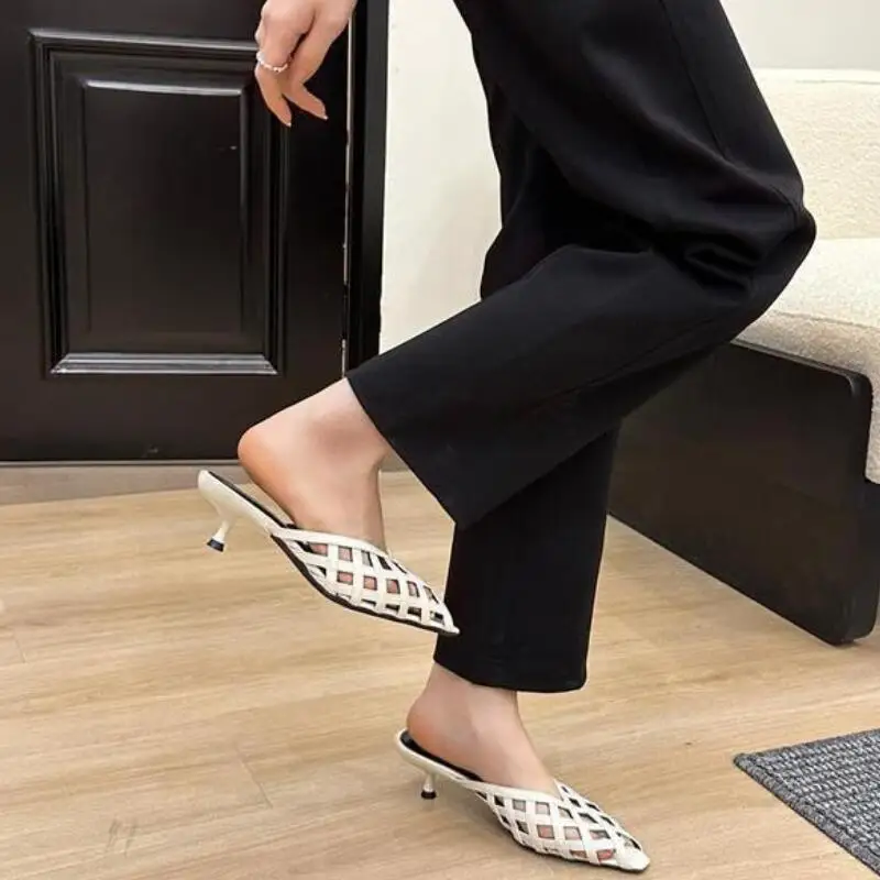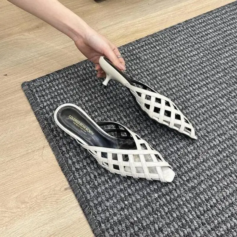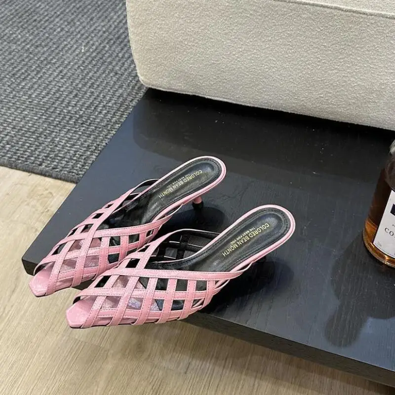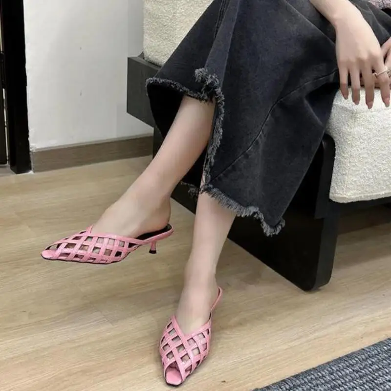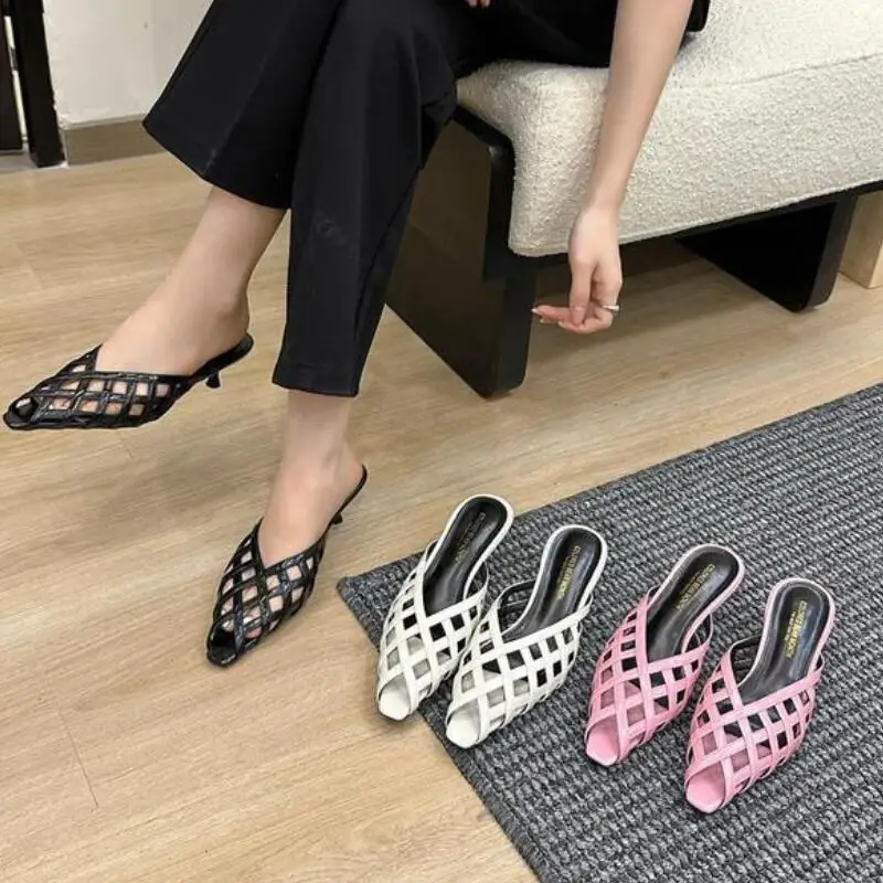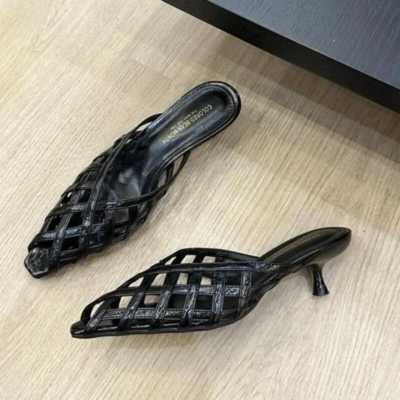 LBSFY - Summer New Hollow Out Slipper Women Fashion Weave Open Toe Sandal Slip On Ladies Casual Shoes Mid Heel Outdoor Dress Mules