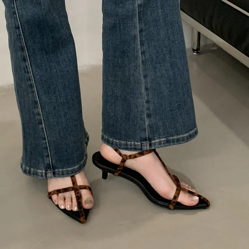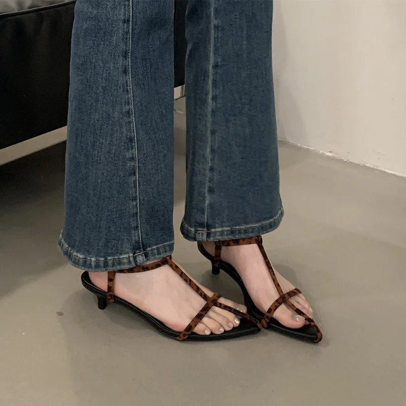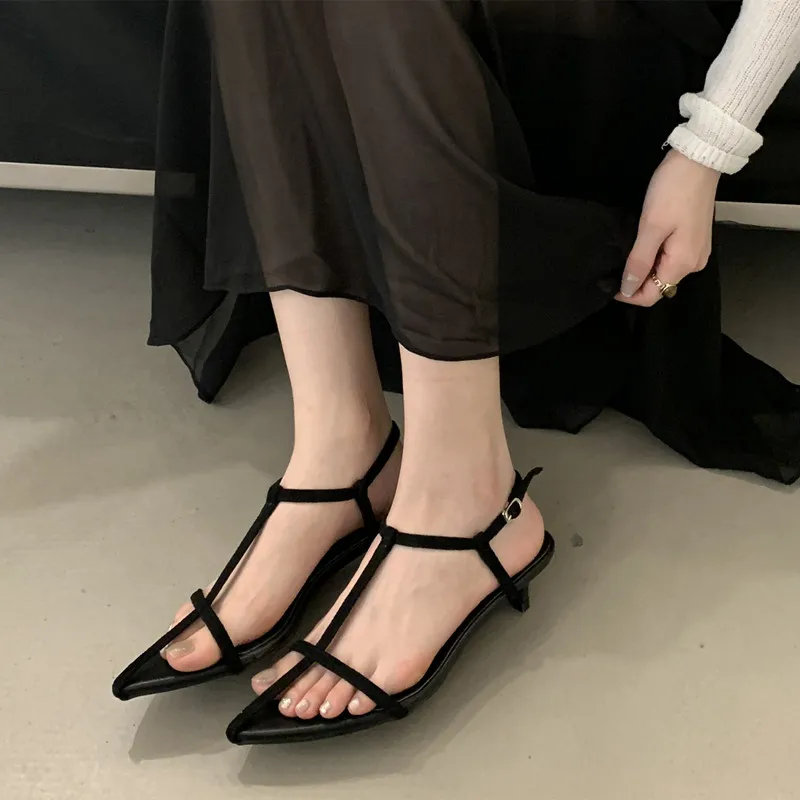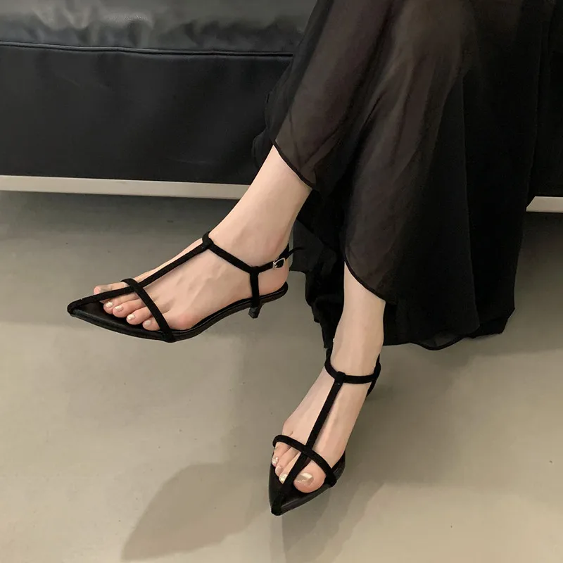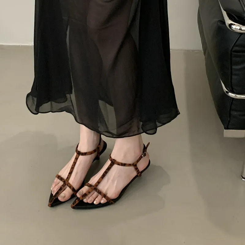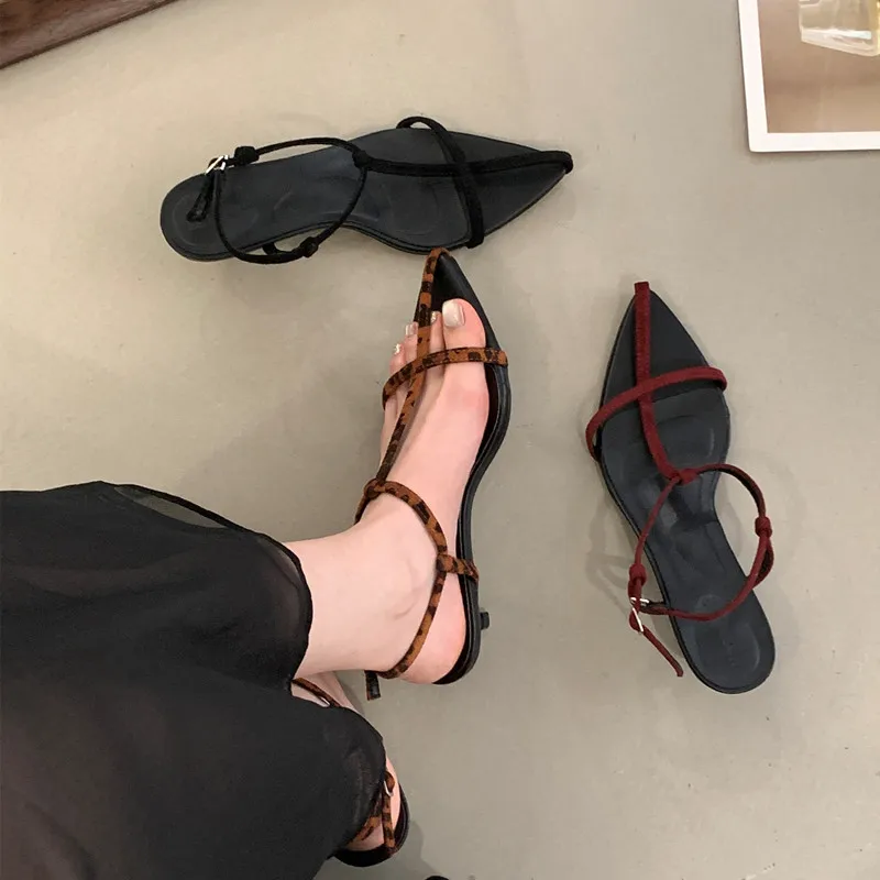 LBSFY - Summer New Women Sandals Thin Low Heel Ankle Strap Dress Party Shoes Fashion Narrow Band Ladies Gladiator Shoes