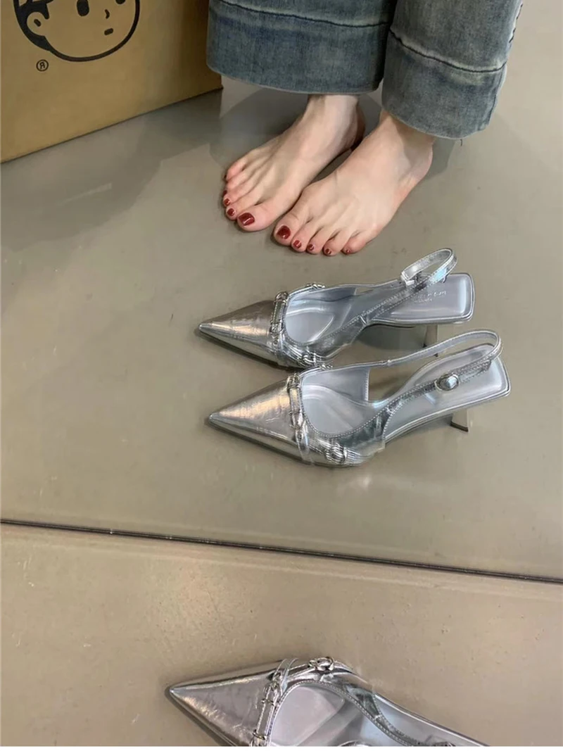 LBSFY Summer Pointed Toe Women Sandals Fashion Shallow Singbacks Shoes Ladies Dancing Party Pumps