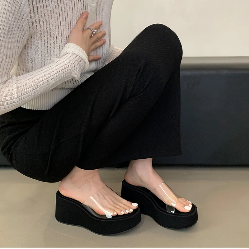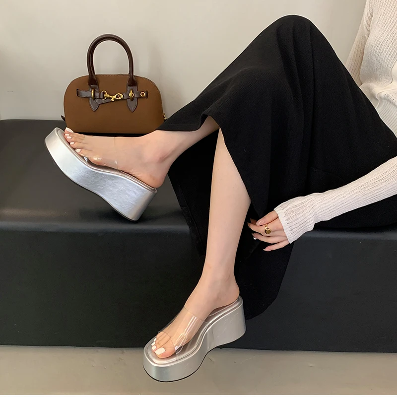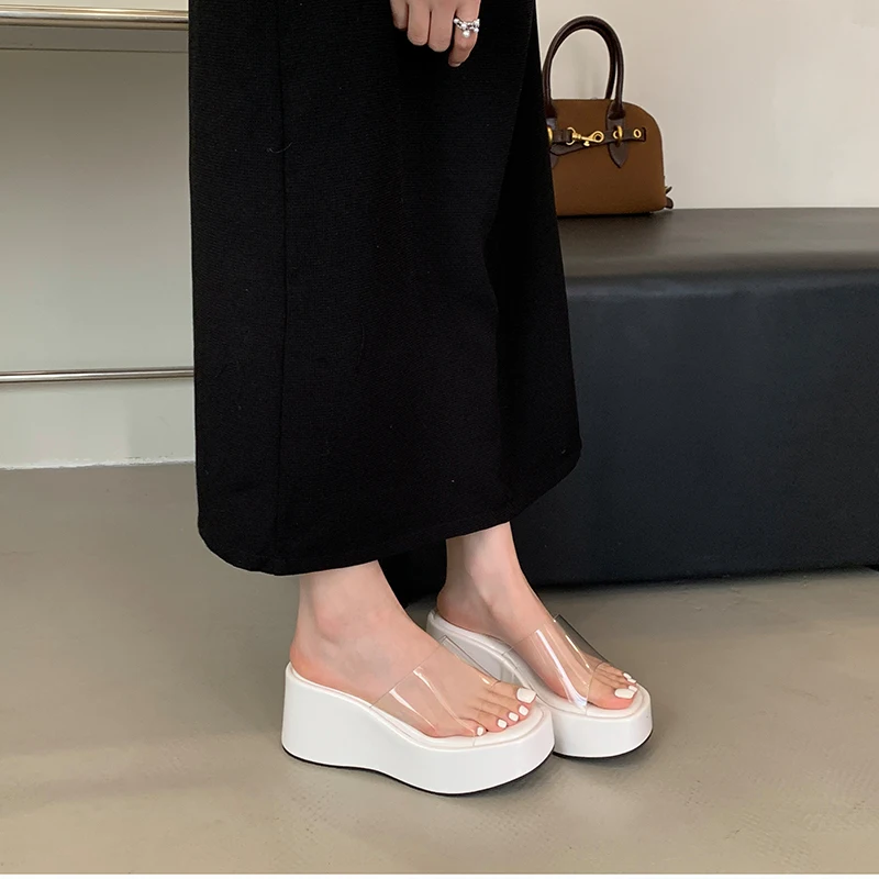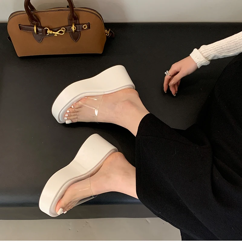 LBSFY -Summer PVC Transparent Women Slippers Fashion Platform Wedges Heel Slide Ladies Elegant Party Dress Shoes