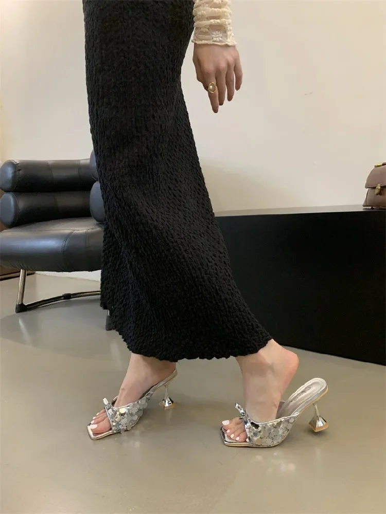 LBSFY - Summer Sequin Square Toe Women Slippers Sexy Butterfly-knot Concise Ladies Shoes Zapatos De Mujer