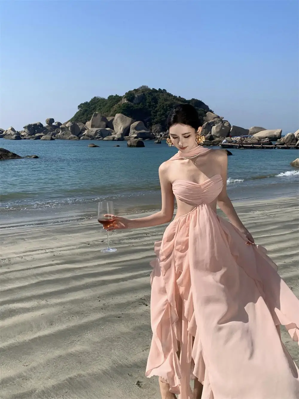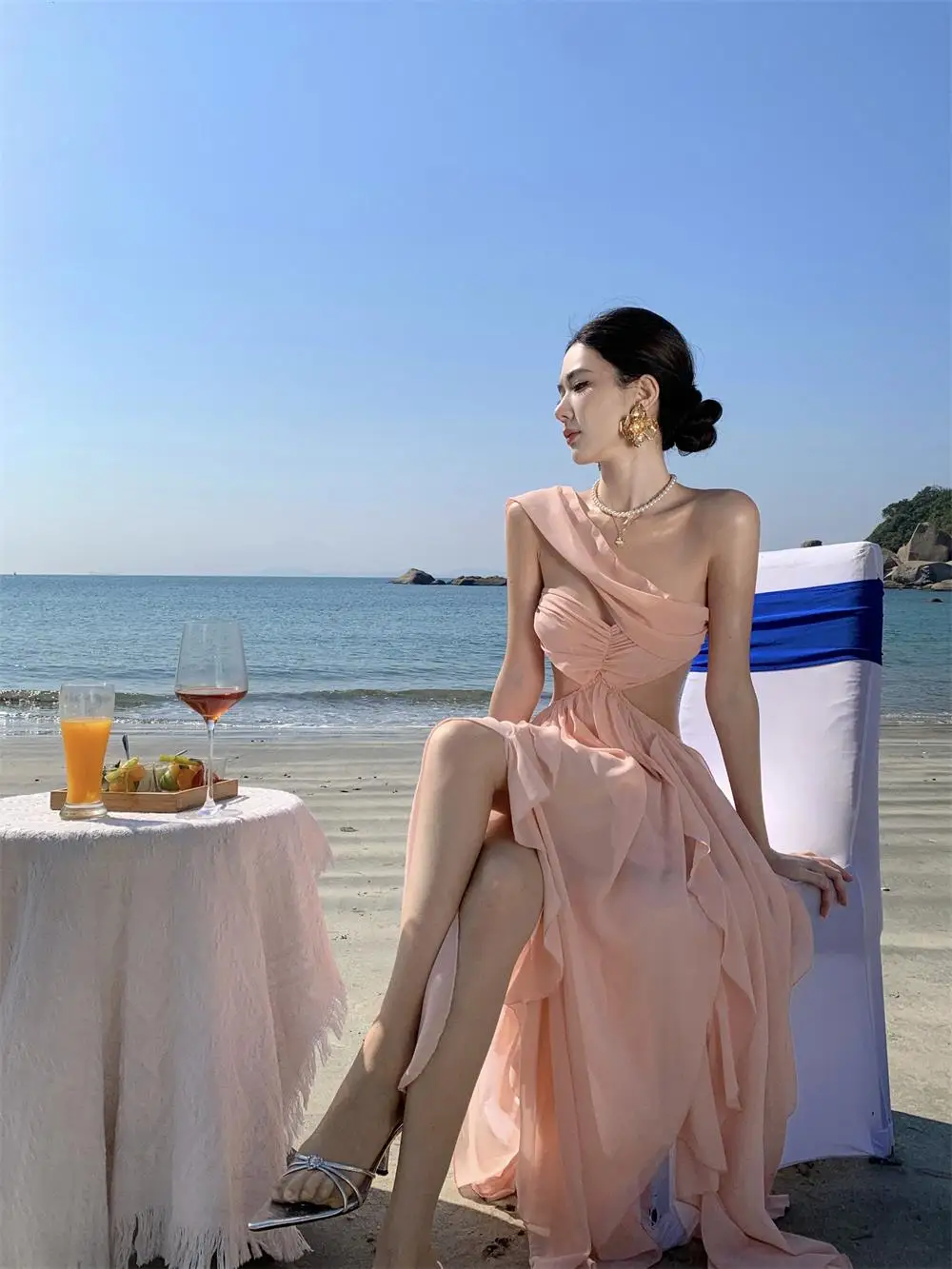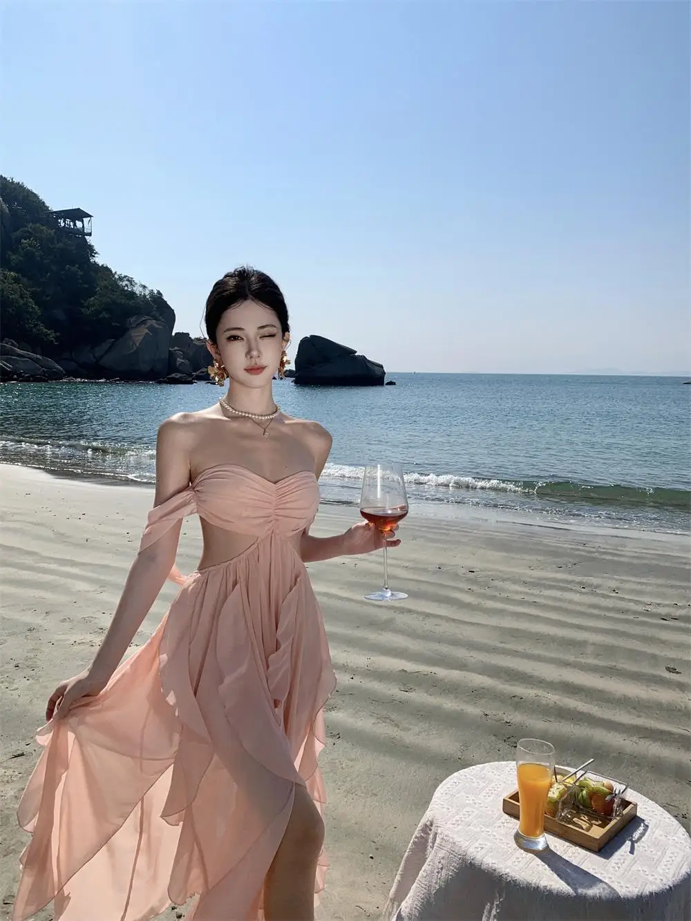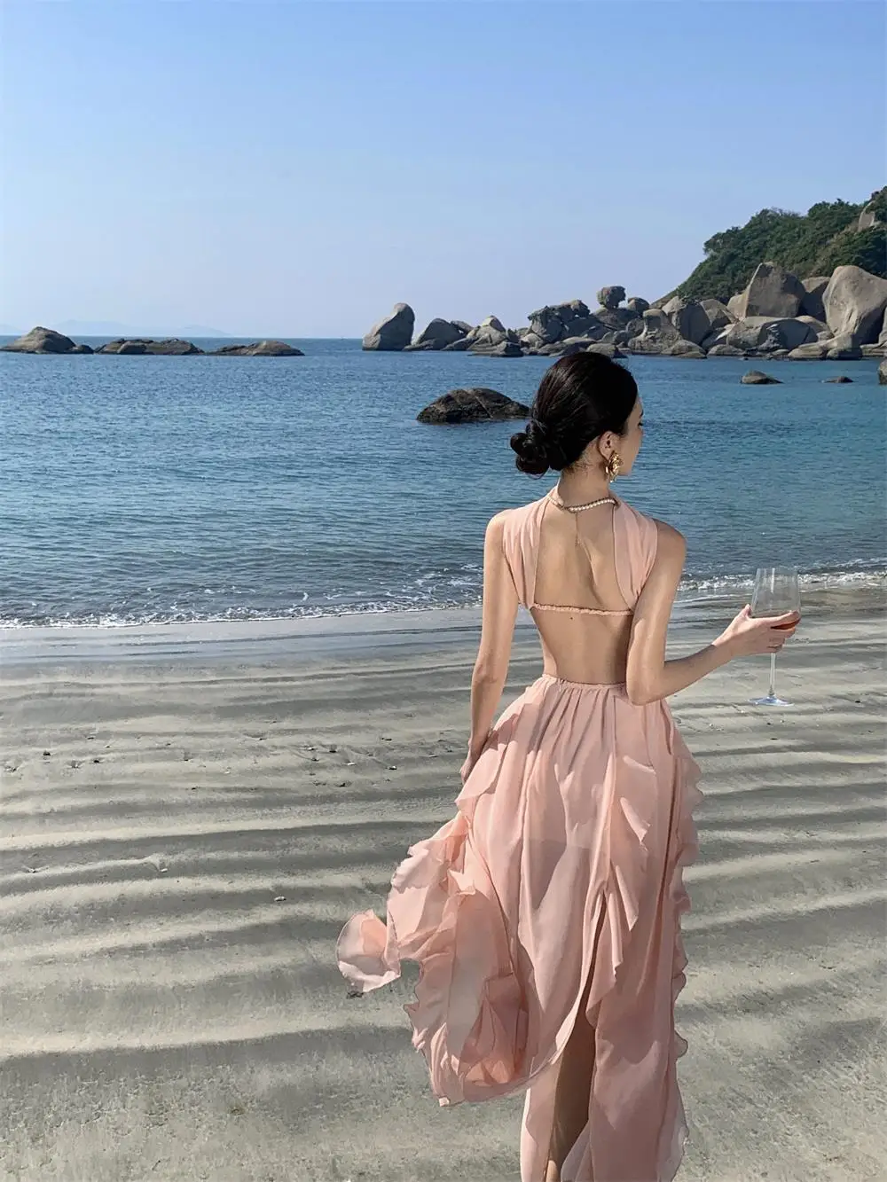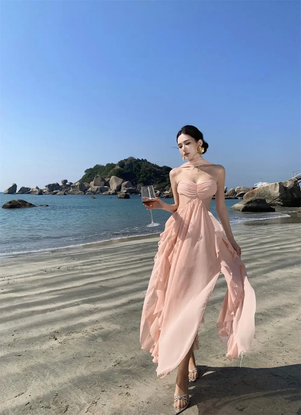 LBSFY -Summer Spring Strapless Womens Dresses Elegant Backless Irregular Ruffles Birthday Party Dress Holiday Beach Vestidos Mujer New