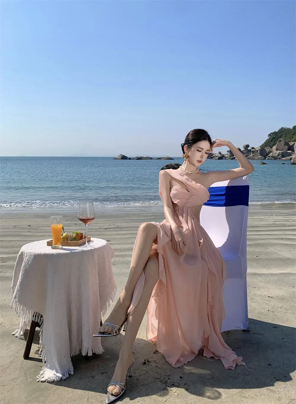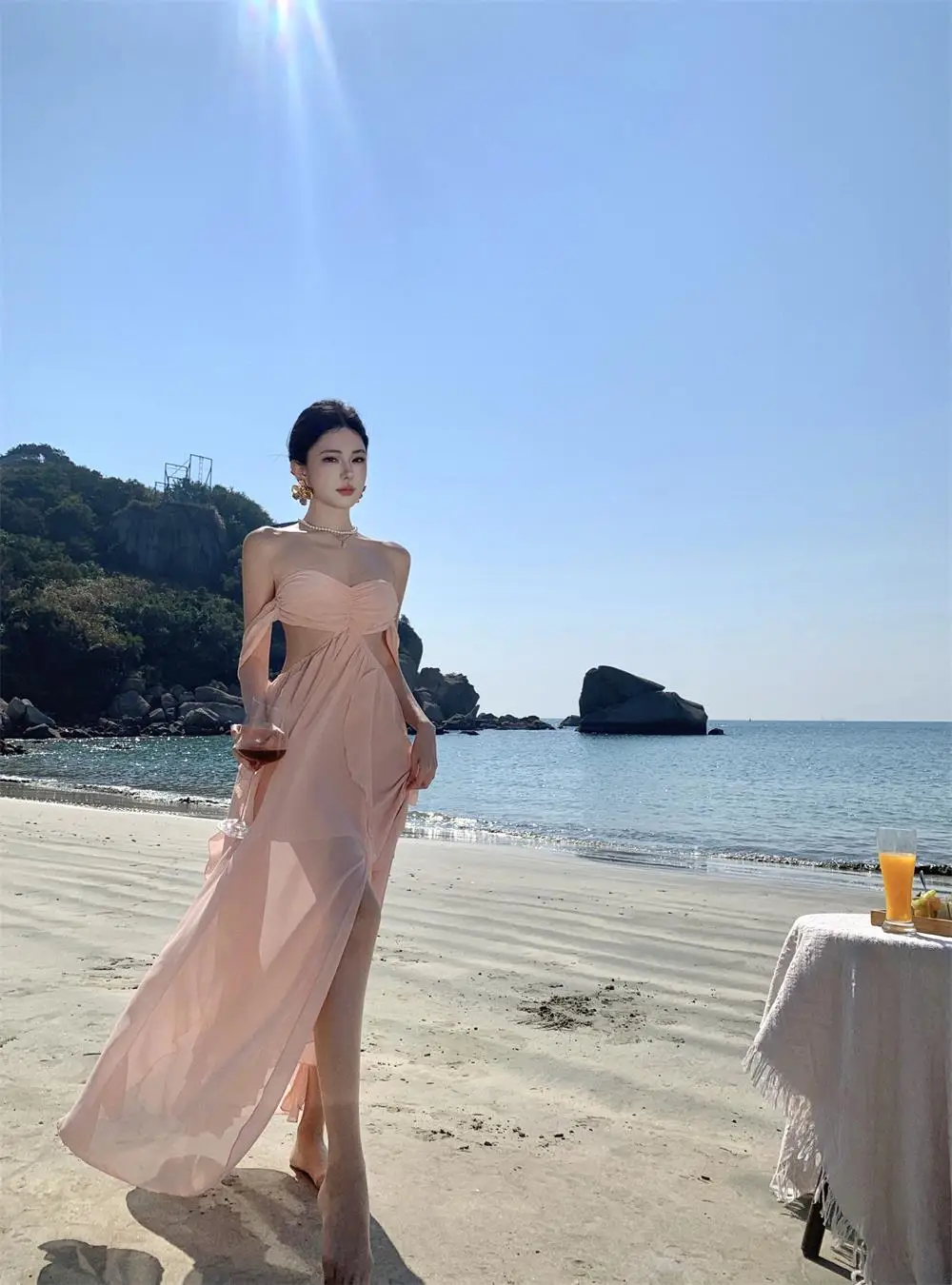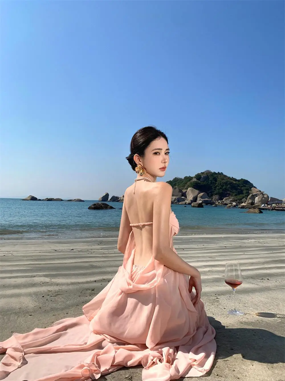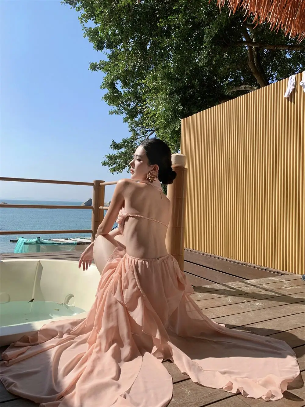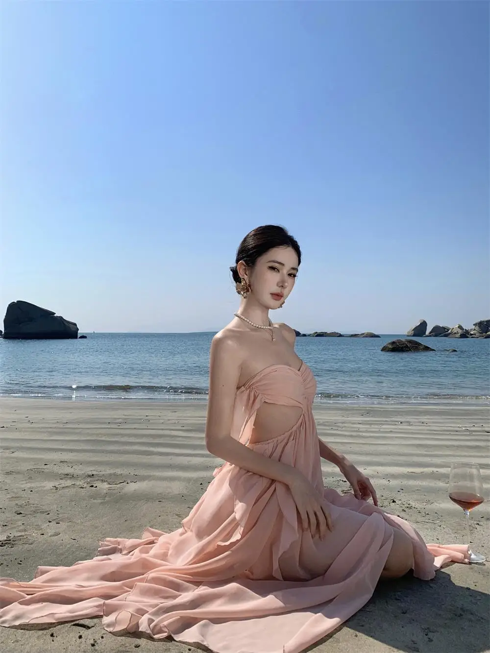 LBSFY -Summer Spring Strapless Womens Dresses Elegant Backless Irregular Ruffles Birthday Party Dress Holiday Beach Vestidos Mujer New
