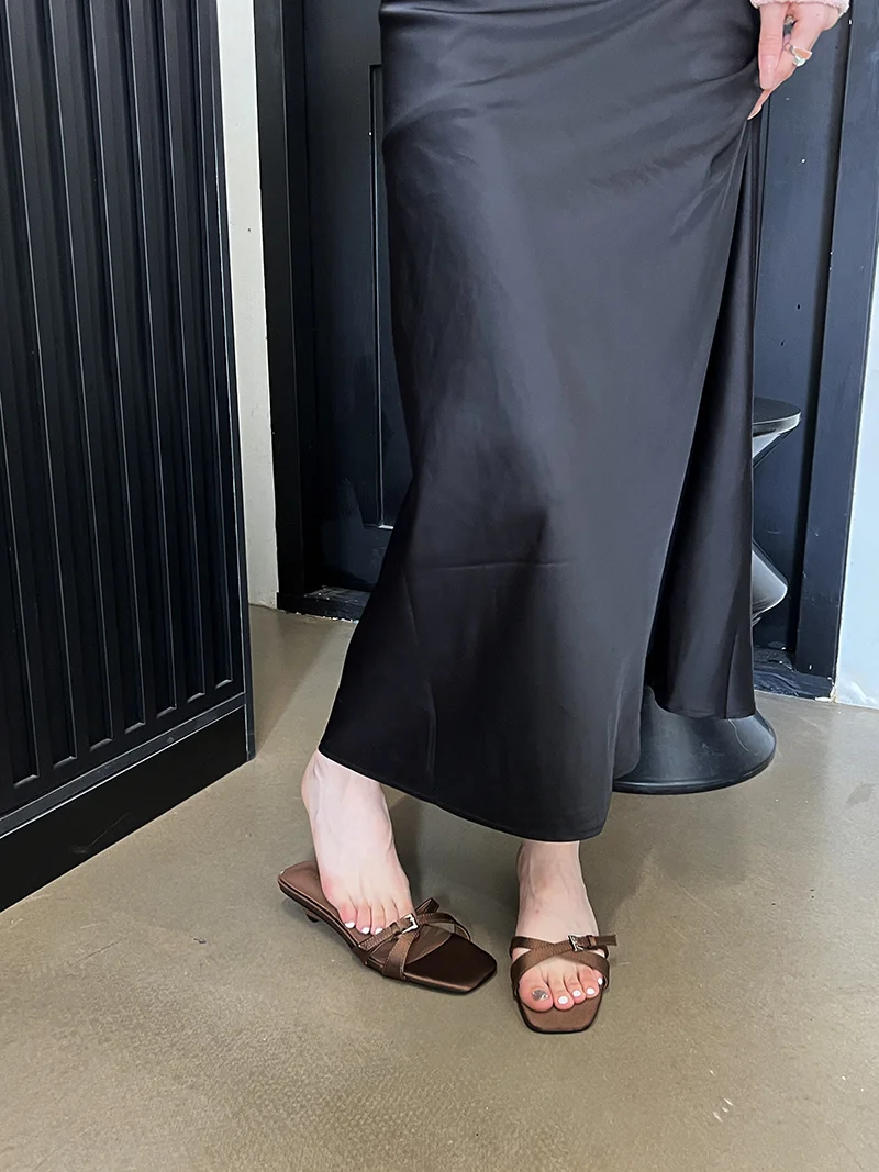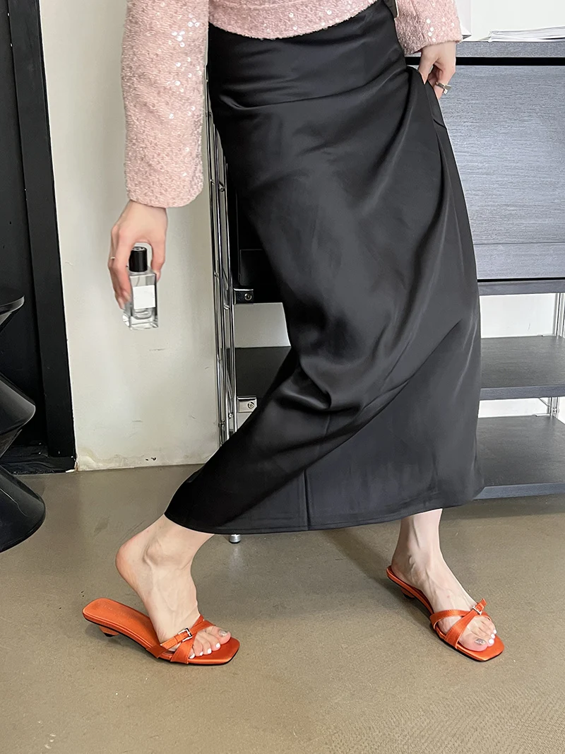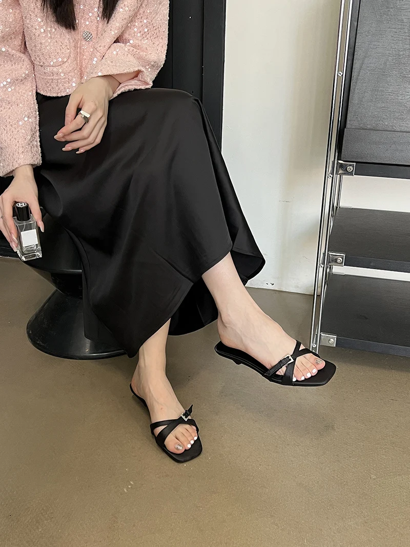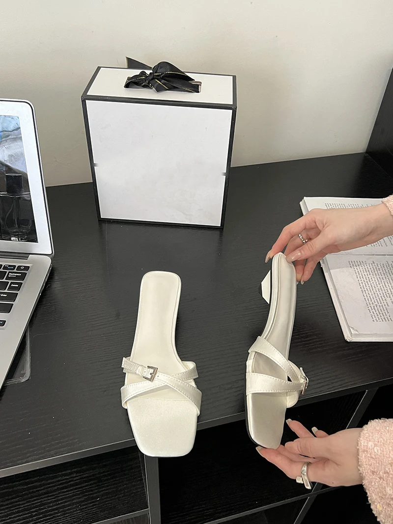 LBSFY - Summer Strange Low Heels Slippers Ladies Buckle Narrow Band Square Toe Designer Slides Women Shoes Beach Gladiator Sandals