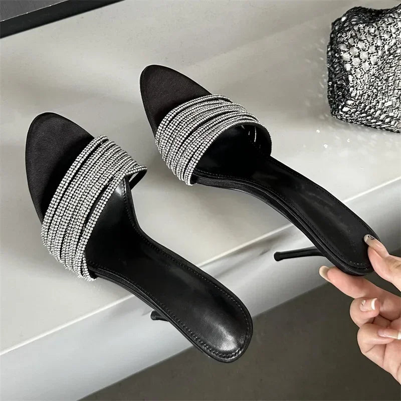 LBSFY -Summer Street Narrow Band Crystal Women Slippers Sexy Thin High Heels Party Prom Open Toe Slide Shoes