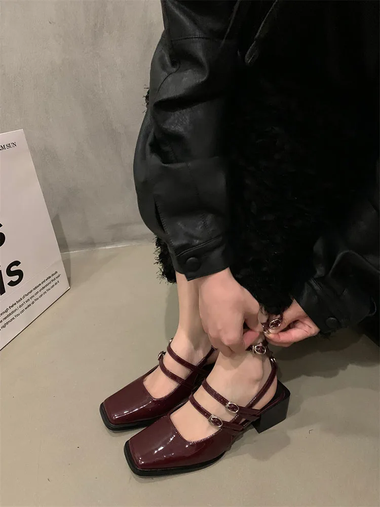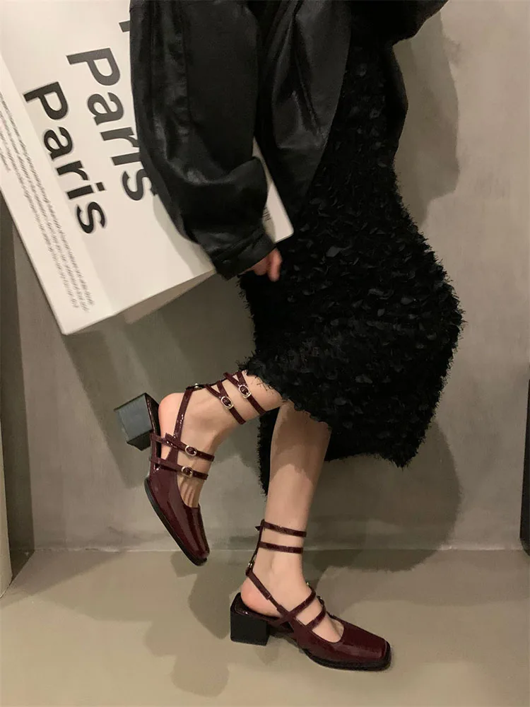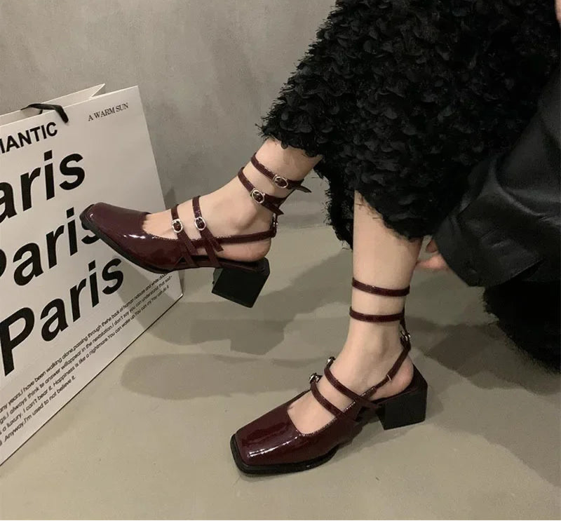 LBSFY Summer Thick Heel Women Sandals Fashion Square Toe Cross Ankle Strap Shoes Ladies Elegant Party Dress Sandalias