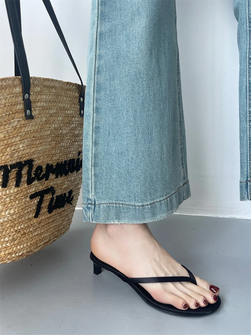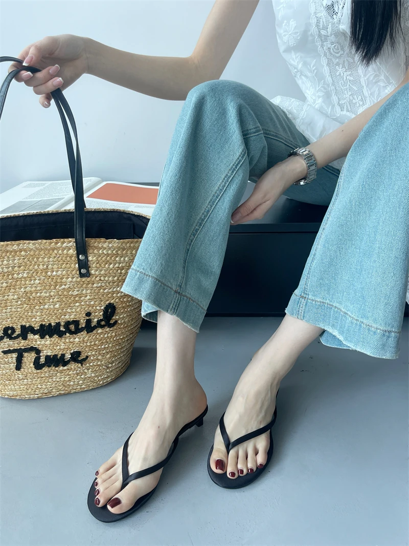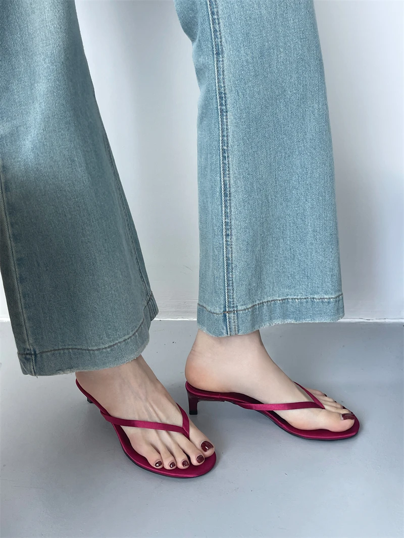 LBSFY -Summer Thin High Heel Women Slipper Fashion Narrow Band Slip On Ladies Flip Flop Outdoor Dress Sandal Slides Shoes Muje
