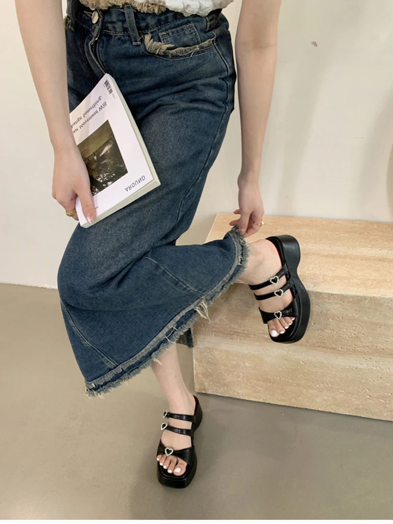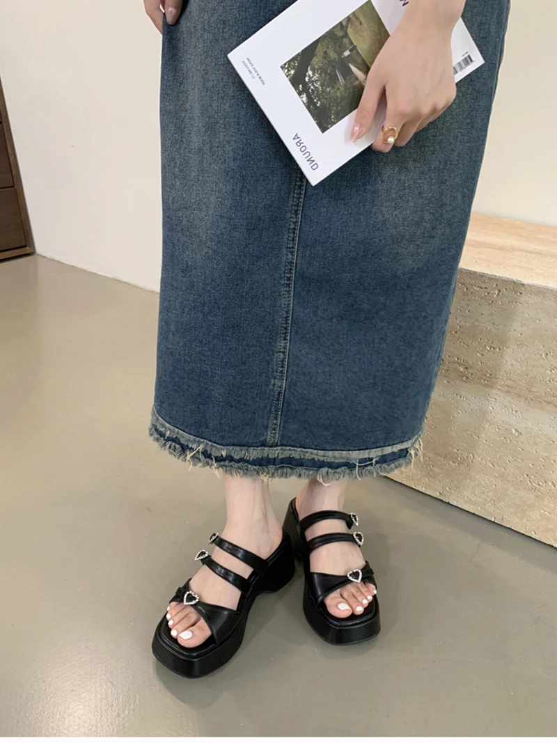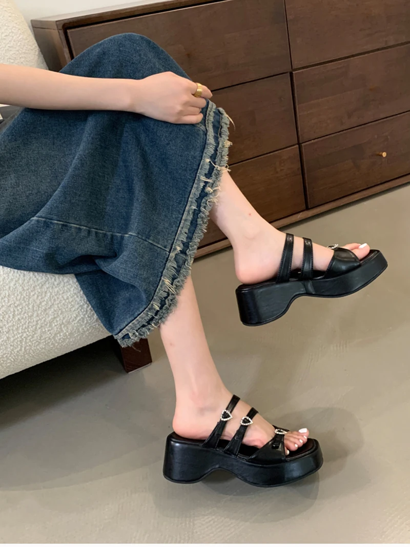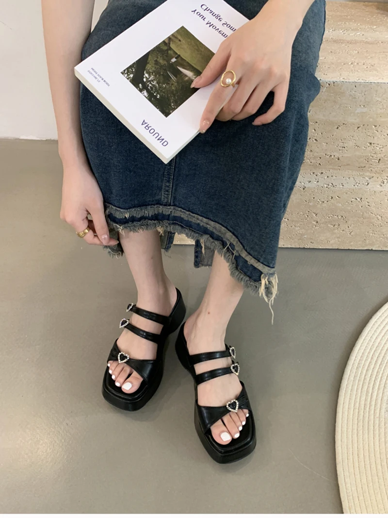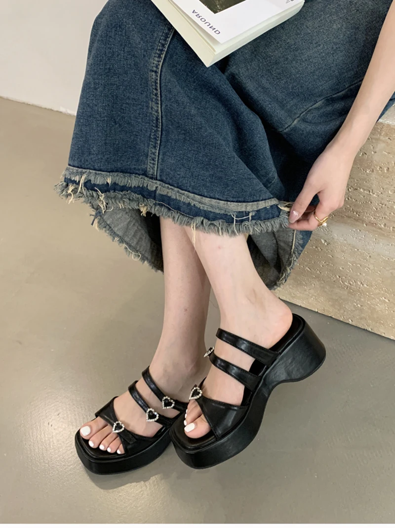 LBSFY -Summer Women Fashion Platform Heel Slippers Crystal Decoration Shoes Ladies Casual Dress Street Style Shoes Slides