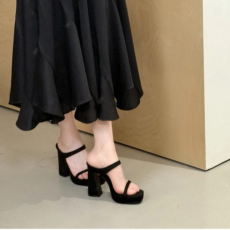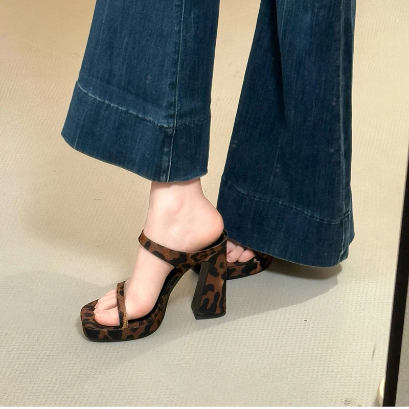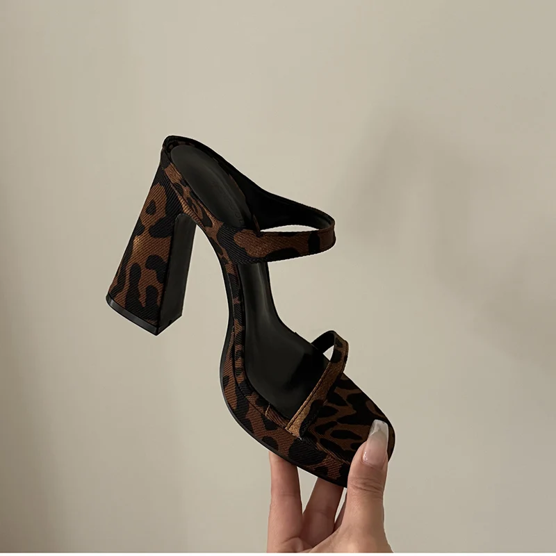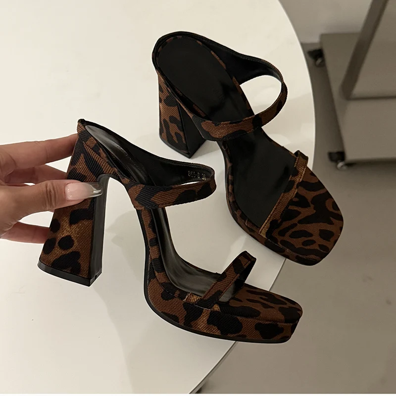 LBSFY Summer Women Leopard Print Slippers Fashion Open Toe Thick High Heel Party Dress Slides Shoes