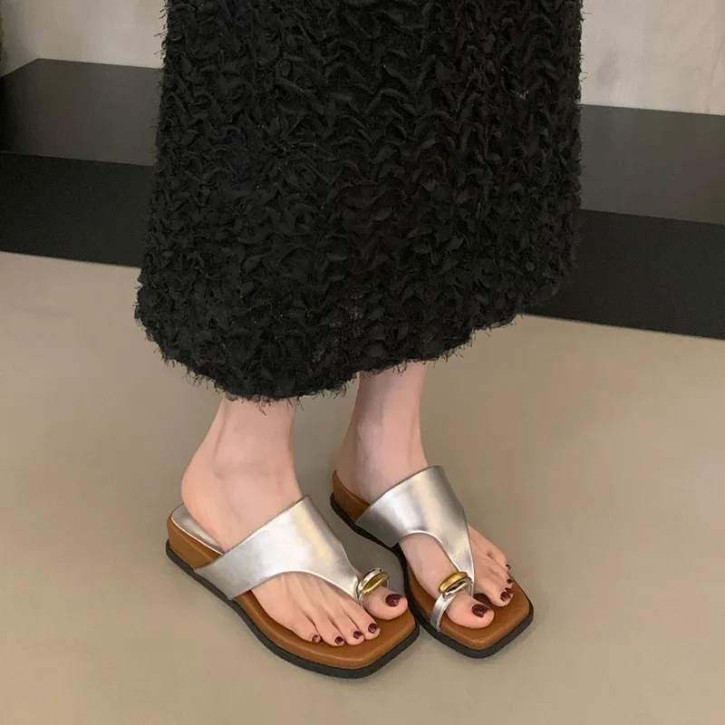 LBSFY - Summer Women Slipper Ladies Slip On Flip Flop Low Wedge Heel Outdoor Dress Slides Beach Shoes Mujer