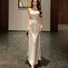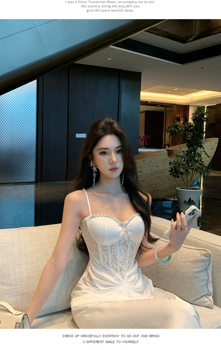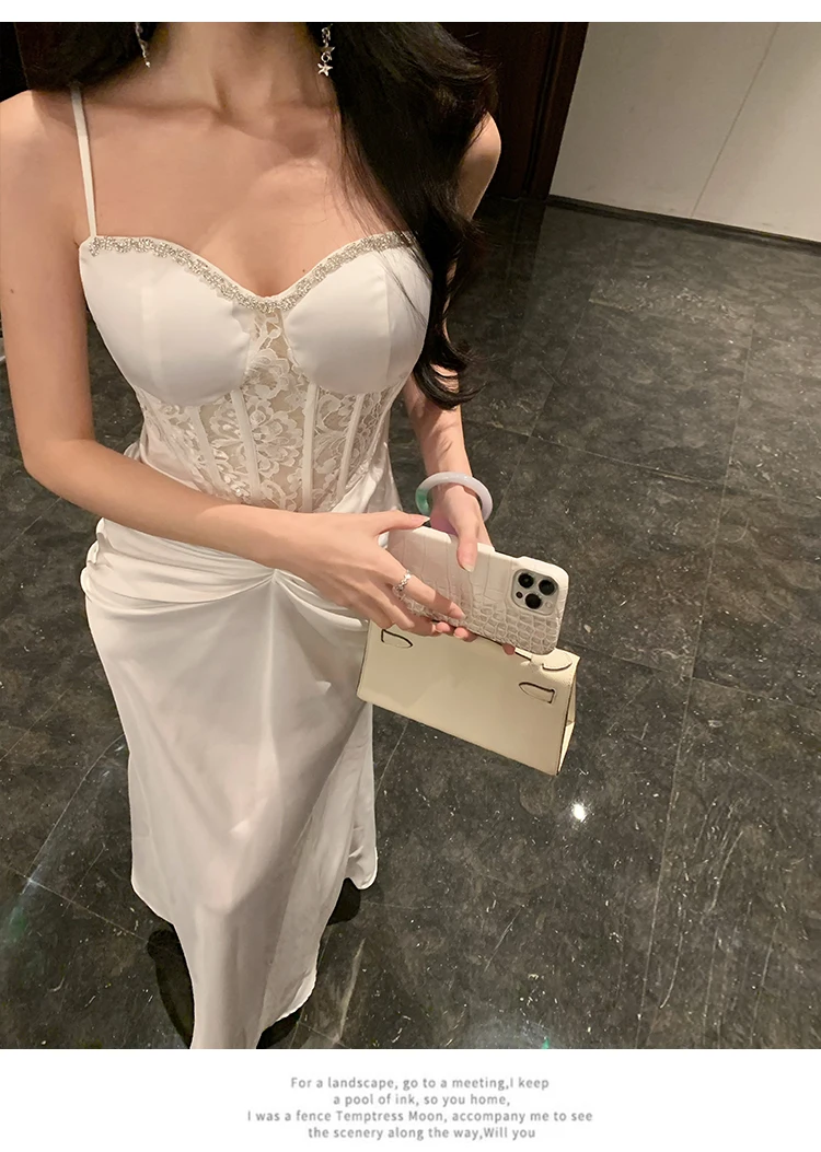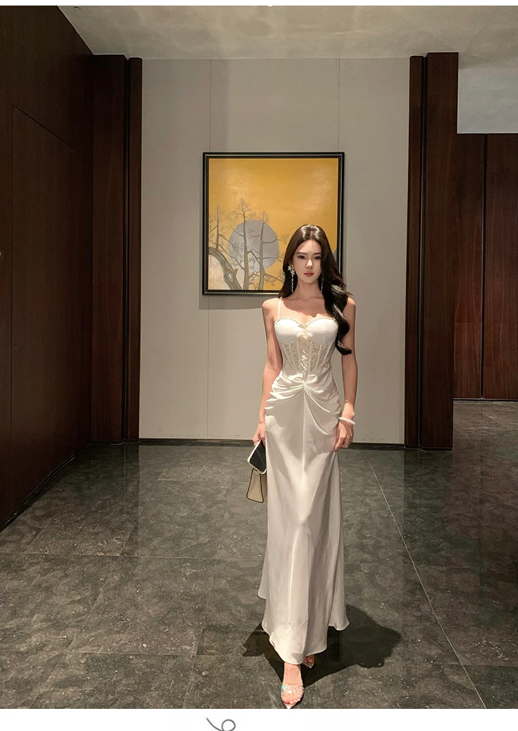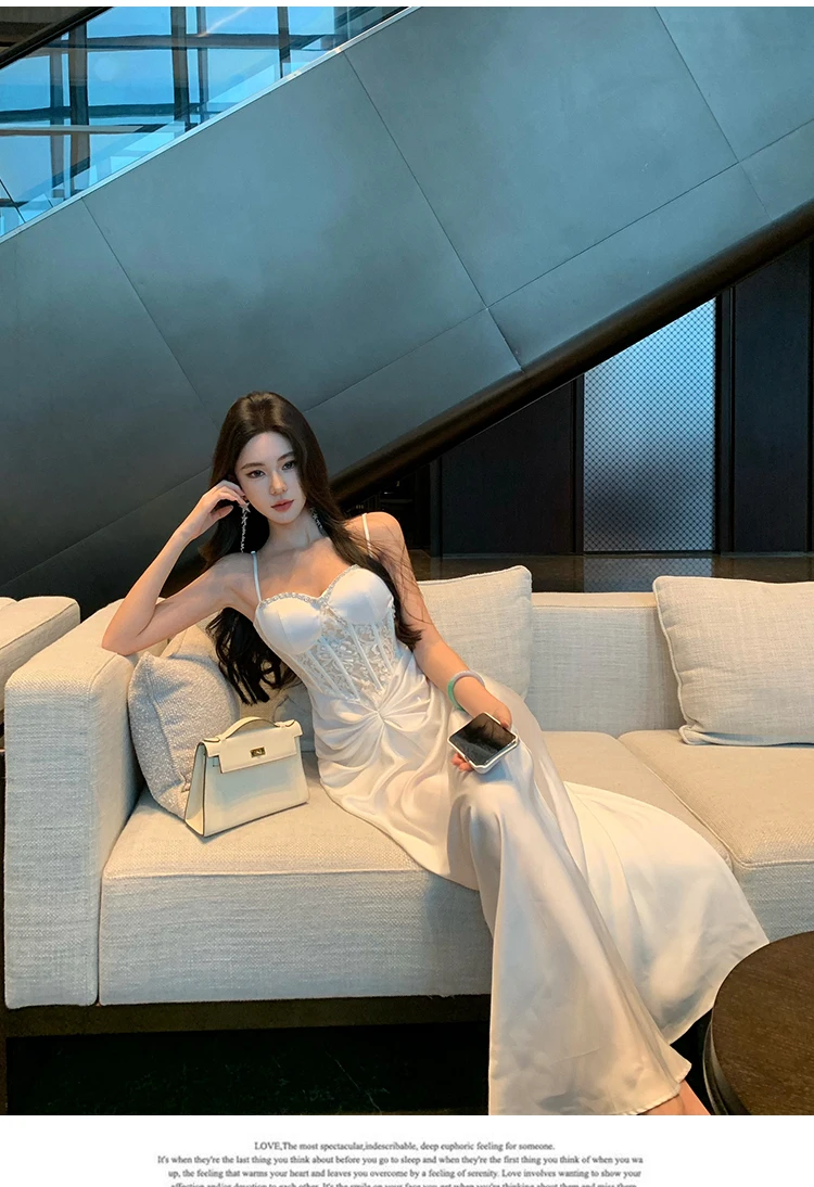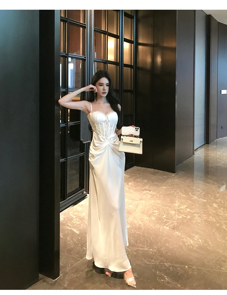 LBSFY -Summer Women's Elegant Sexy Evening Long Dresses White Spaghetti Strap Sleeveless Backless Wedding Party Birthday Robe New Chic