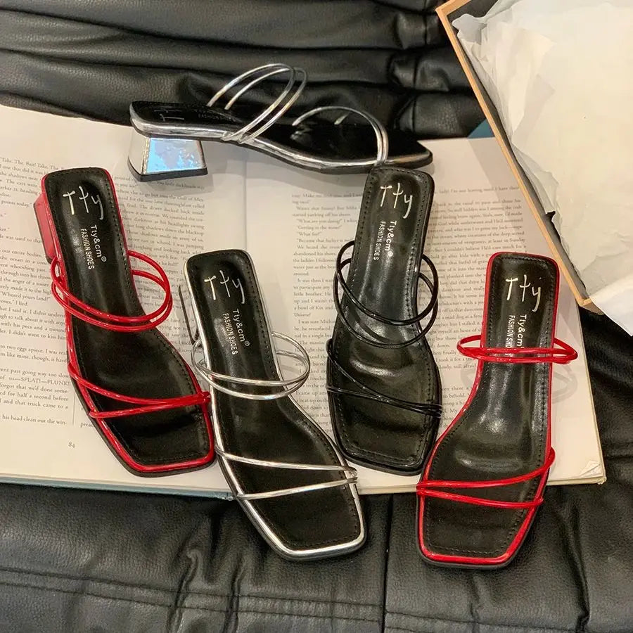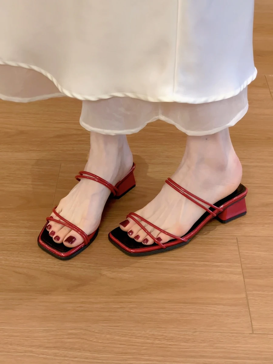 LBSFY -Summer Womens Slippers Elegant Female Sandals Square Toe Clip-toe Low Heel Slippers 2025 Sandalias Beach Slides