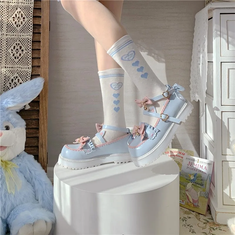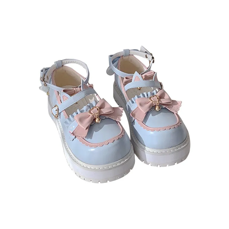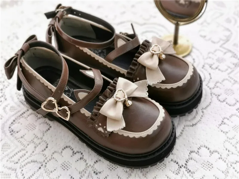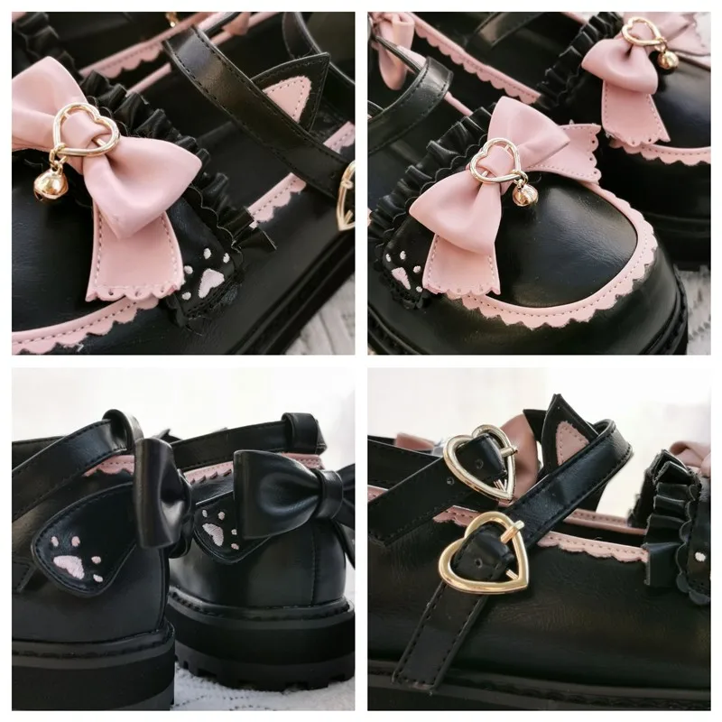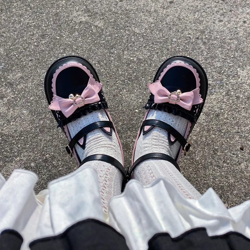 LBSFY -Tea Party Gothic Sweet Kawaii Lolita Japanese Round Head Bow Women's Shoes Girl's Cosplay Anime Women Harajuku Cute Mid Heel 3cm