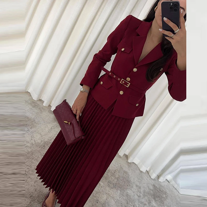LBSFY - Temperament Commute Suit For Women Casual Loose Office Blazers& Pleat Skirts Outfits Fashionable Sets Ladies Long Sleeve Suit