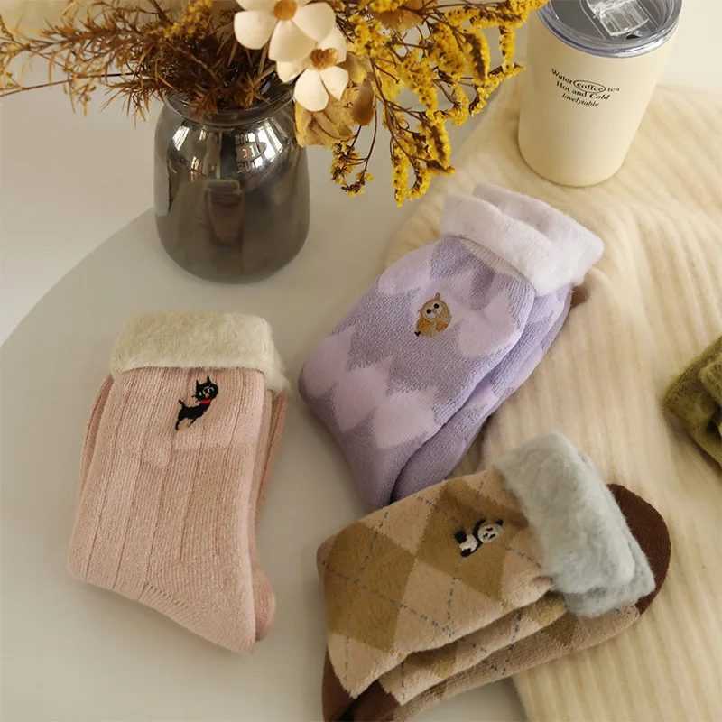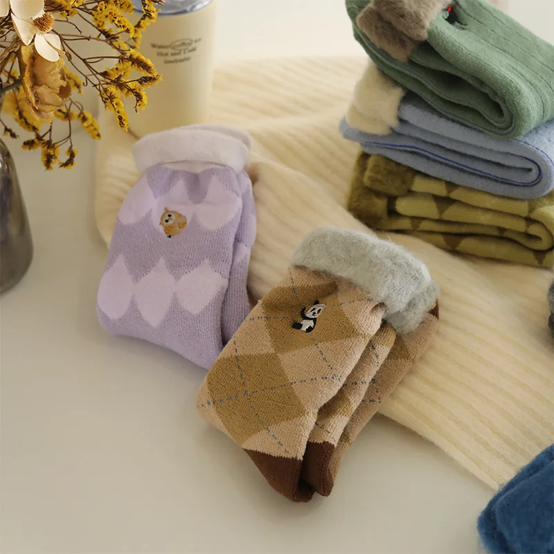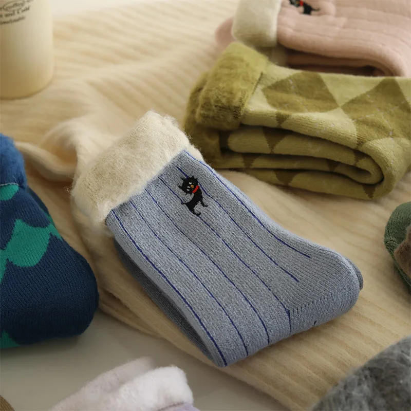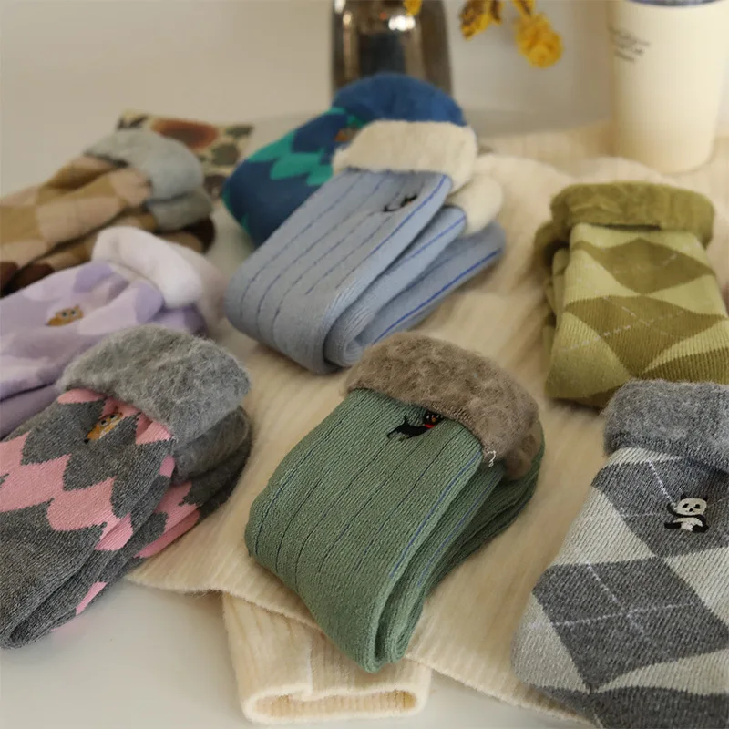 Lbsfy Thicken Warm Wool Classic Solid Colors Rib Socks Women High Quality Loose Crew Fashion Japanese Korea Sock Winter