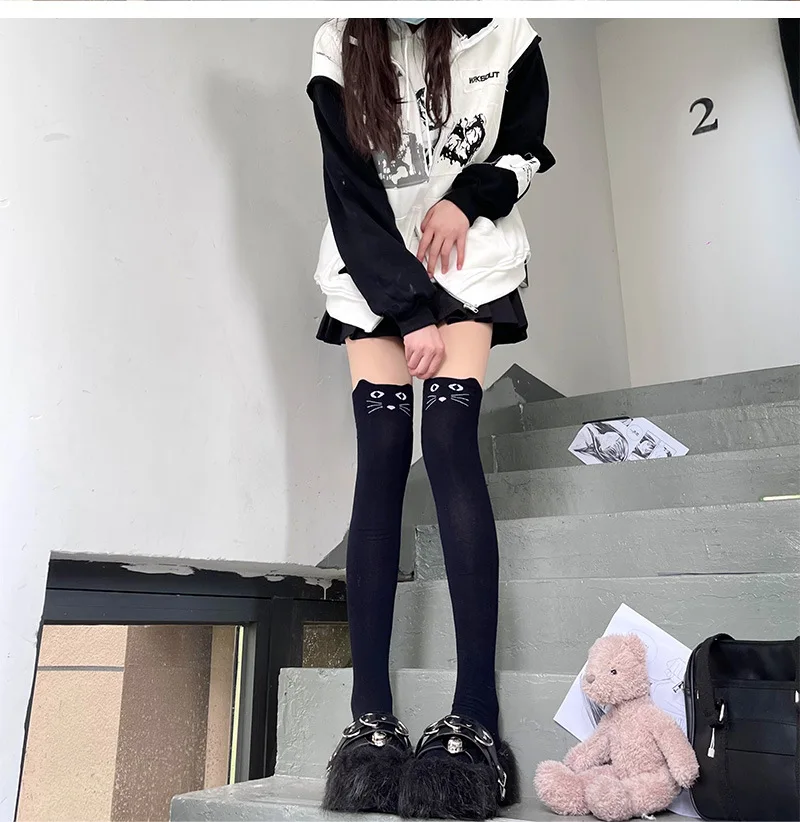 Lbsfy Thigh High Stockings Women Autumn/Winter Kawaii Cat Cartoon Over the Knee Socks Cute knitted Leg Warmers Long Stockings
