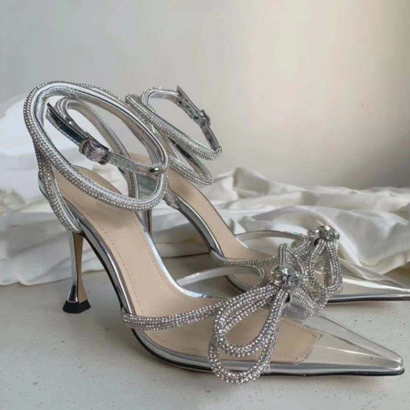 LBSFY  -  Transparent Pvc Crystal Bowknot High Heels Brand Designer Pointed Toe Stiletto Rhinestone Bow Strap Sandals Ladies Party Pumps
