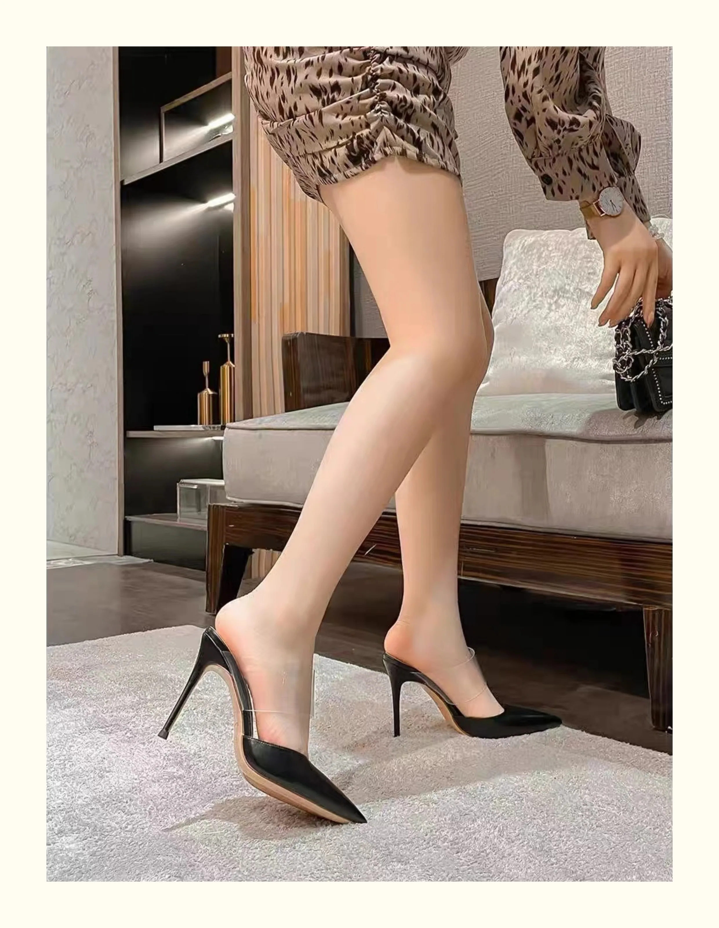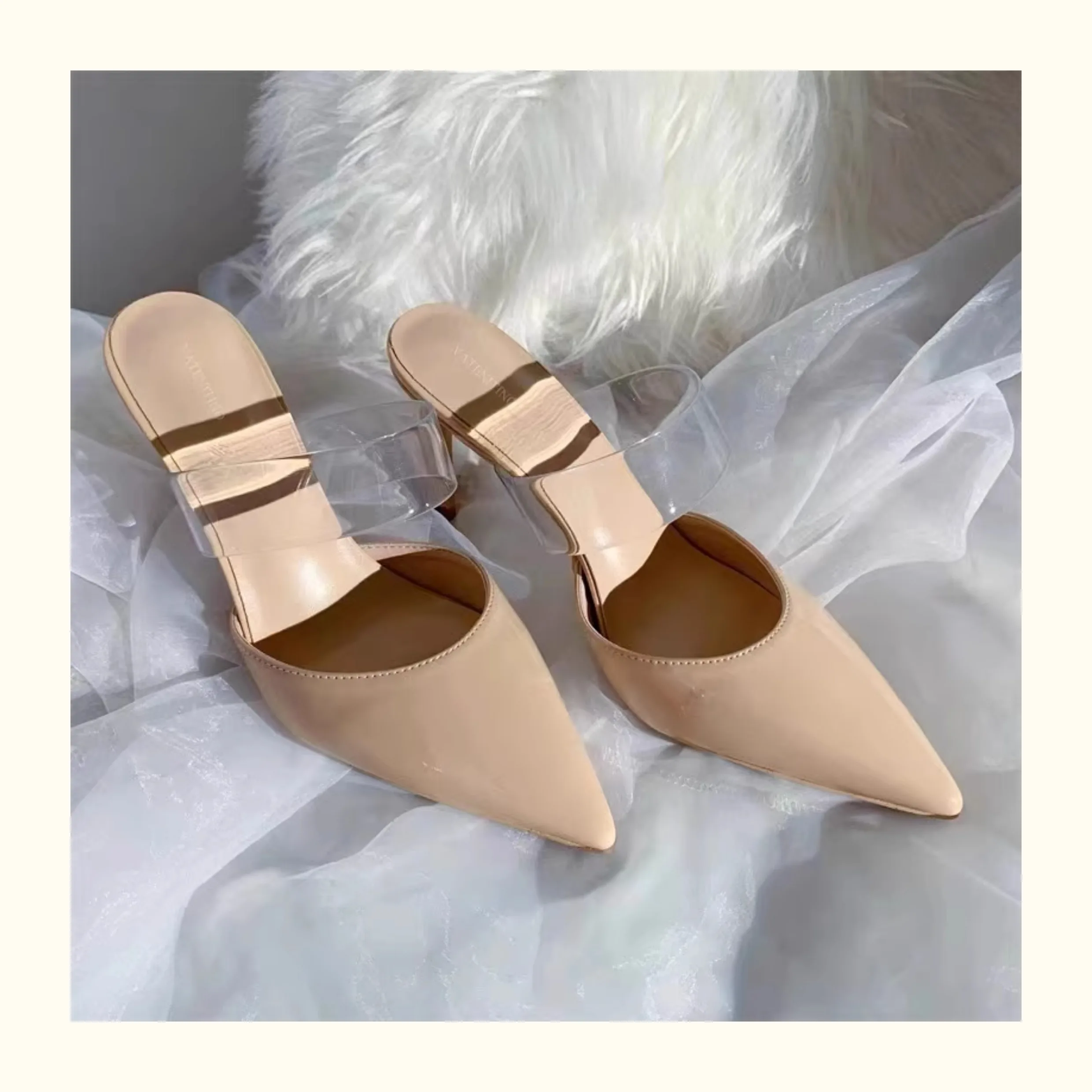 LBSFY - Transparent straight line with foreskin, wearing slippers for women in spring 2024, pointed thin heels, casual half flip sandals