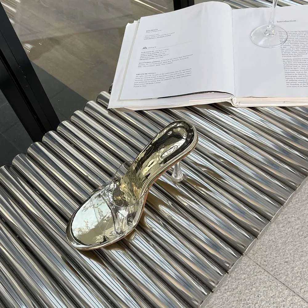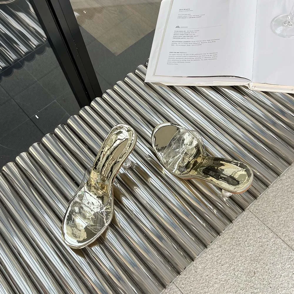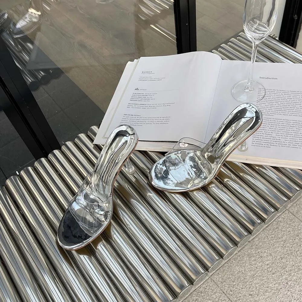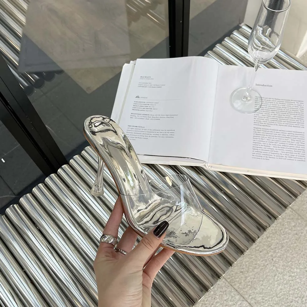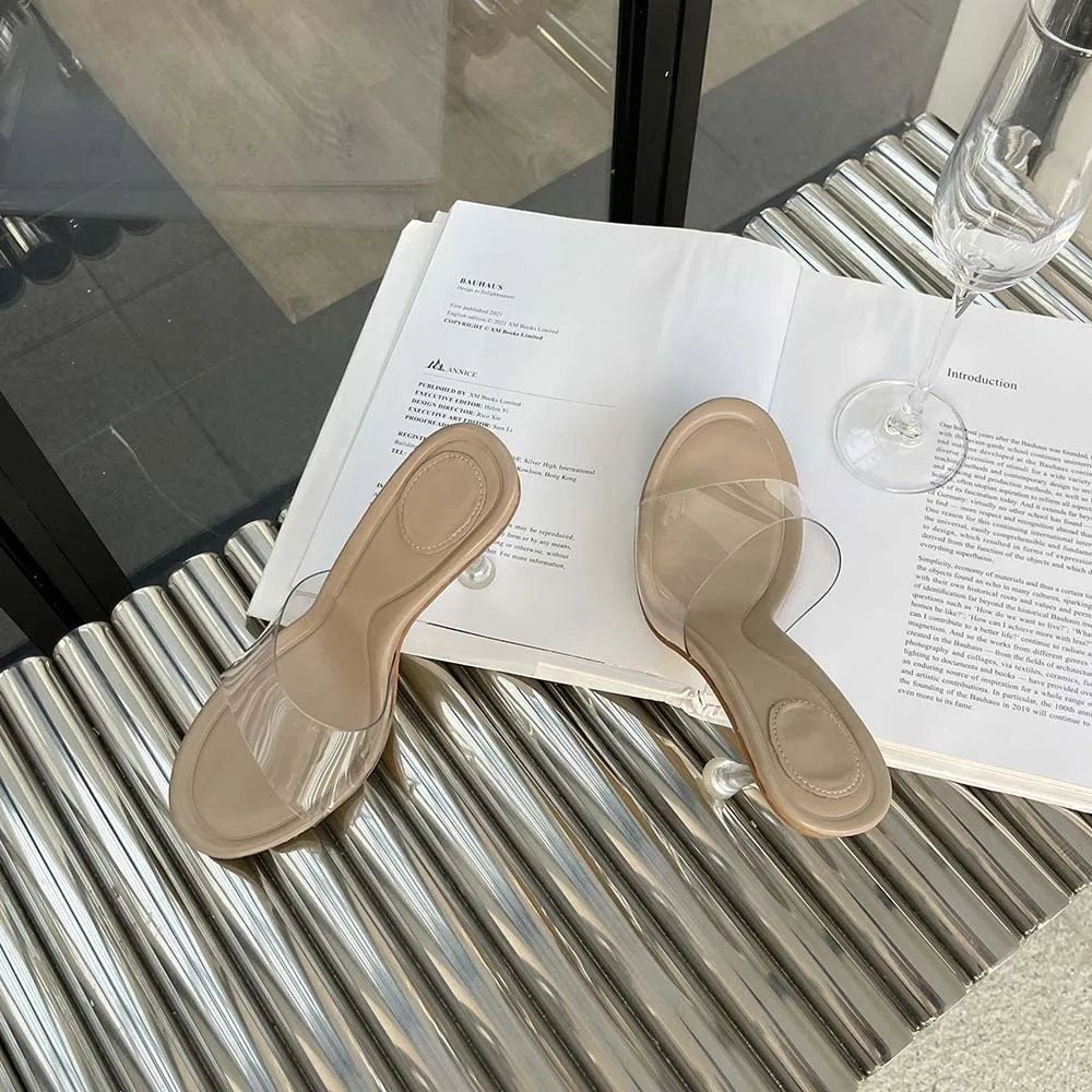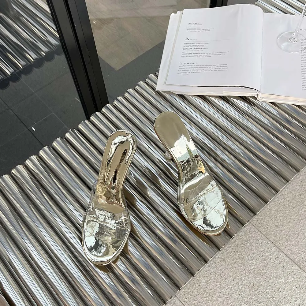 LBSFY - Transparent Women Slippers Peep Toe Summer Outside Mules Shoes 2024 New Arrivals Beige Gold Silver Thick High Heels Wedding Shoe