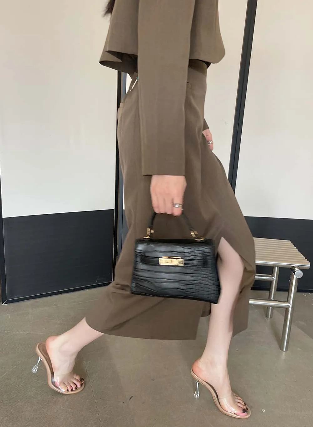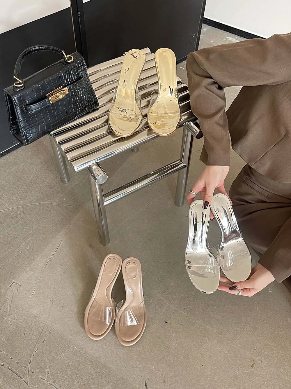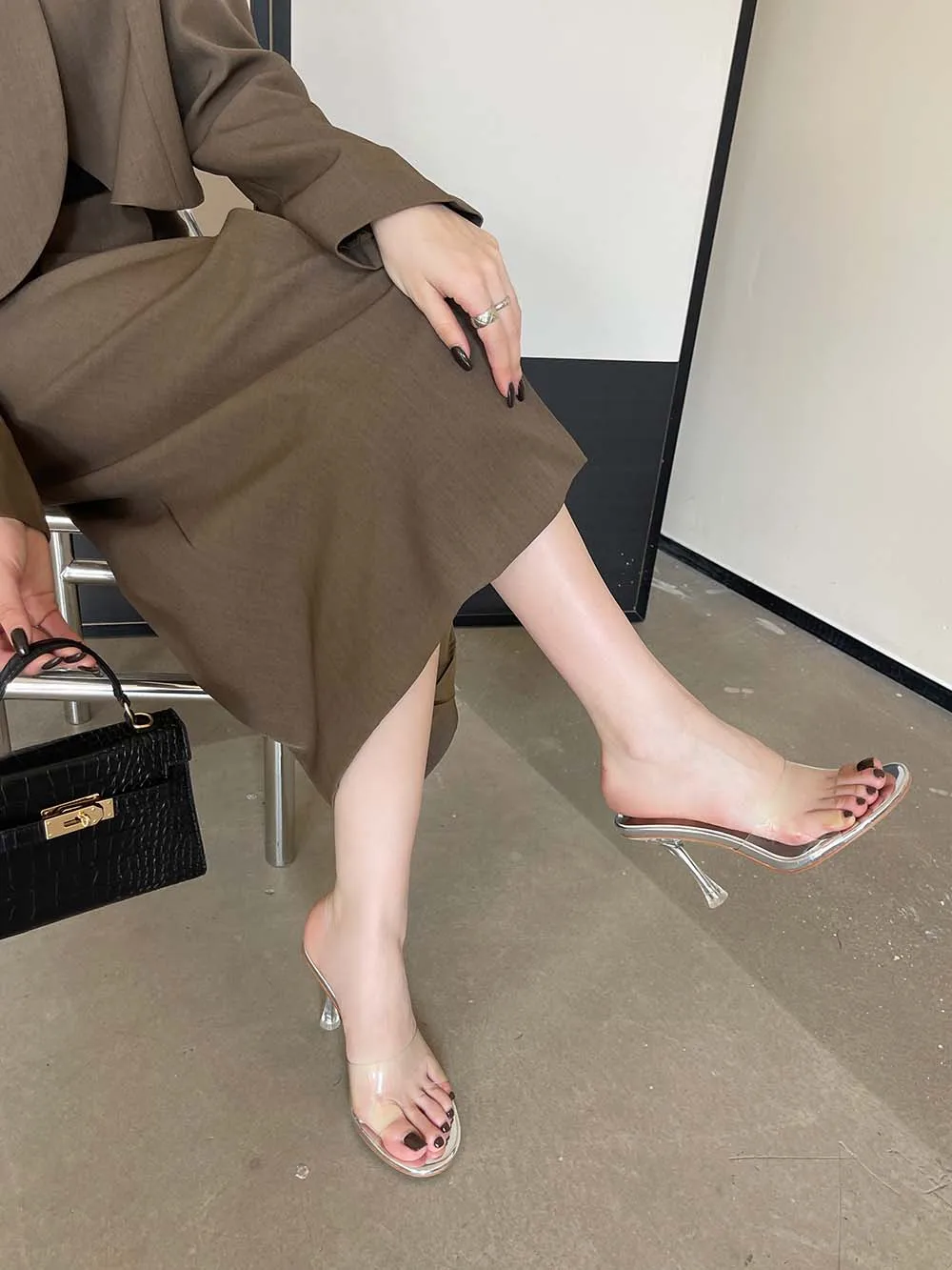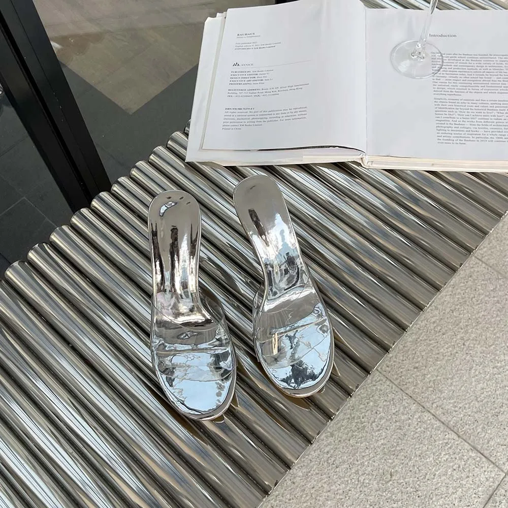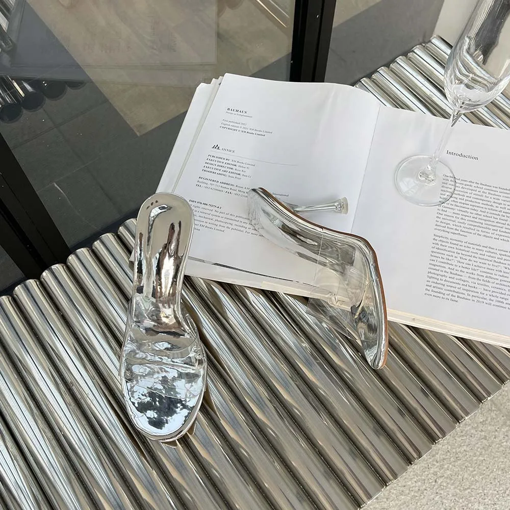 LBSFY - Transparent Women Slippers Peep Toe Summer Outside Mules Shoes 2024 New Arrivals Beige Gold Silver Thick High Heels Wedding Shoe