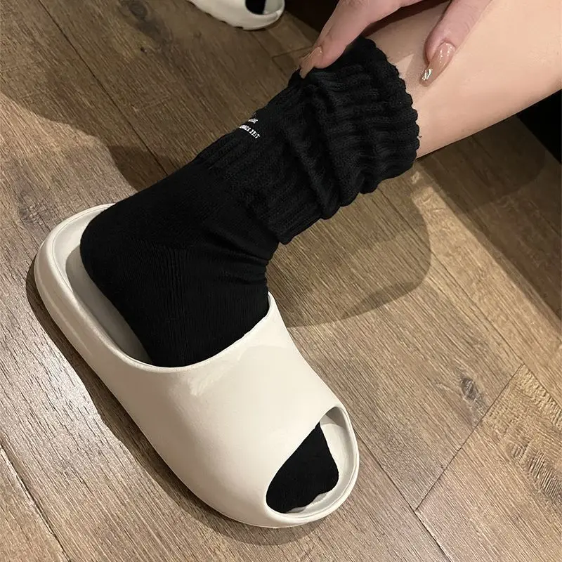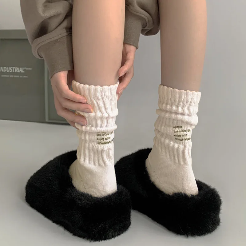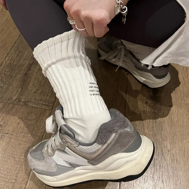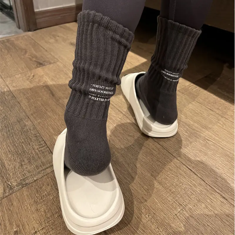 Lbsfy Unisex Socks Knit Solid Color Thick Line Sports Socks Middle Tube Folds Autumn/Winter Print Letter Socks