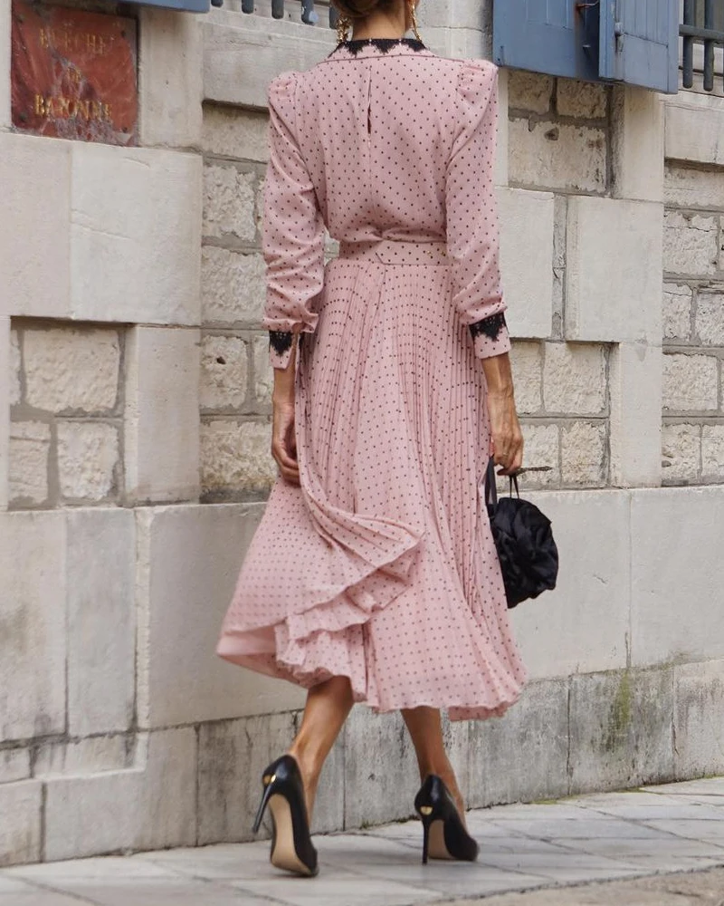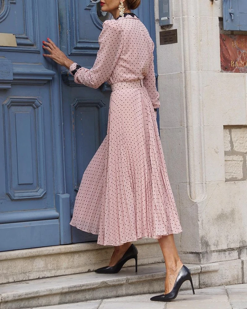 LBSFY - V Neck Long Sleeve Elegant Dress Dot Printing Ankle Length Dresses Women A Line Elegant Dresses Women