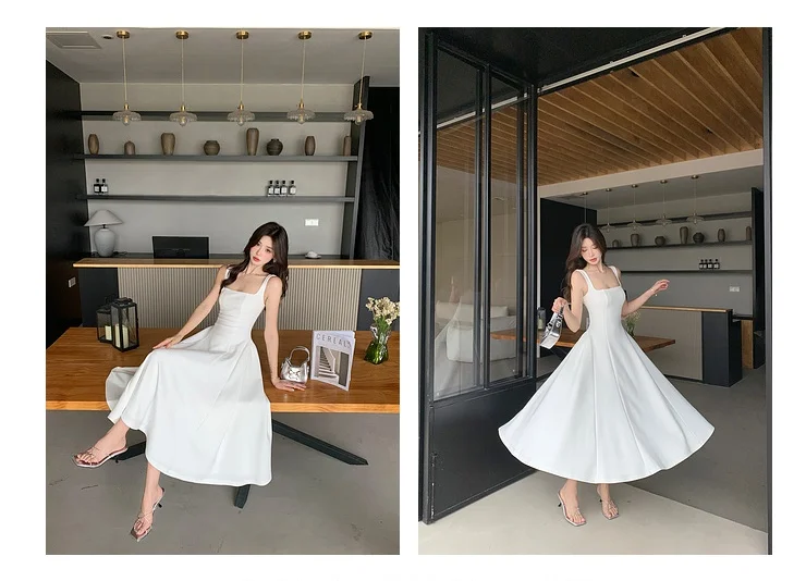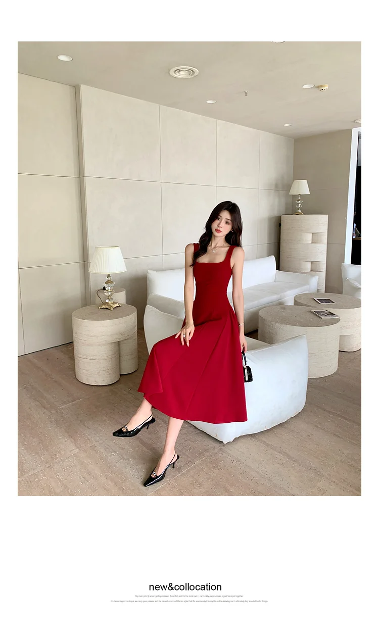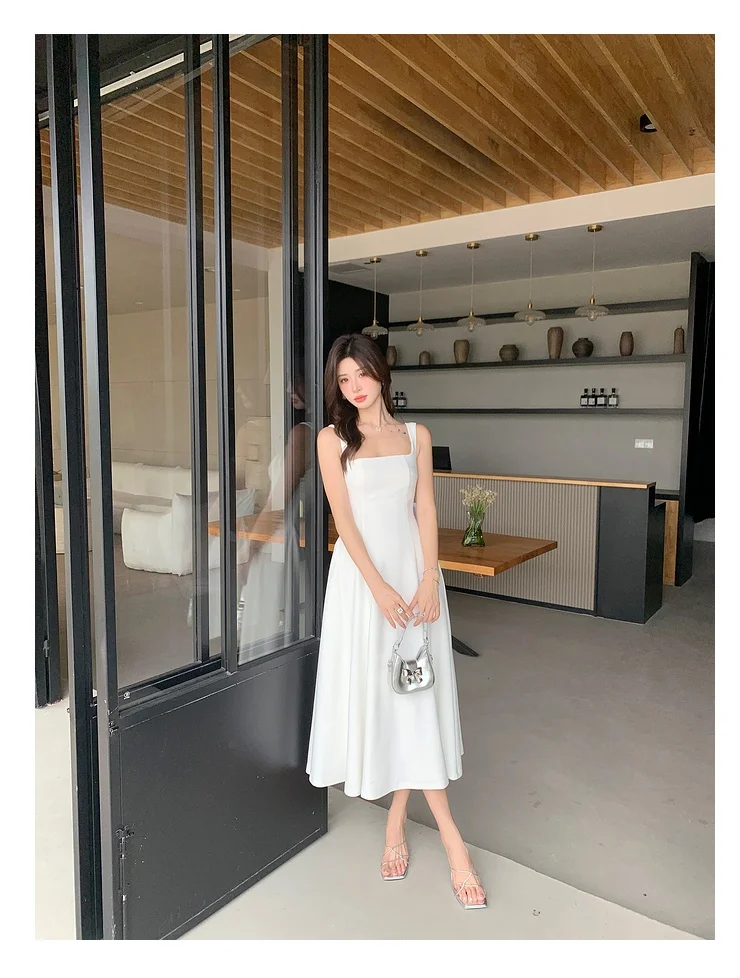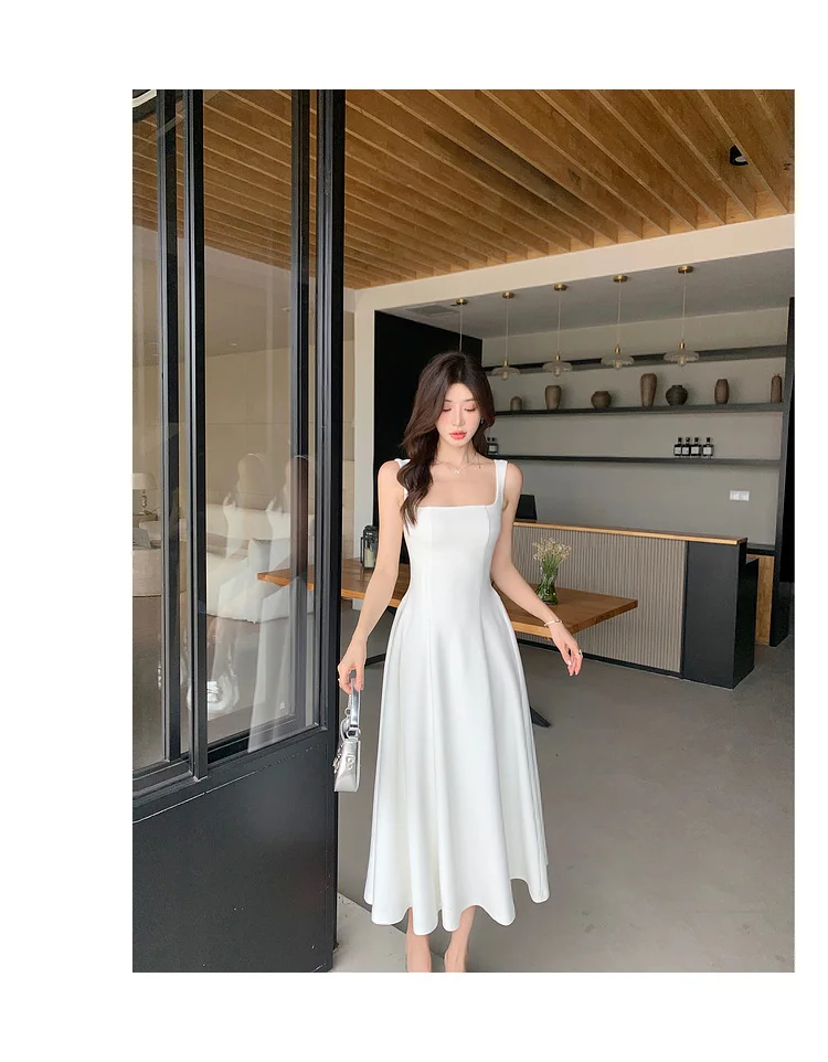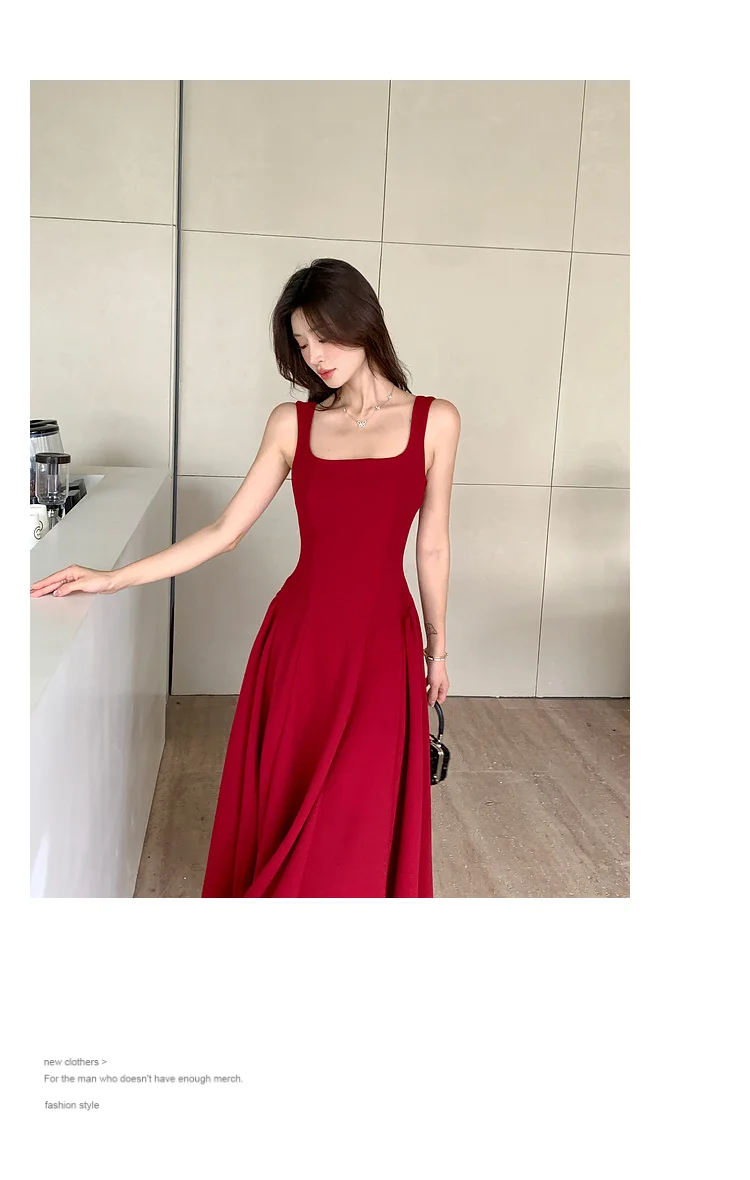 LBSFY -Vintage Elegant French Spaghetti Strap Women's Dresses Square Collar Sleeveless A-Line Wedding Party Dress Female Prom Vestidos