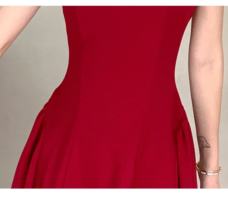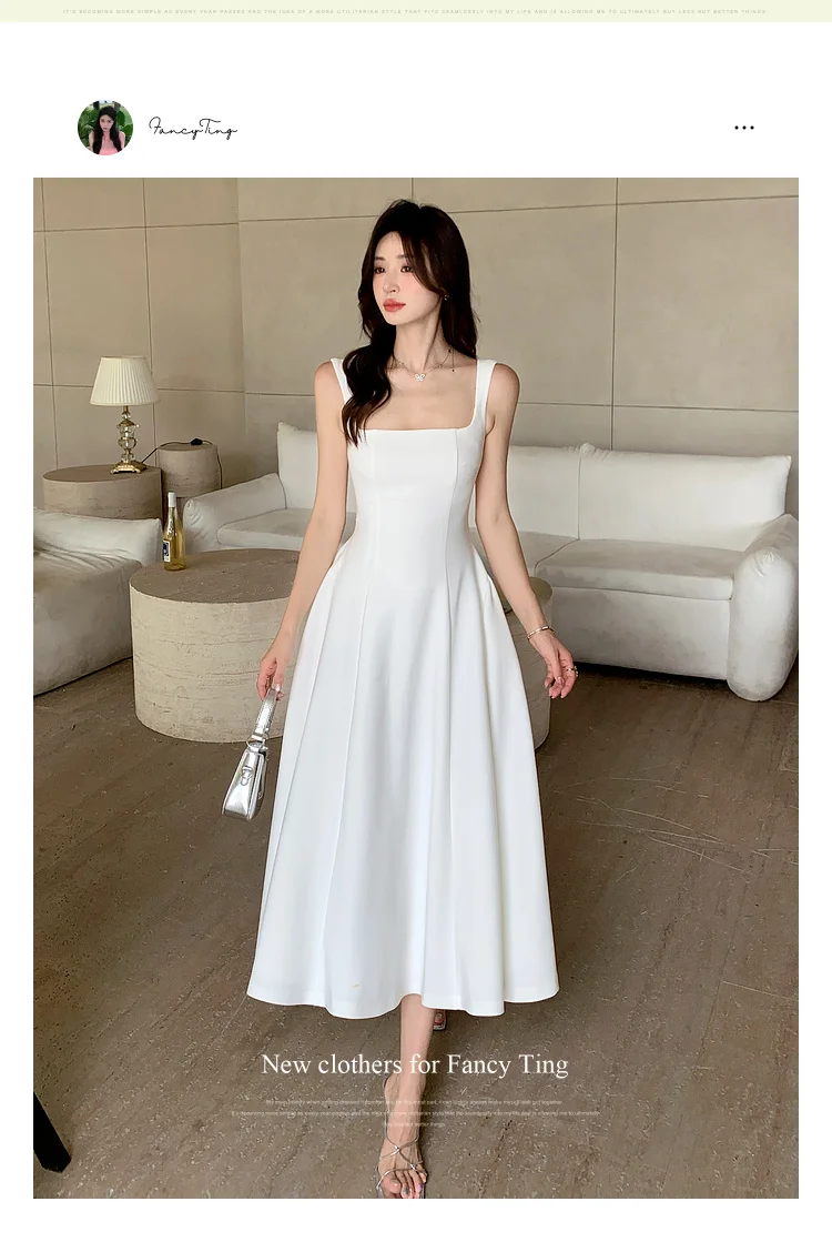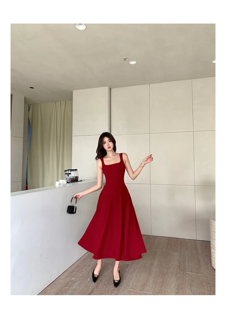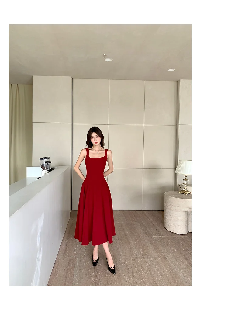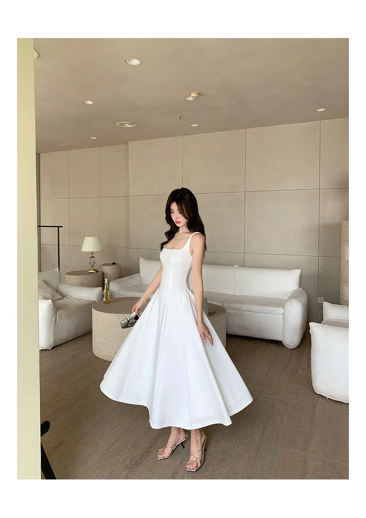 LBSFY -Vintage Elegant French Spaghetti Strap Women's Dresses Square Collar Sleeveless A-Line Wedding Party Dress Female Prom Vestidos